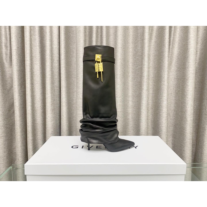 Givenchy Shark Lock Stiletto Boots In Nappa Leather Black