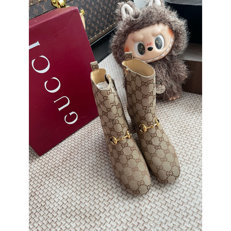 ucci Horsebit GG Supreme Canvas Ankle Boots In Beige/Ebony