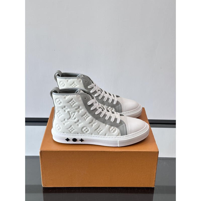 Louis Vuitton White And Gray Monogram Embossed High-Top Sneakers