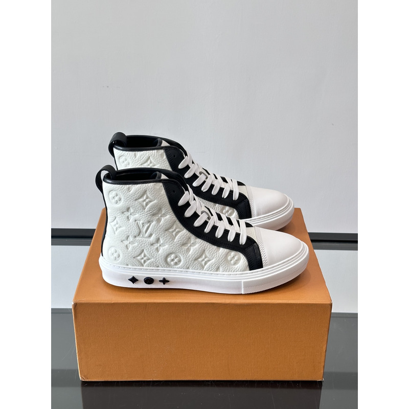 Louis Vuitton White And Black Monogram Embossed High-Top Sneakers