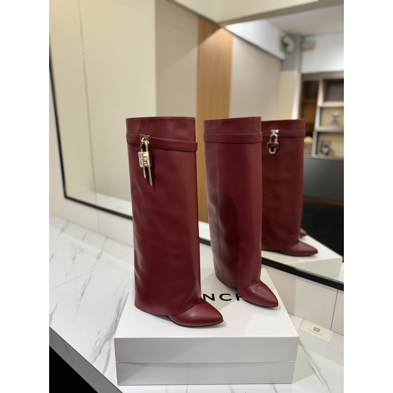 Givenchy Burgundy Leather Shark Lock Knee-Length Boots