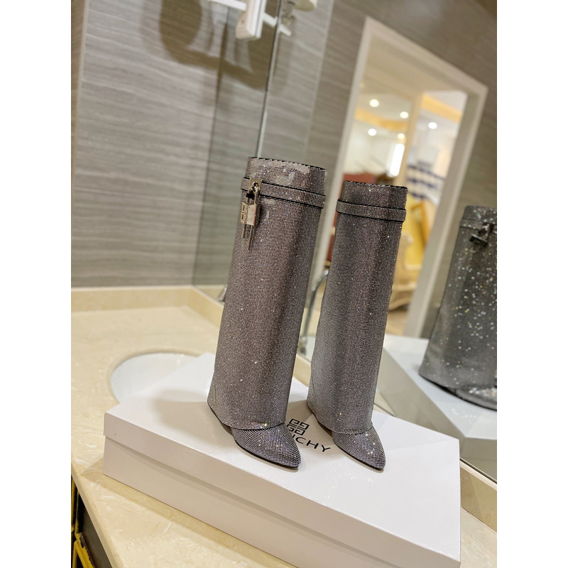 Givenchy Shark Lock Boots In Satin With Strass Silver