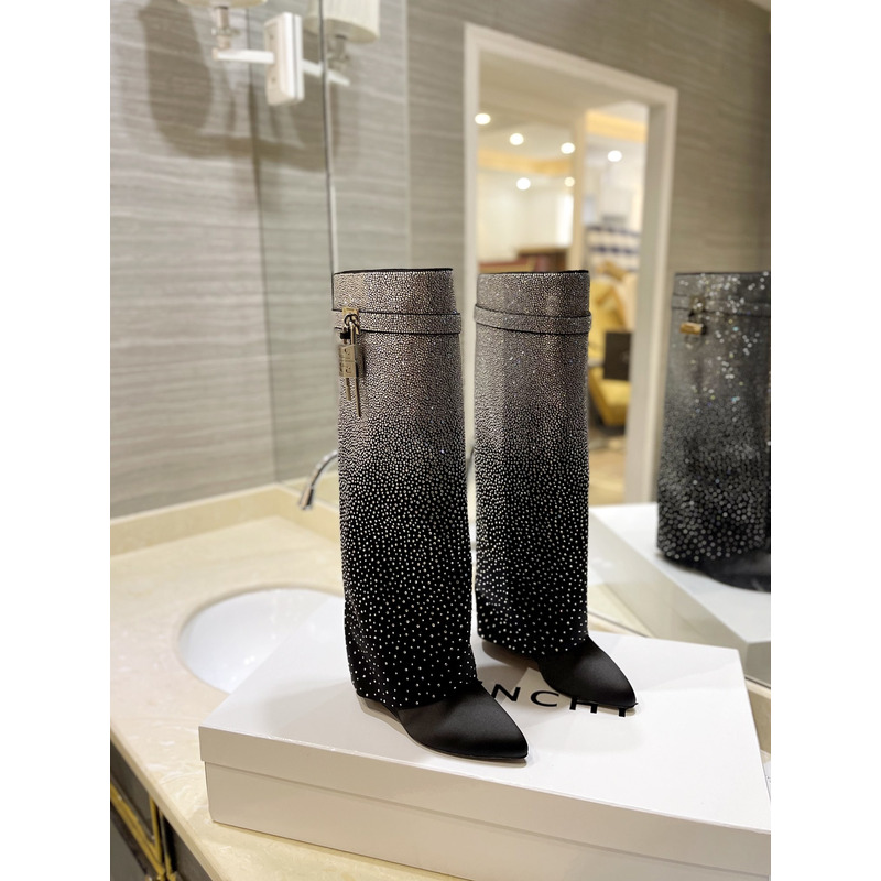 Givenchy Shark Lock Boots In Satin With Strass Black - Silver Gradient