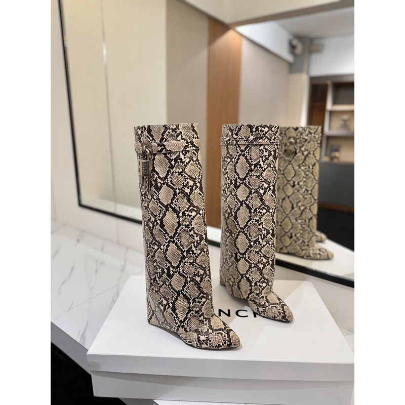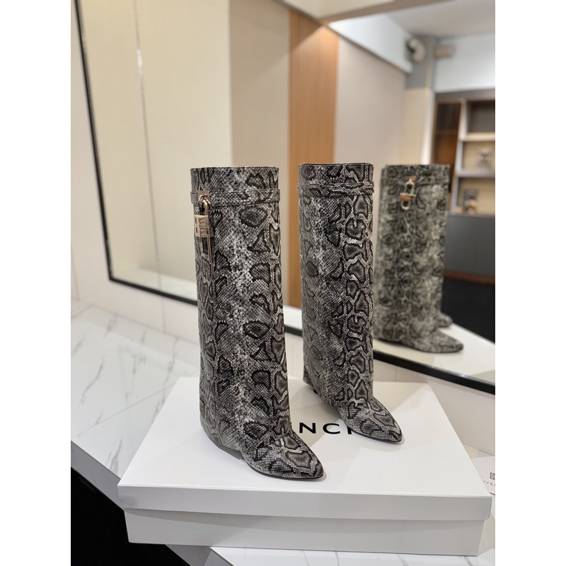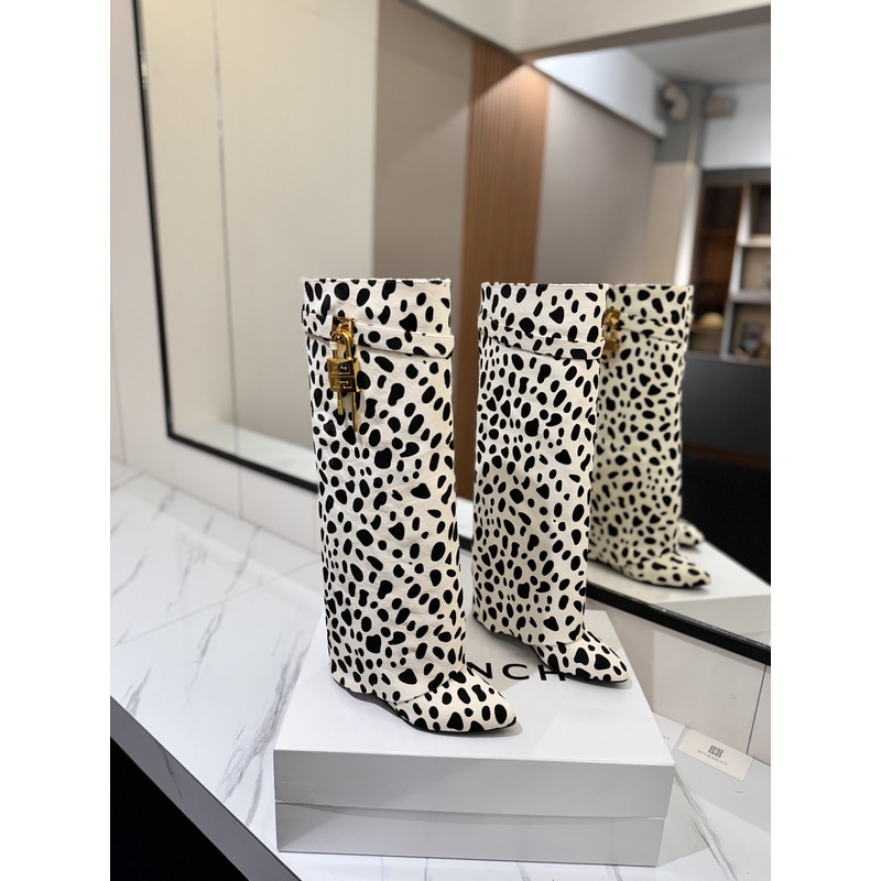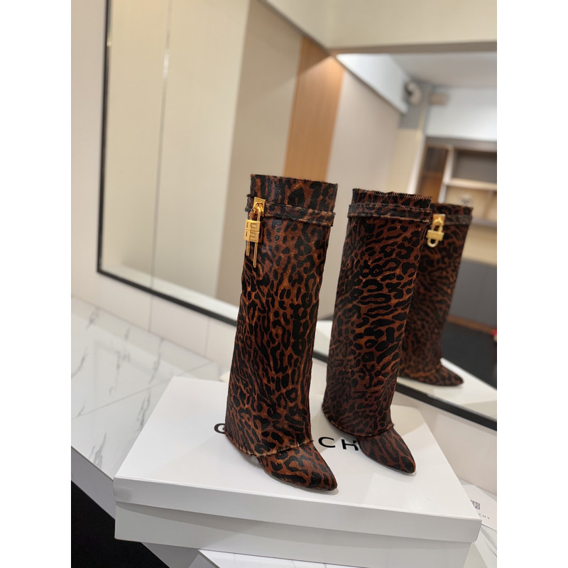 Givenchy Shark Lock Stiletto Boots in Pony with Leopard Print