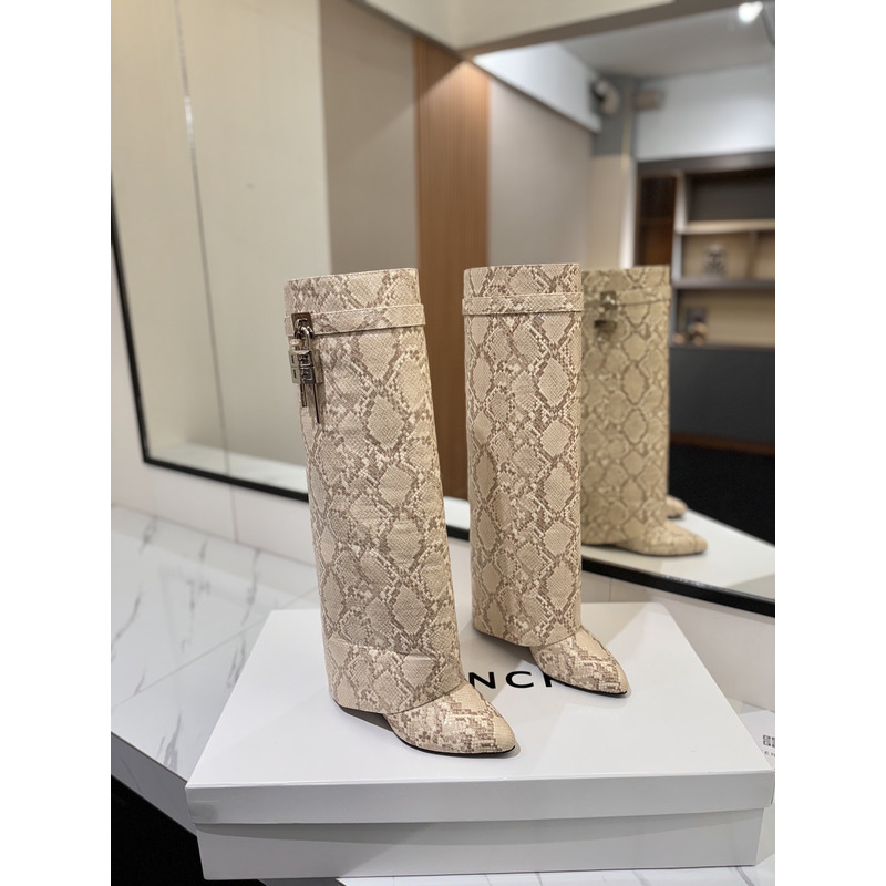 Givenchy Blush Leather Shark Lock Knee-Length Boots