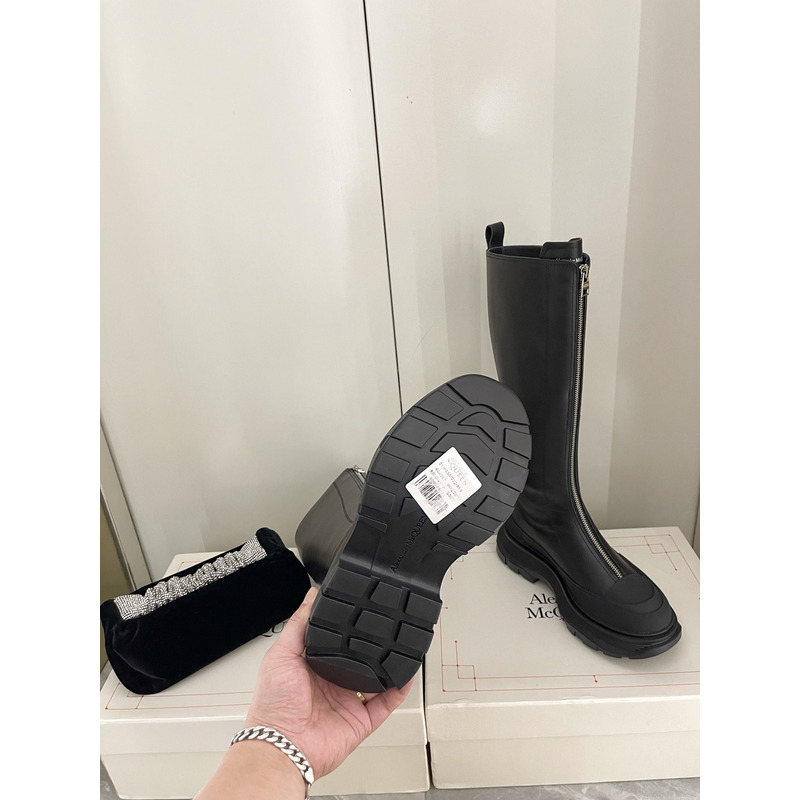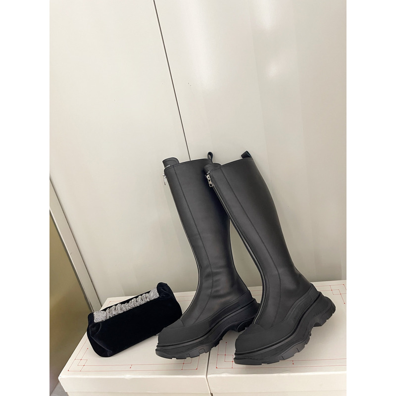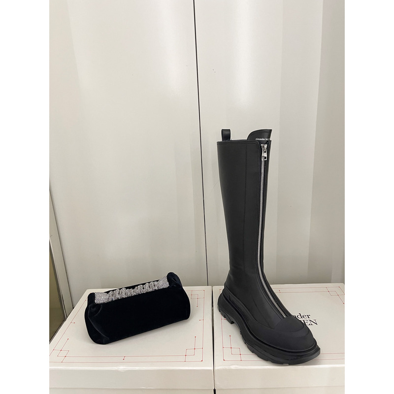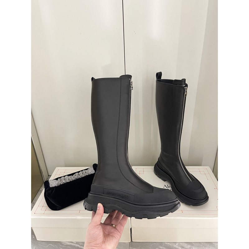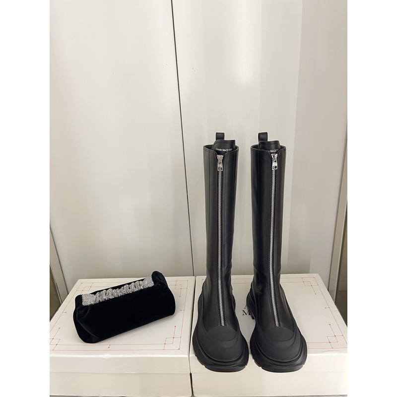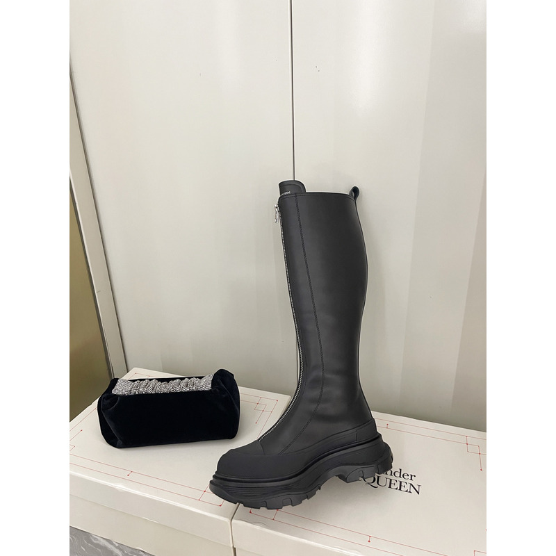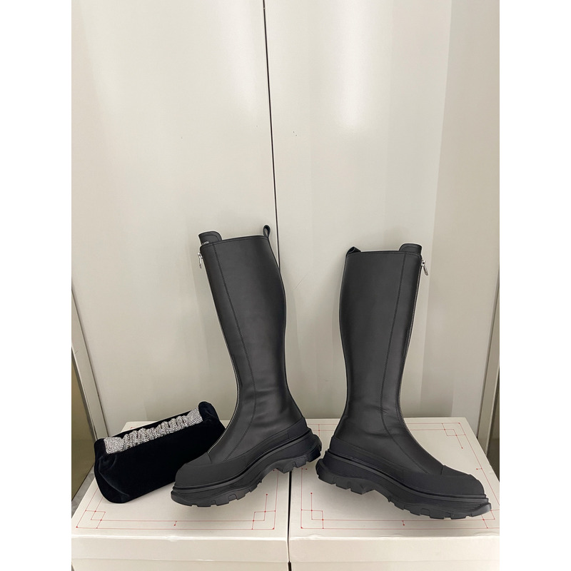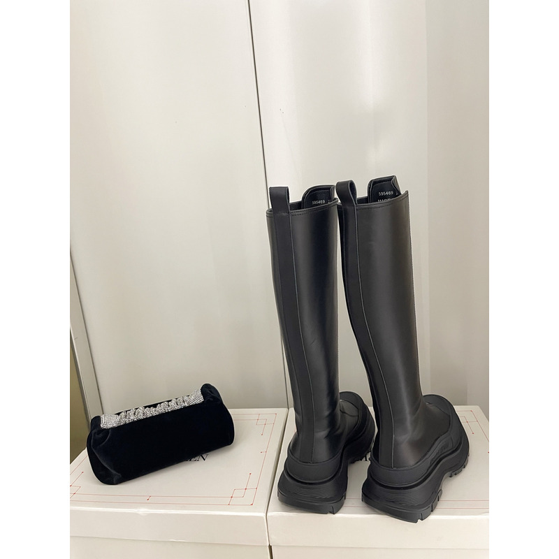 Alexander Mcqueen Tread Slick Black Cowhide Knee-High Boots