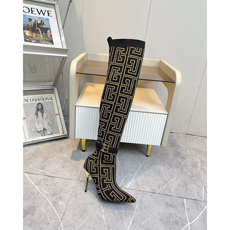 Balmain 4G Jacquard Over-The-Knee Stiletto Boots In Black/Brown