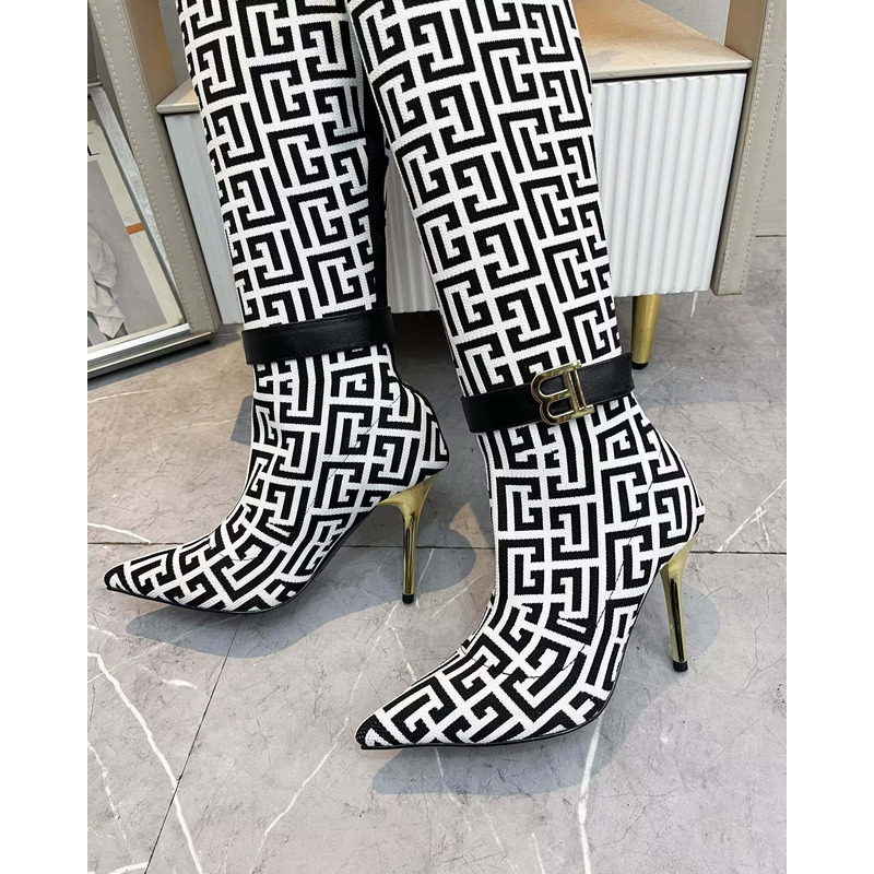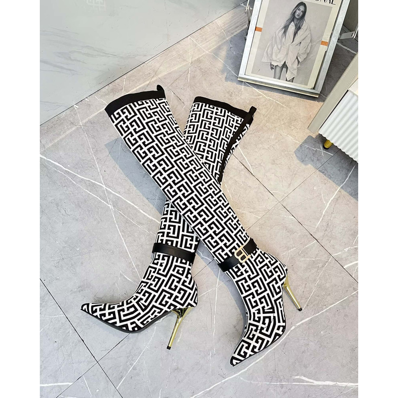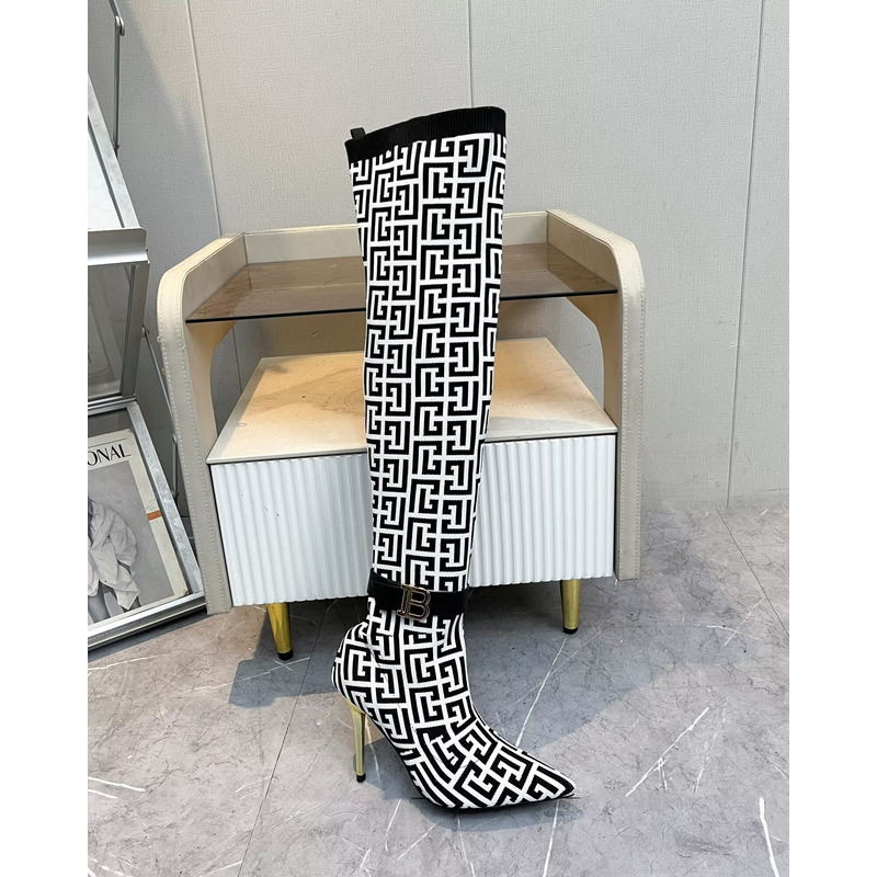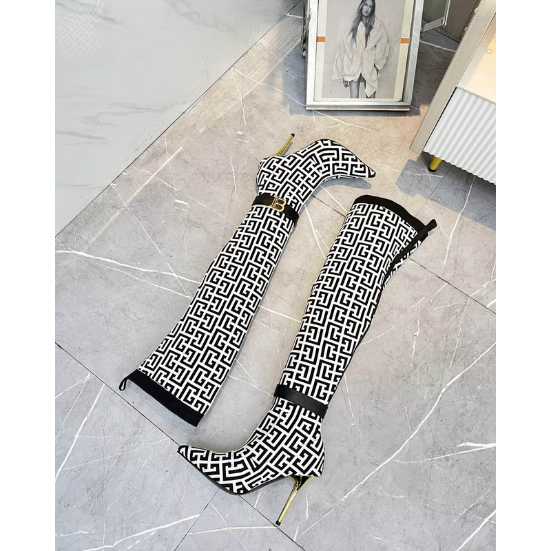 Balmain 4G Jacquard Over-The-Knee Stiletto Boots In Black/White