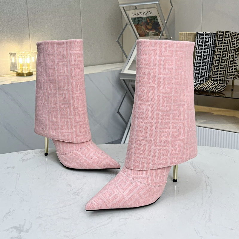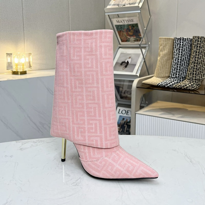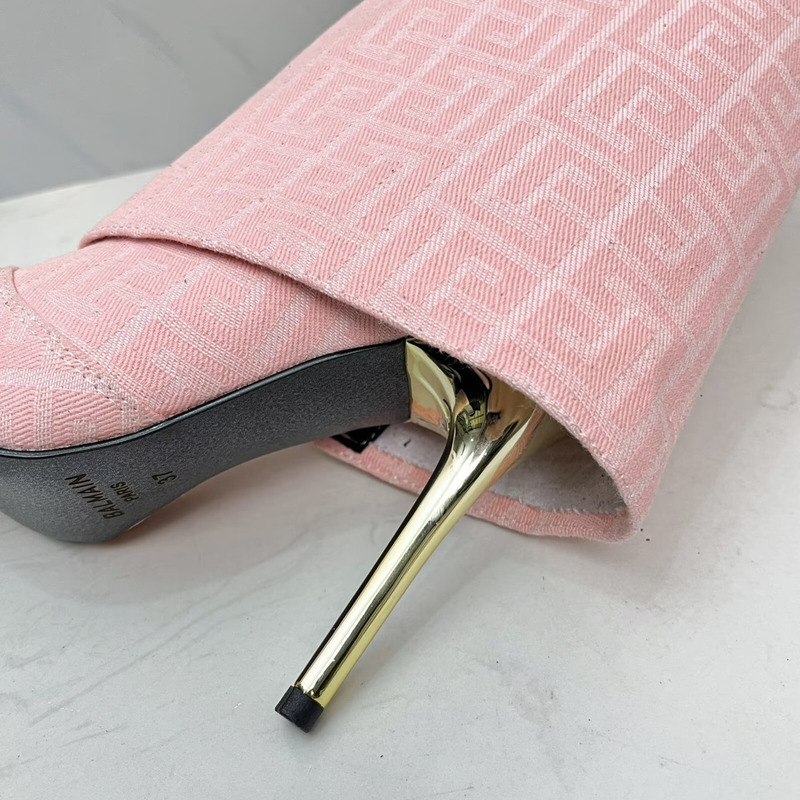 Balmain 4G Jacquard with Pointed Toe and Stiletto Heel Boots In Light Pink