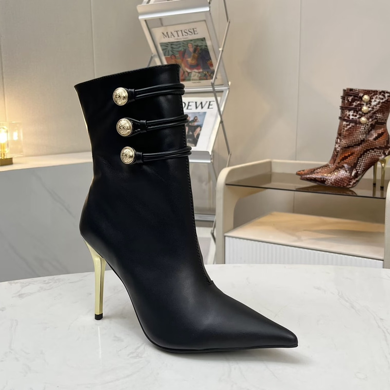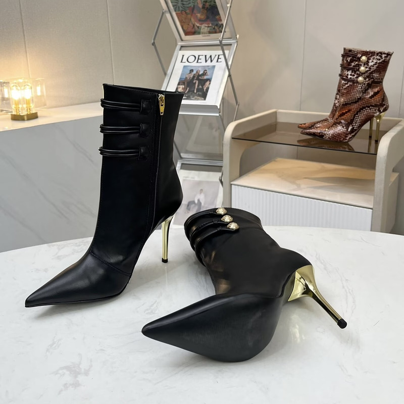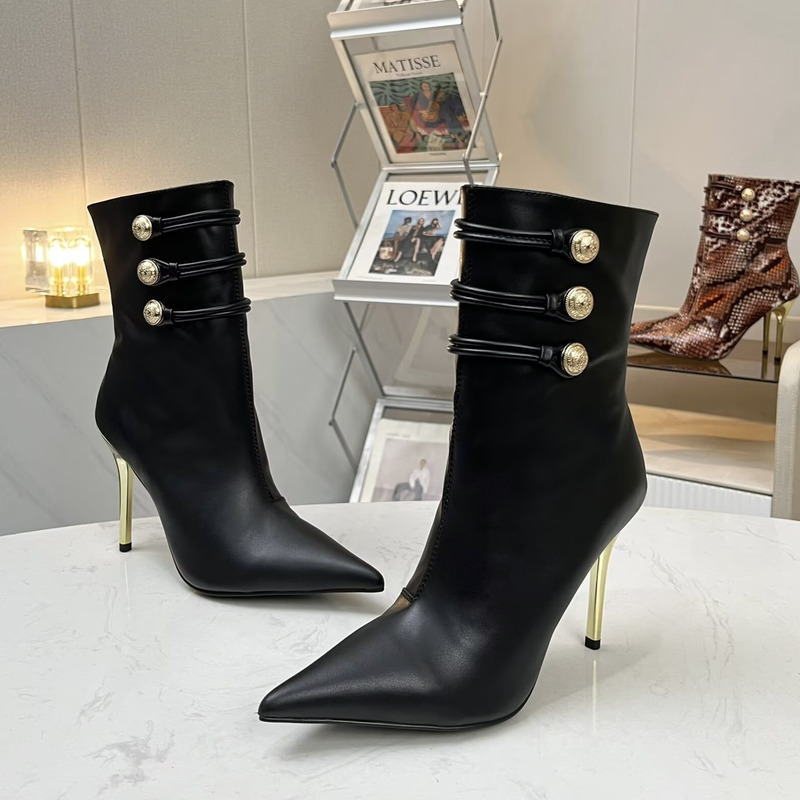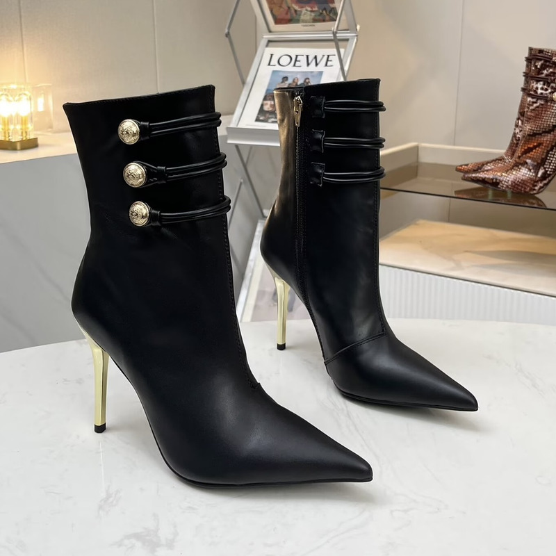 Balmain Alma High Heels Ankle Boots In Black Leathe