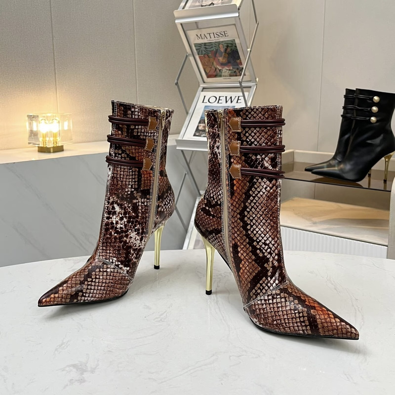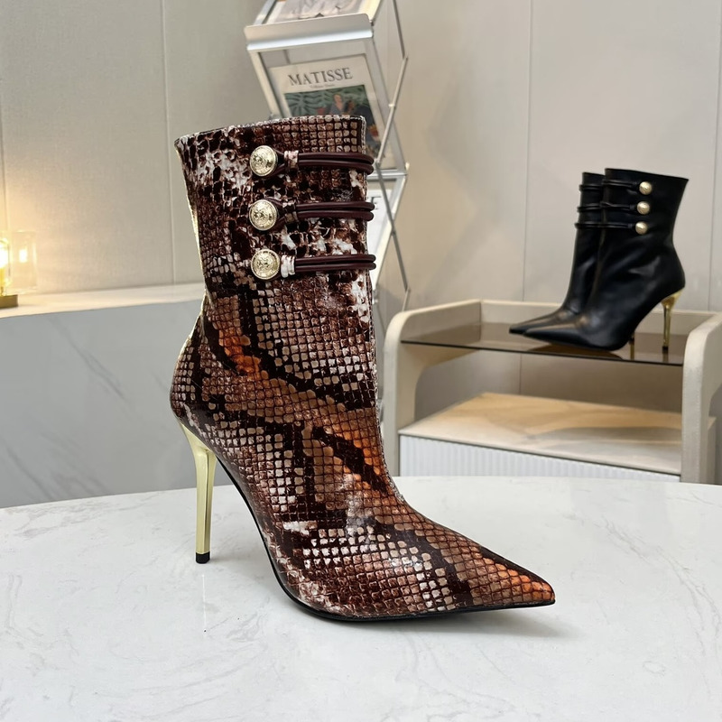 Balmain Alma Snakeskin-Effect Leather Ankle Boots