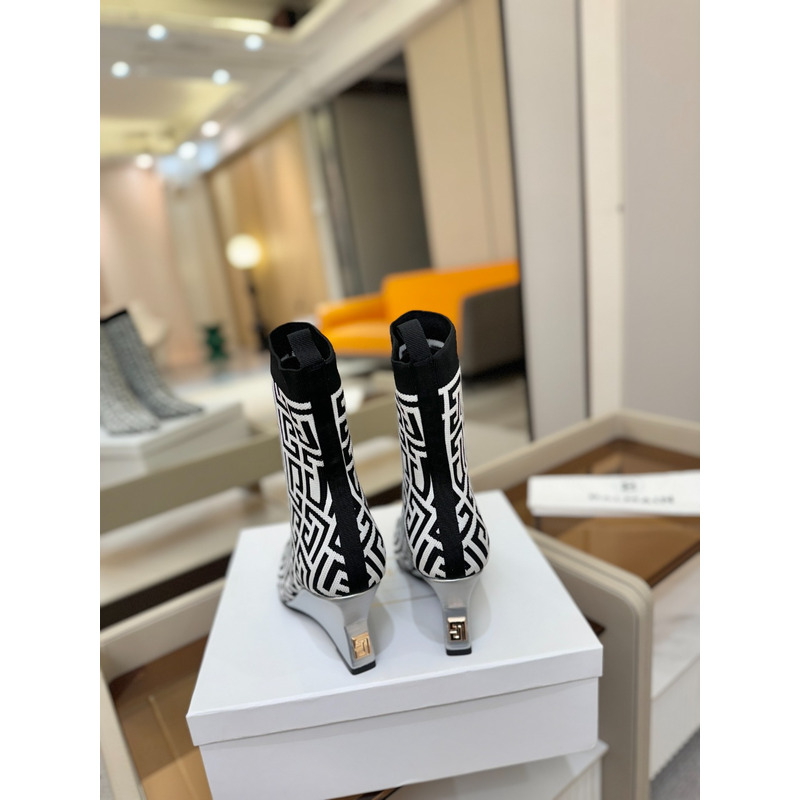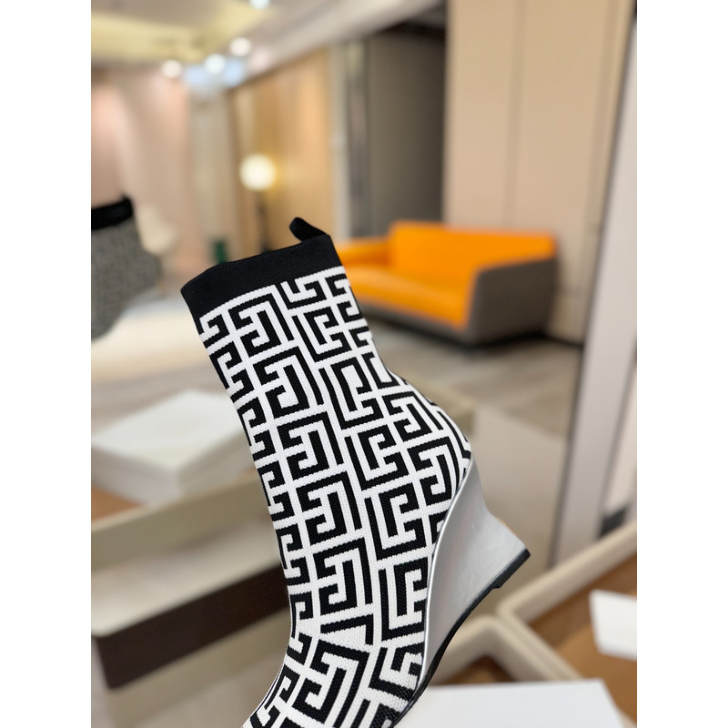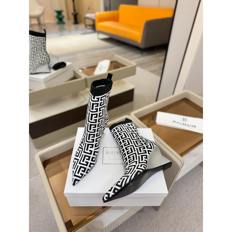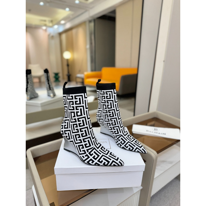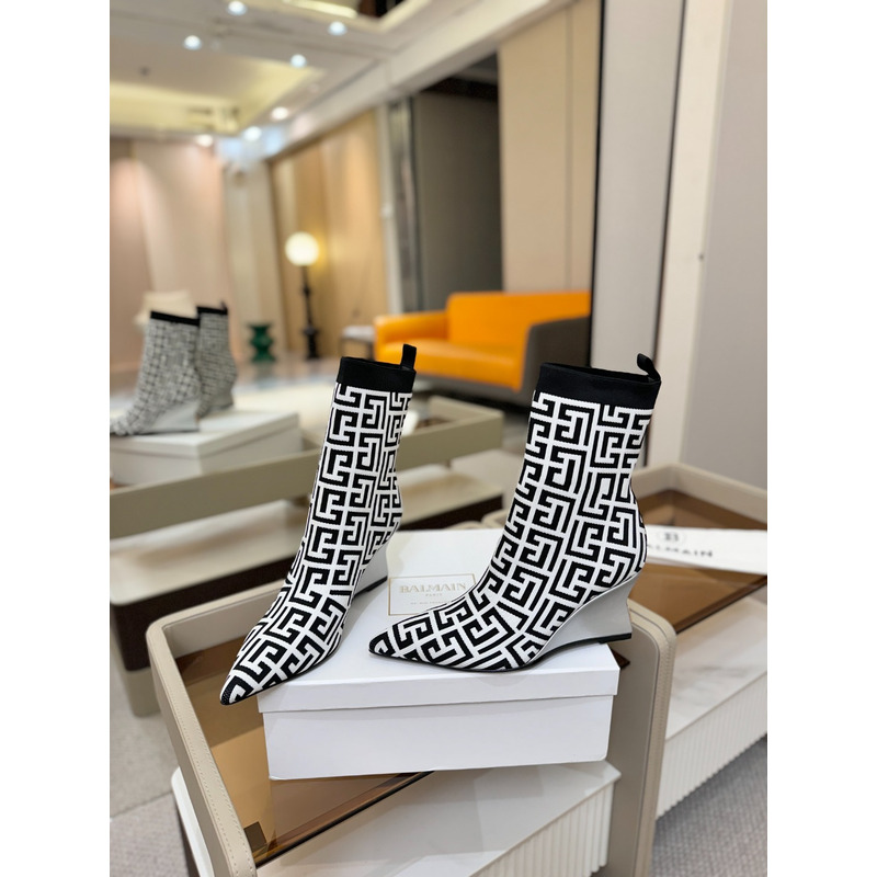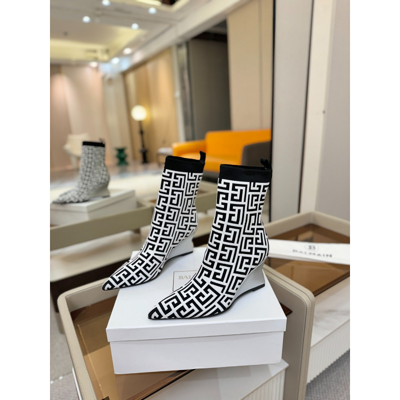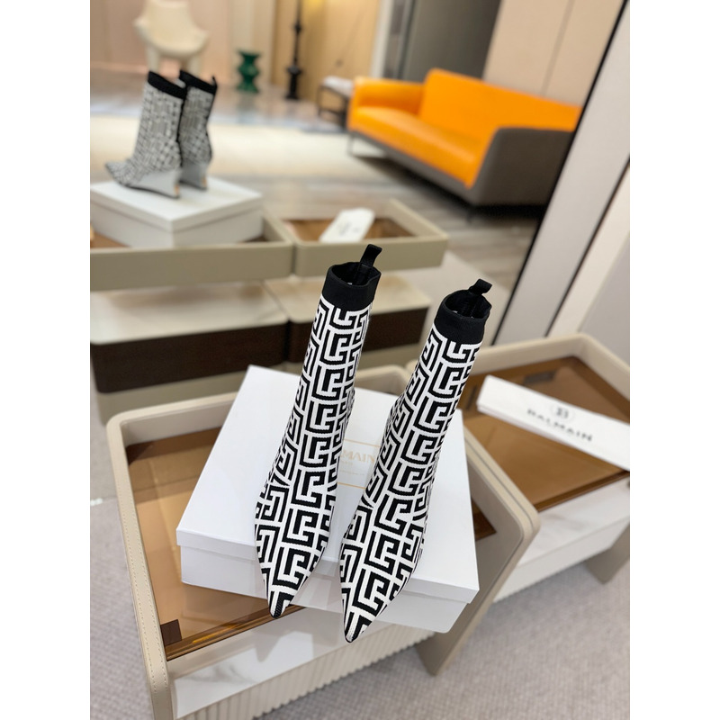 Balmain Monogram-Jacquard Ankle Boots In Black & White