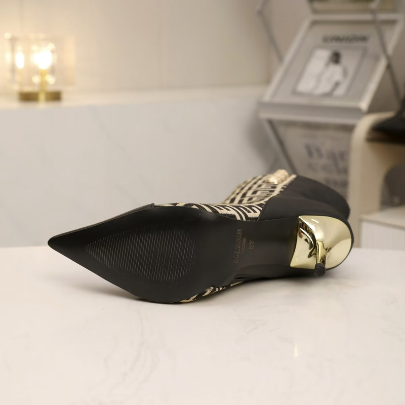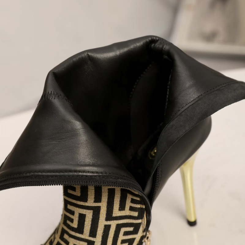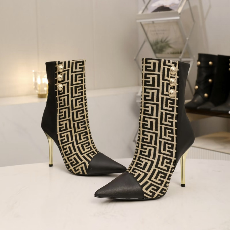 Balmain Monogram-Jacquard & Leather Ankle Boot In Black/Brown