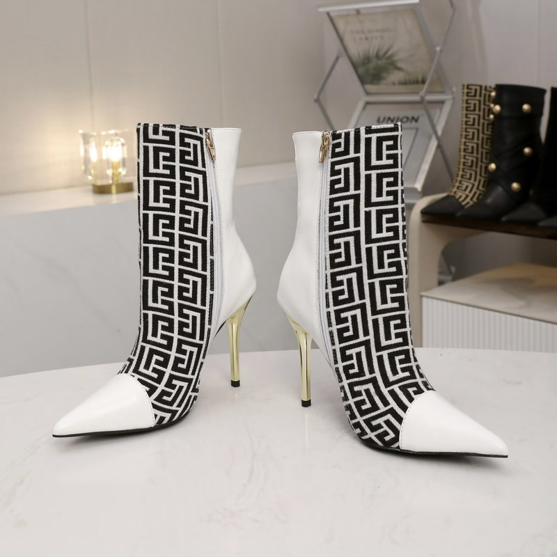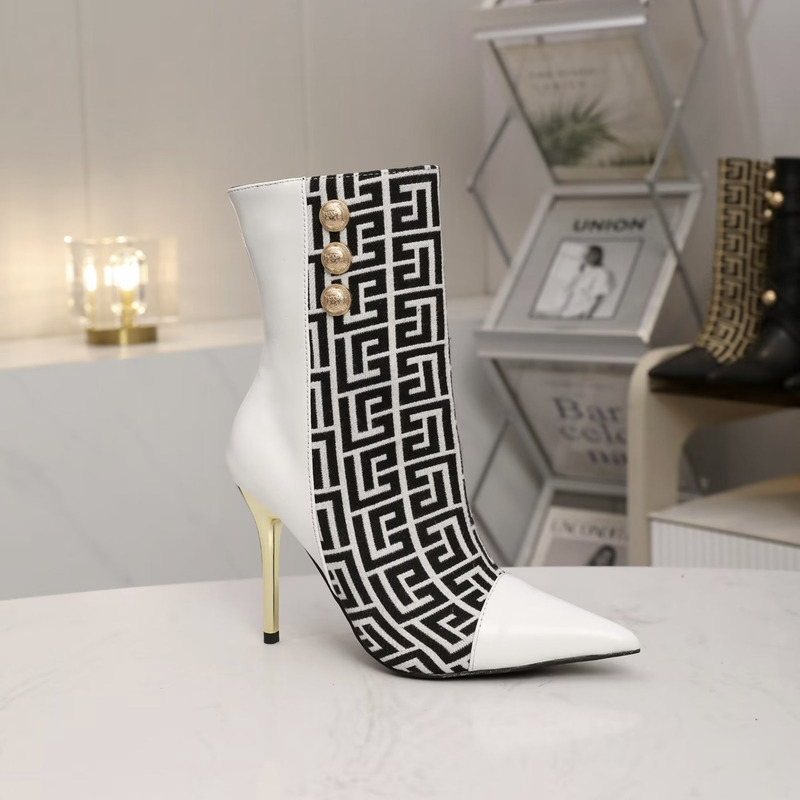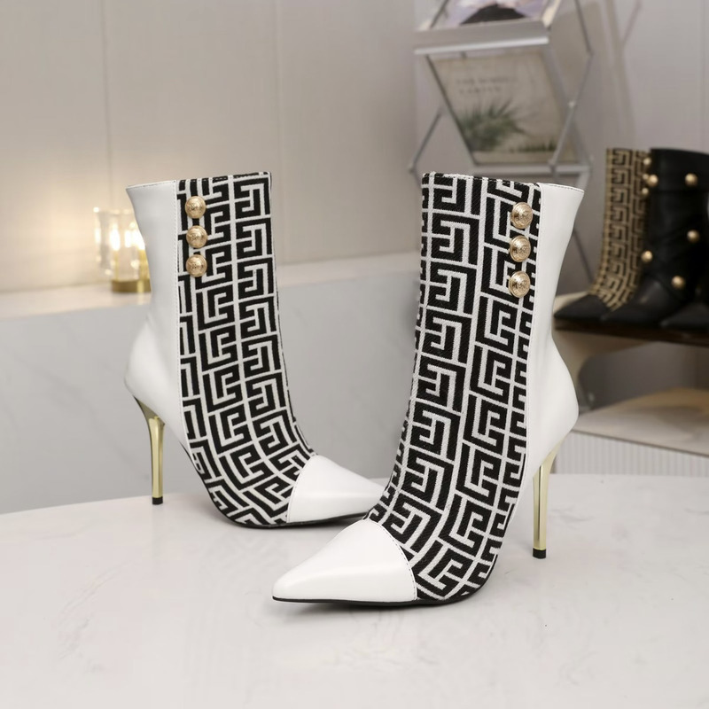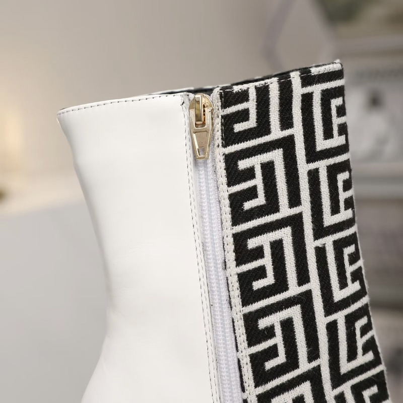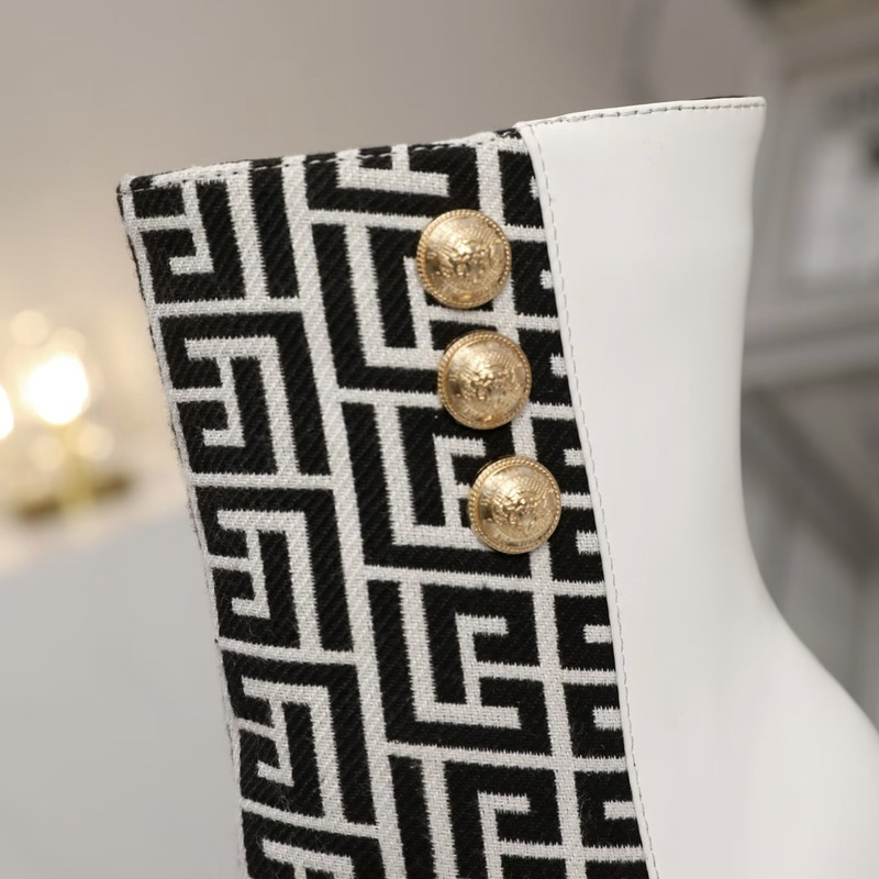Balmain Monogram-Jacquard & Leather Ankle Boot In White/Black