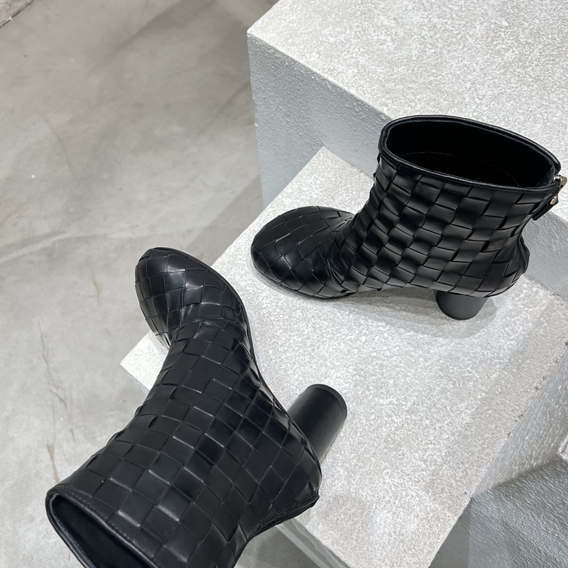 Bottega Veneta Intrecciato Crocodile-Embossed Leather Ankle Boots In Black