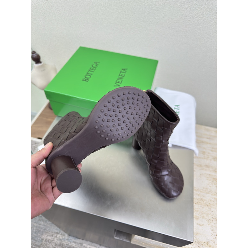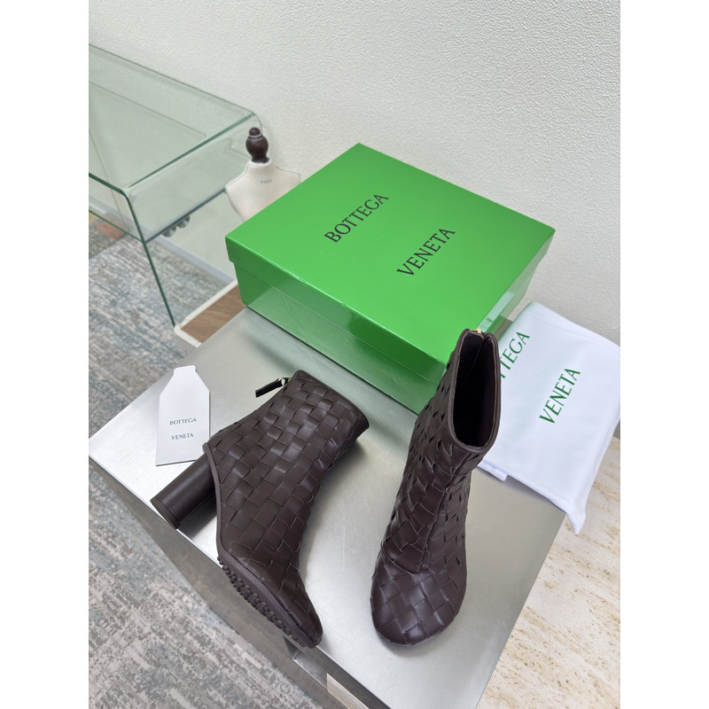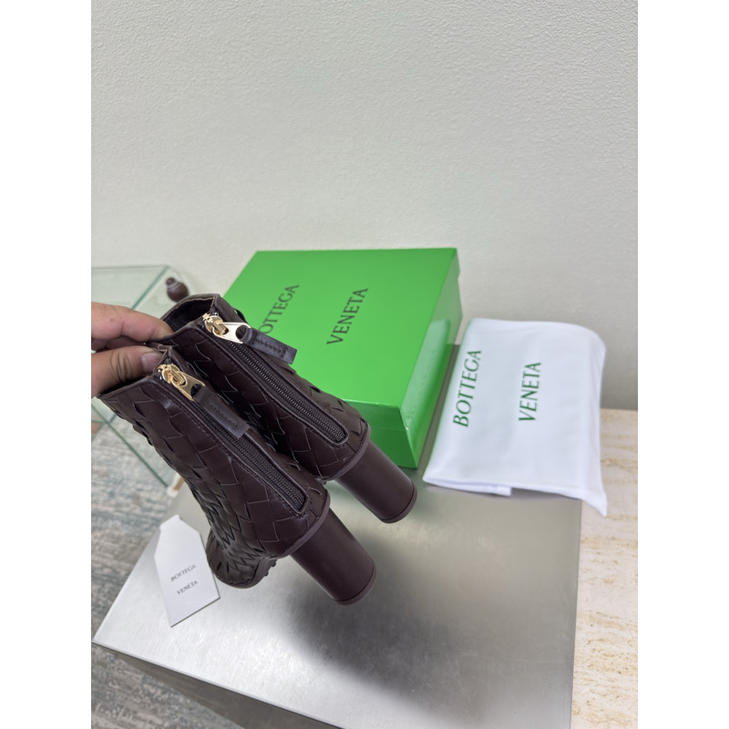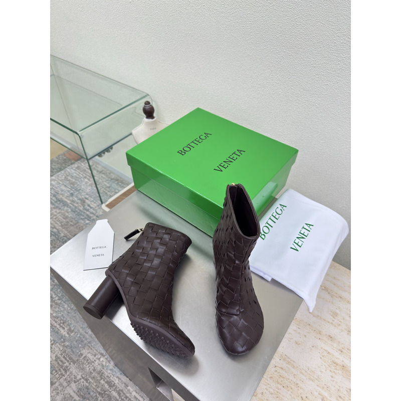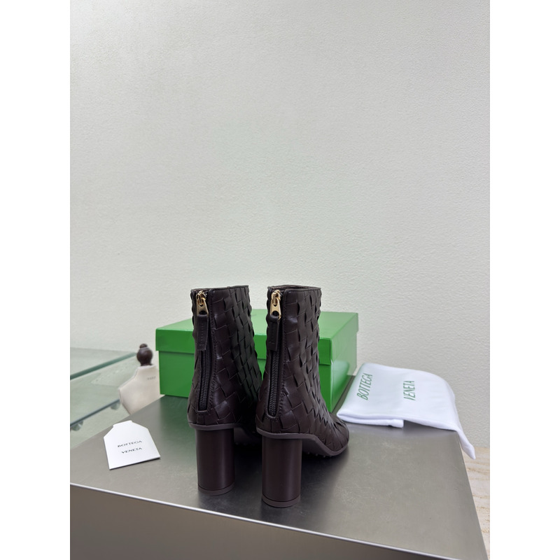 Bottega Veneta Intrecciato Leather Ankle Boots In Dark Brown
