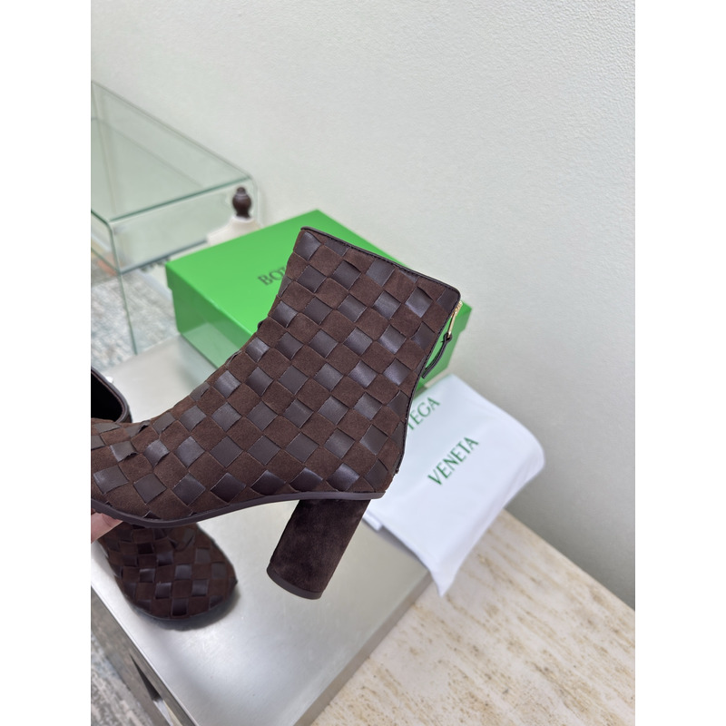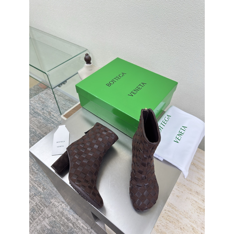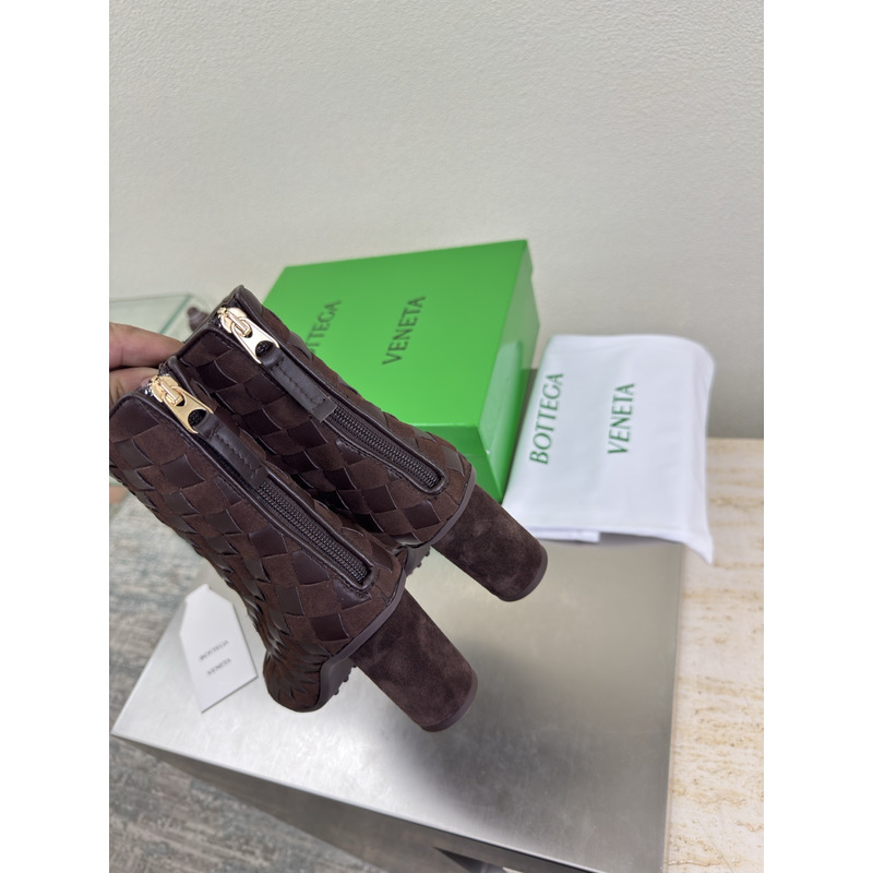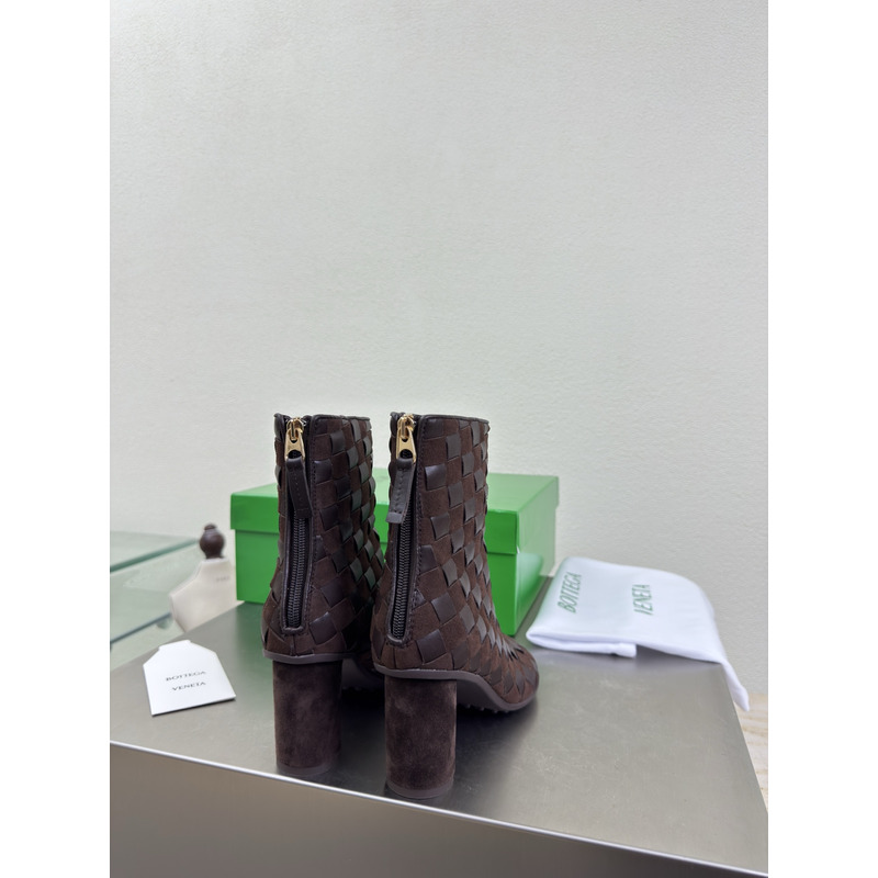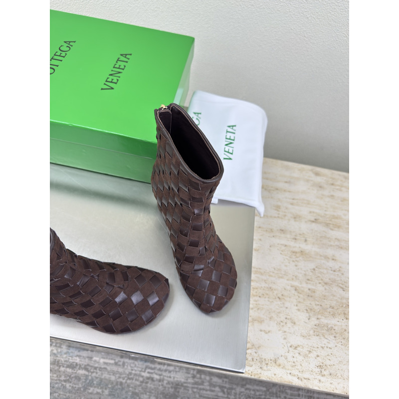 Bottega Veneta Intrecciato Leather Ankle Boots In Dark Brown