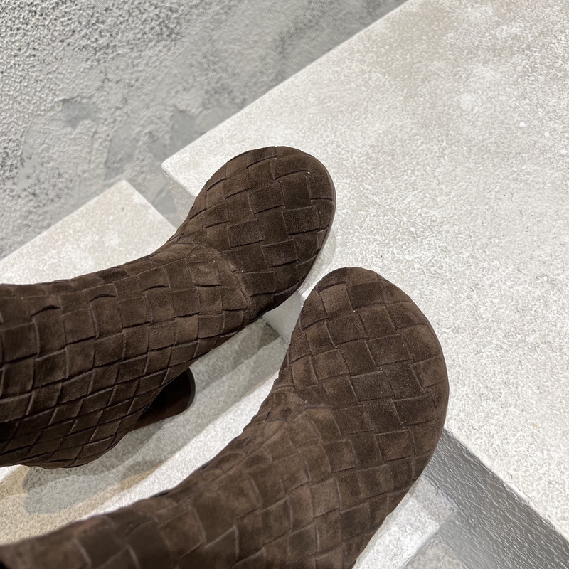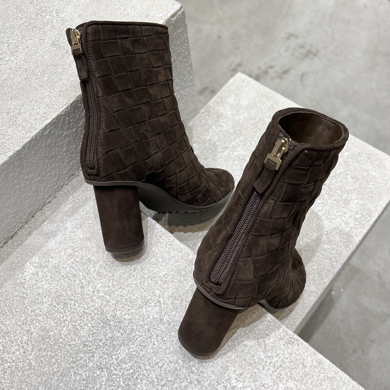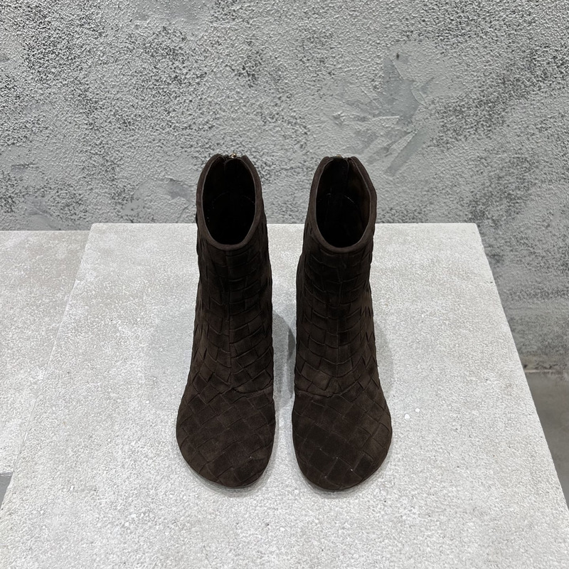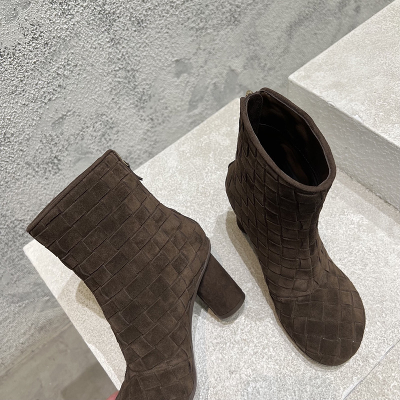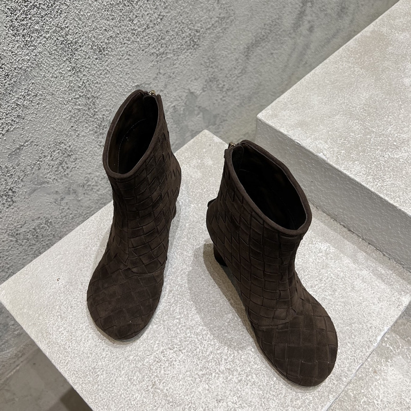 Bottega Veneta Intrecciato Suede Ankle Boots In Dark Brown