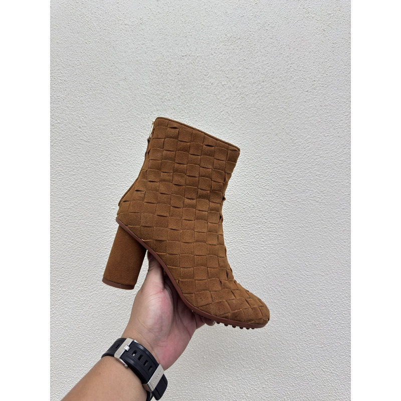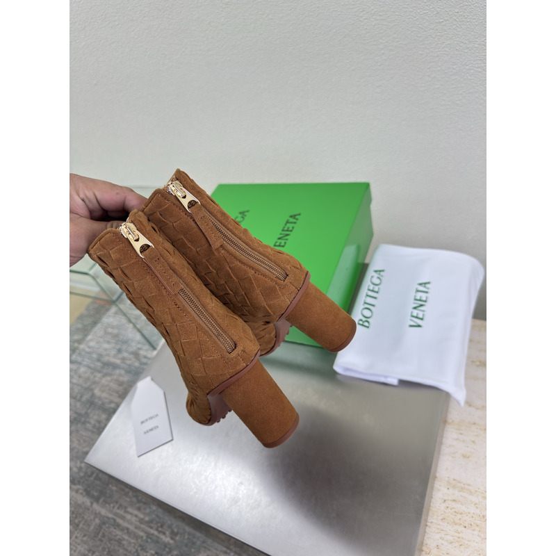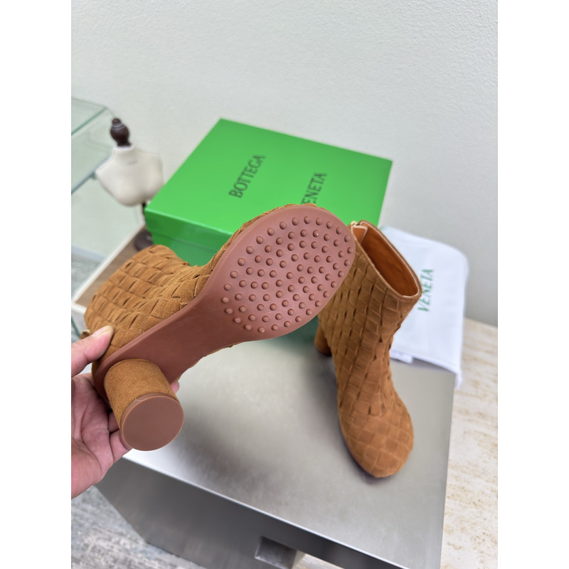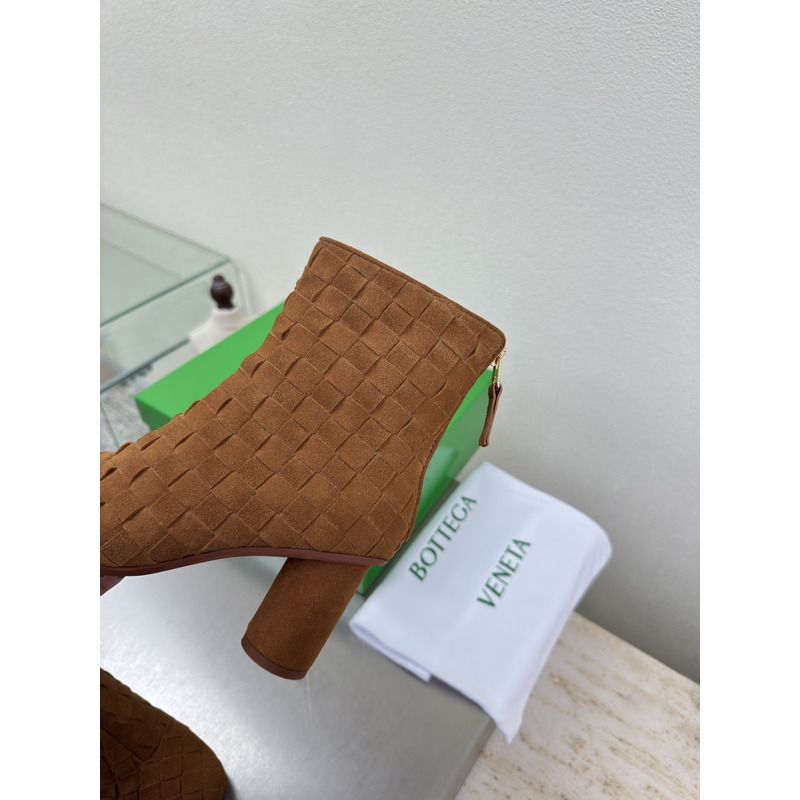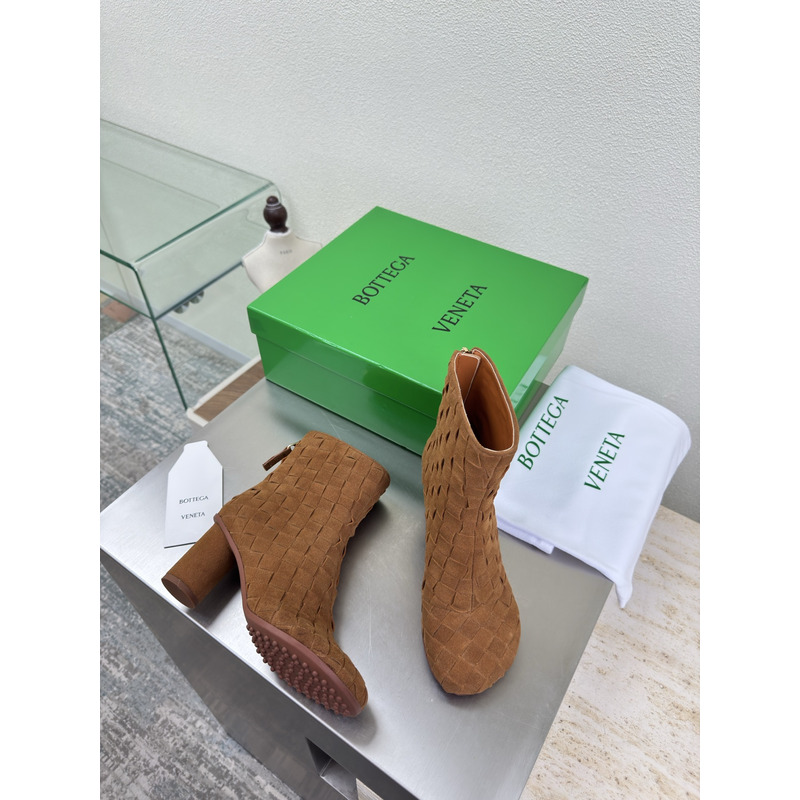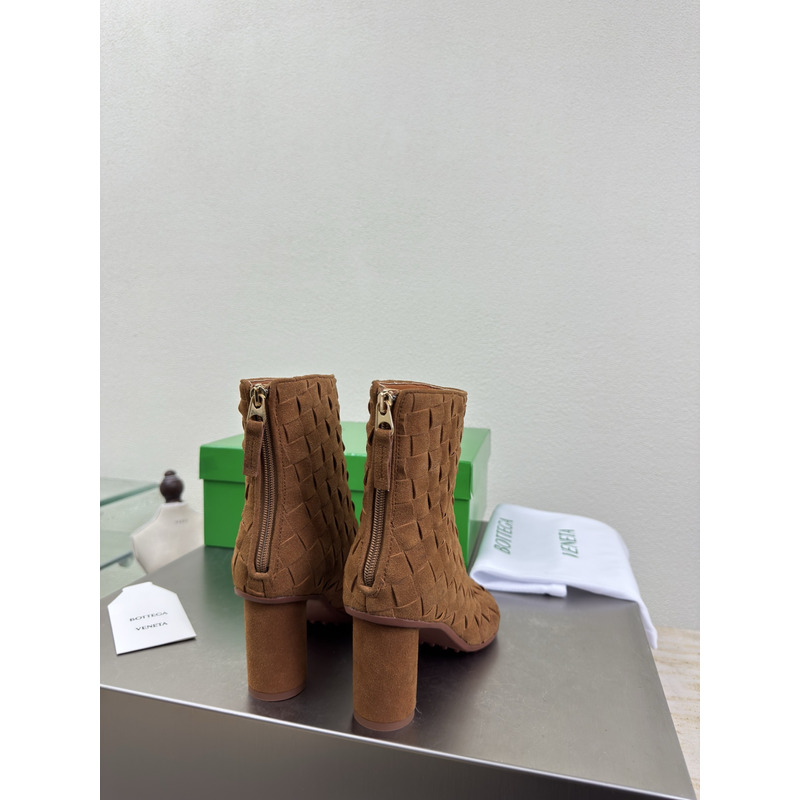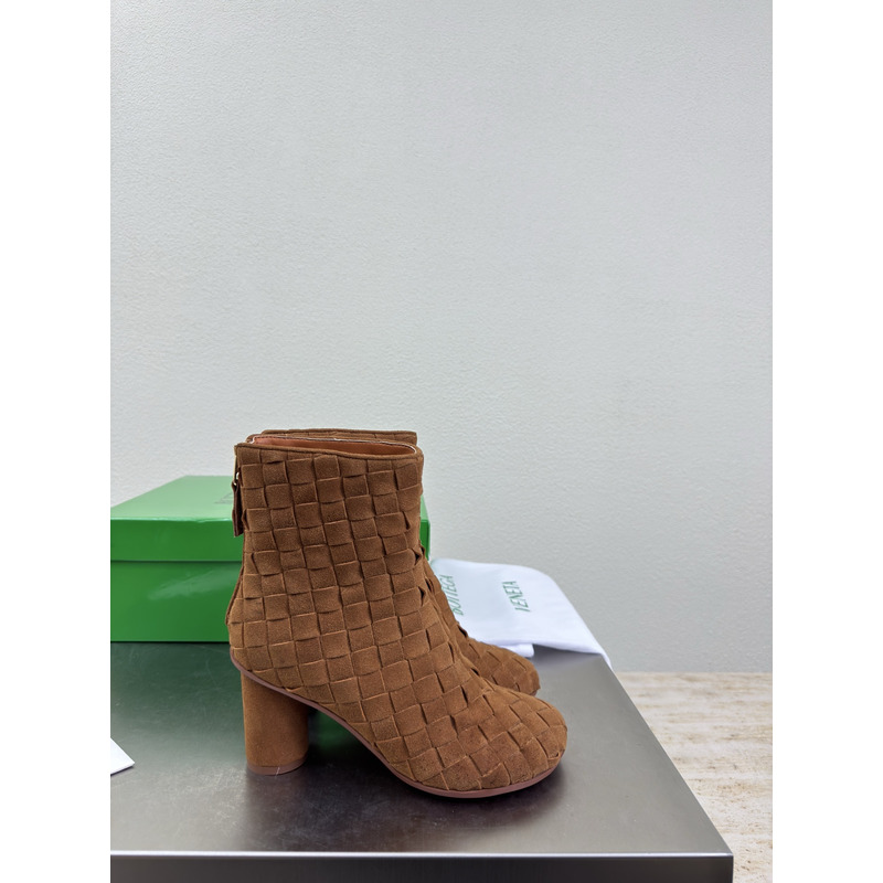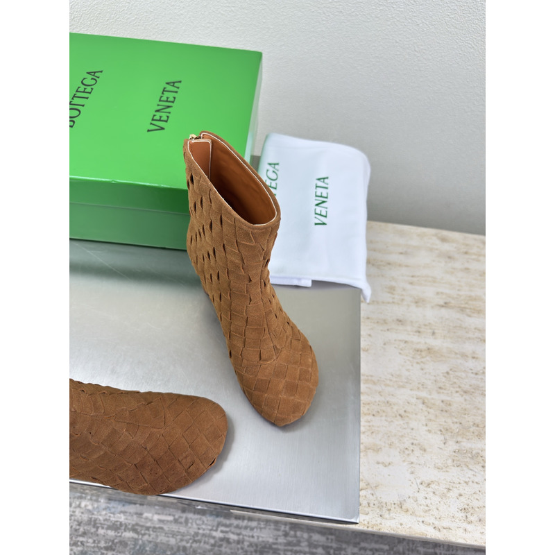 Bottega Veneta Intrecciato Suede Ankle Boots In Tan