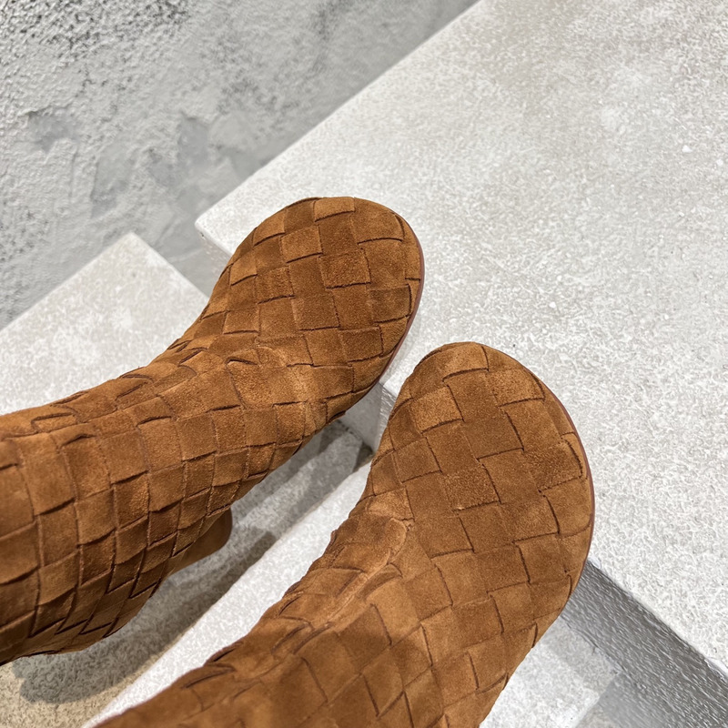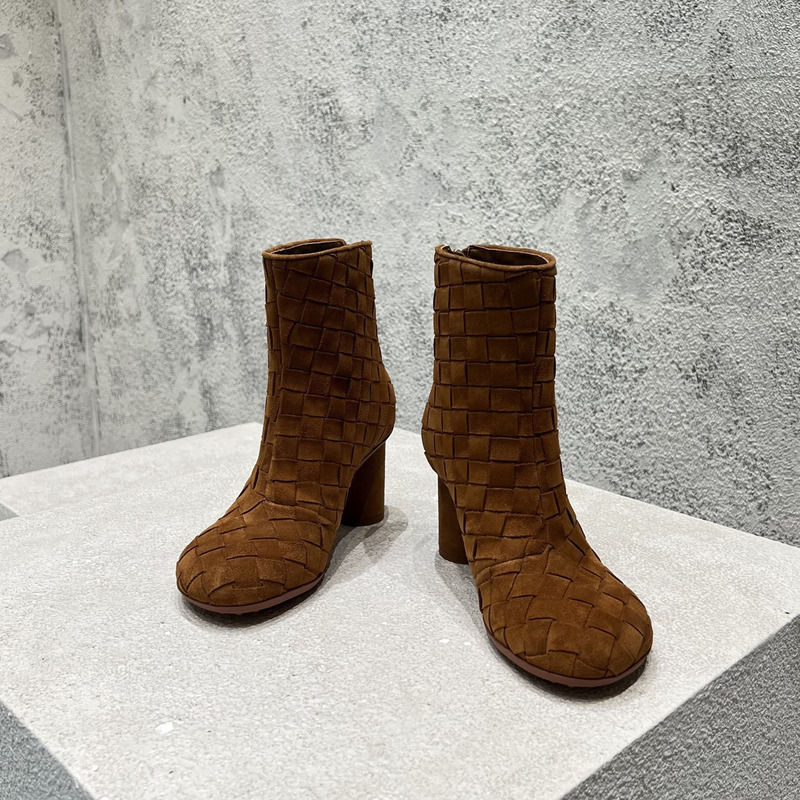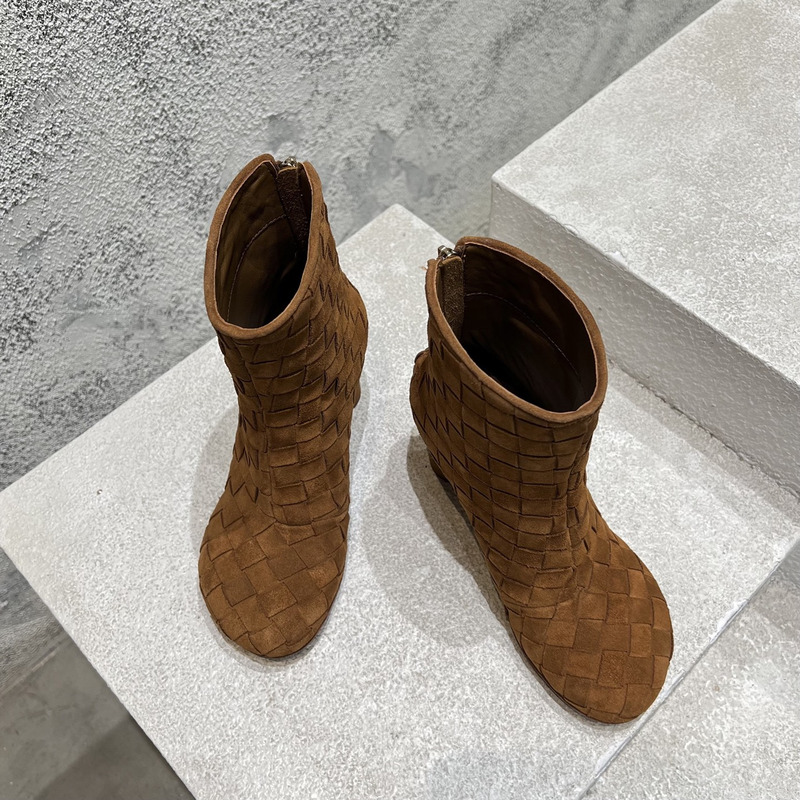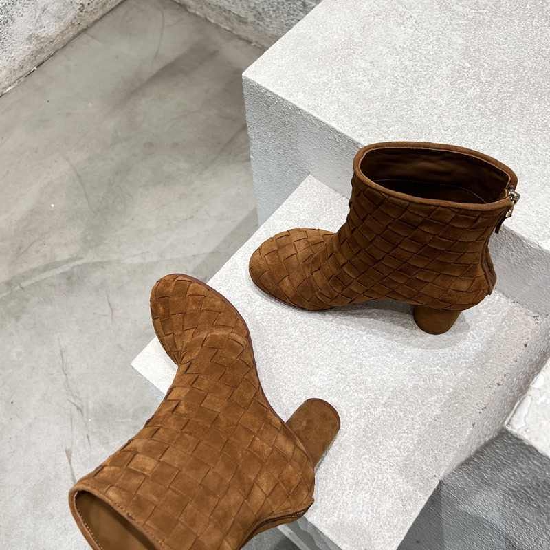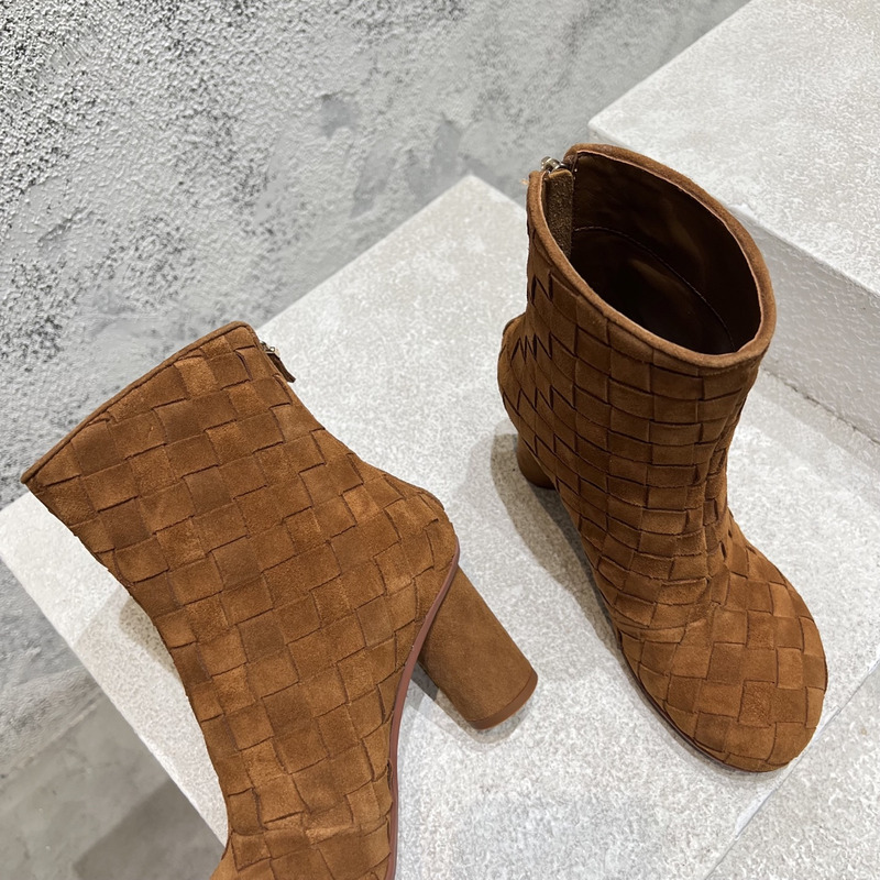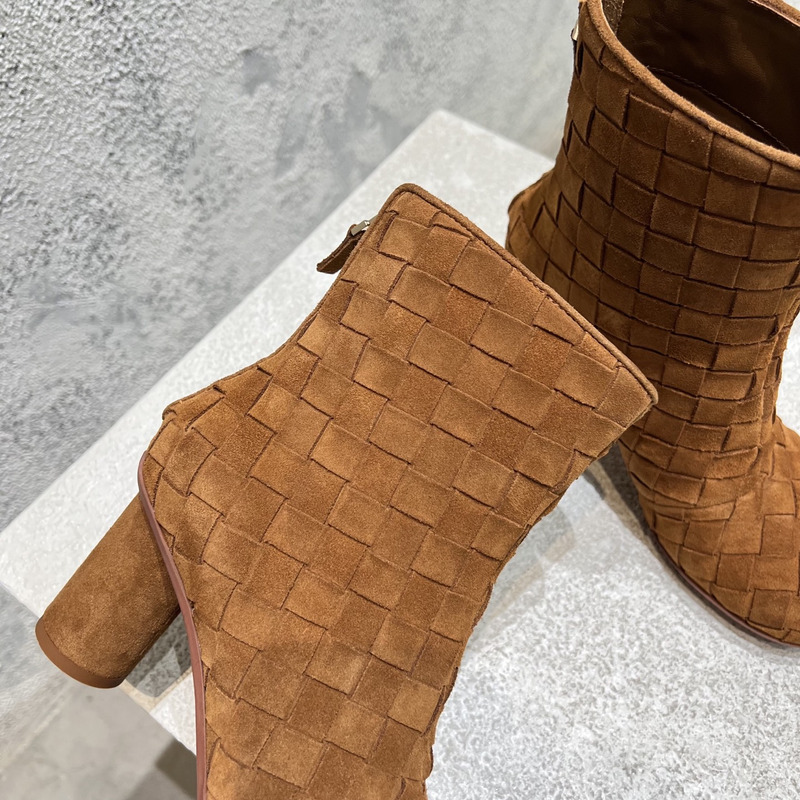 Bottega Veneta Intrecciato Suede Ankle Boots In Taupe Brown