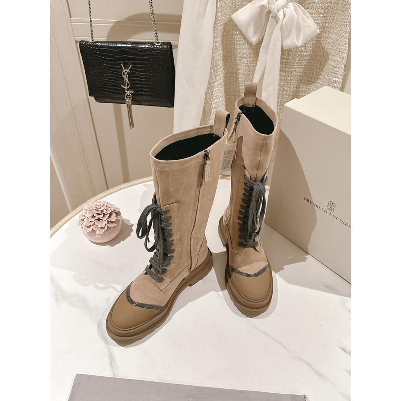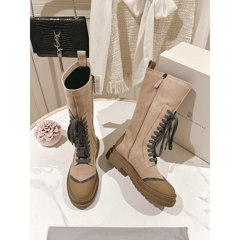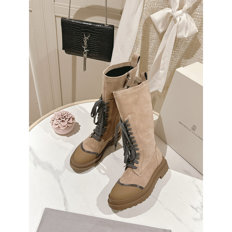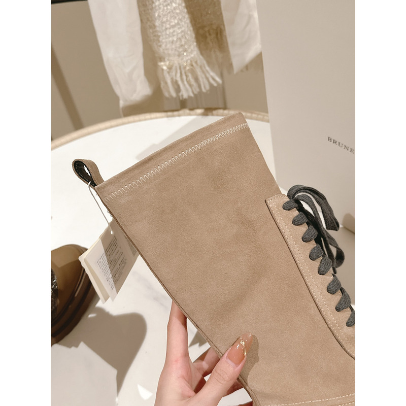 Brunello Cucineli Suede Lace-Up Boots In Brown