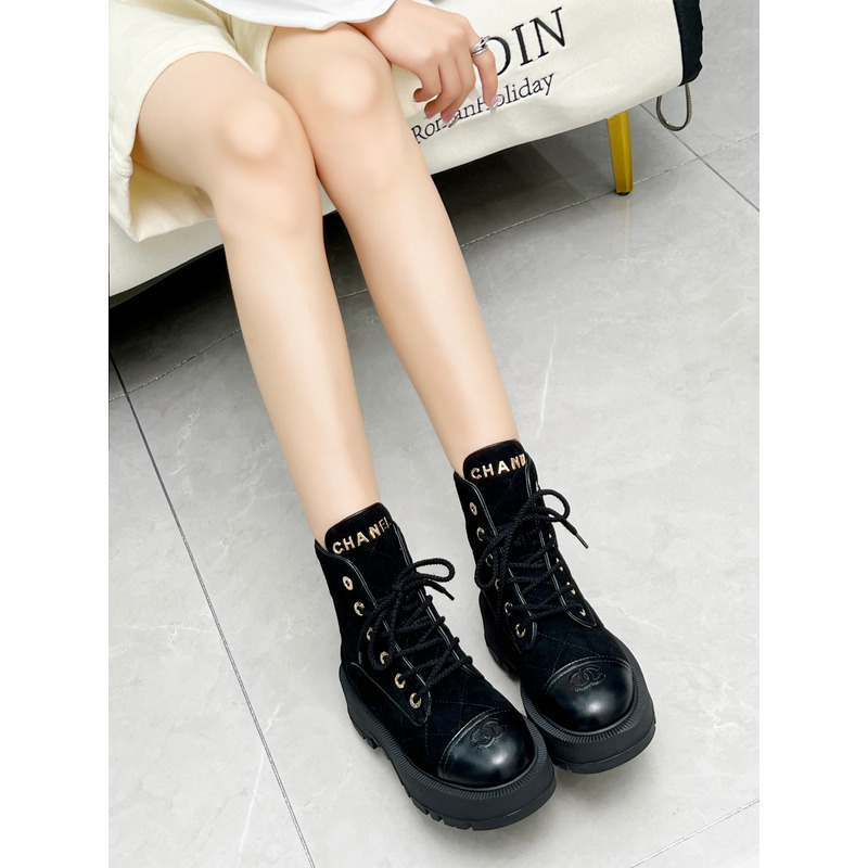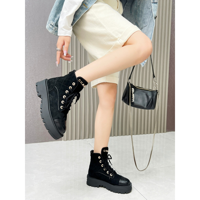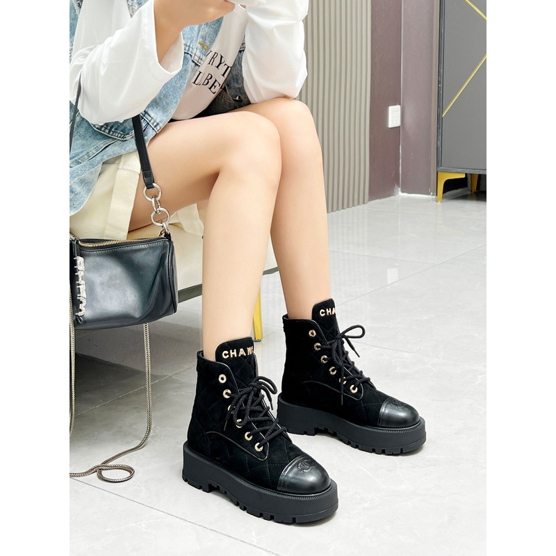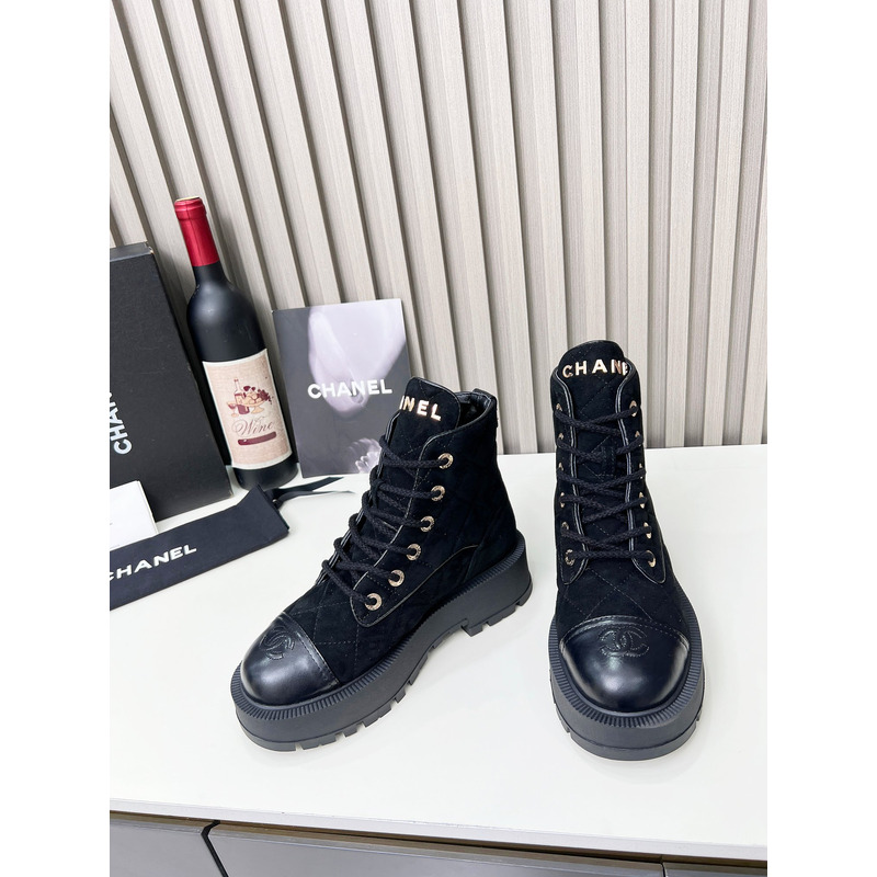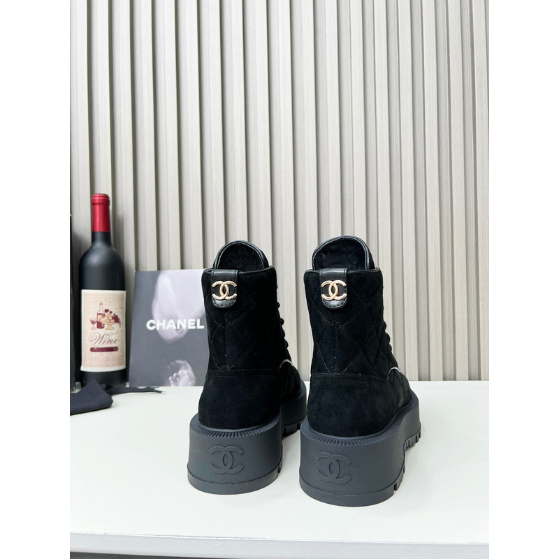 Chanel Ankle Boots Suede Calfskin & Lambskin Black