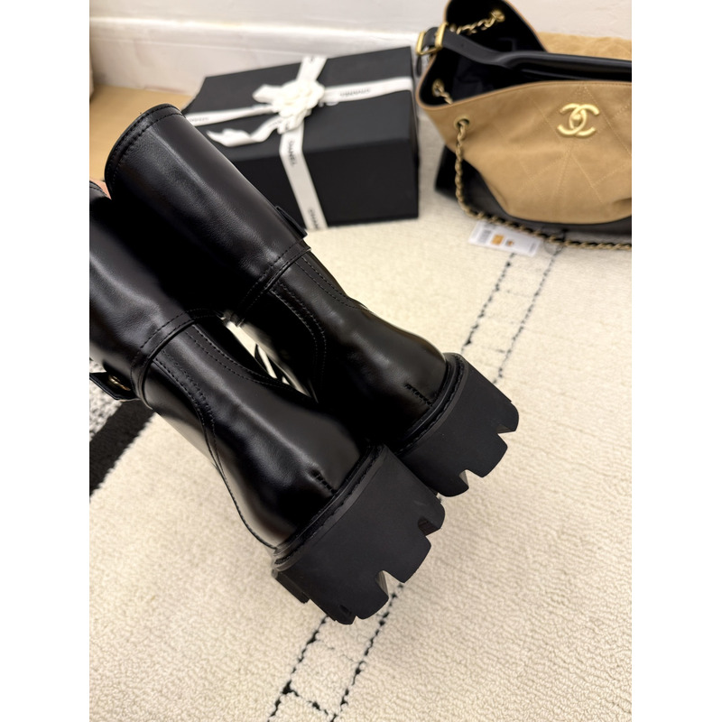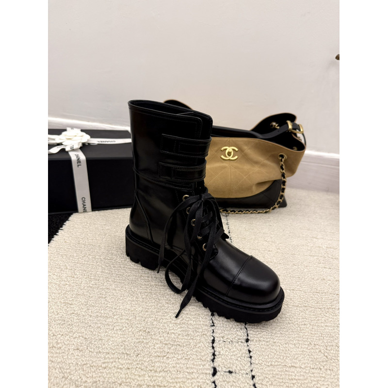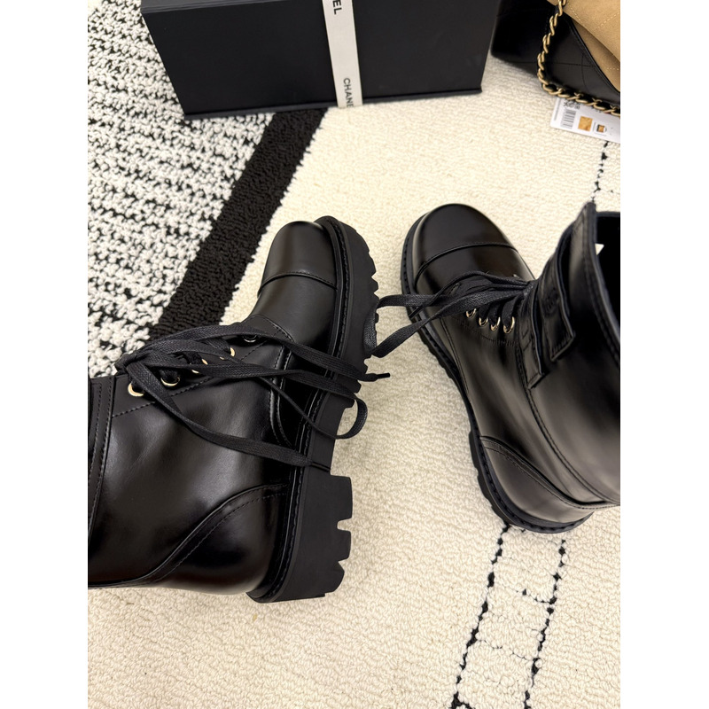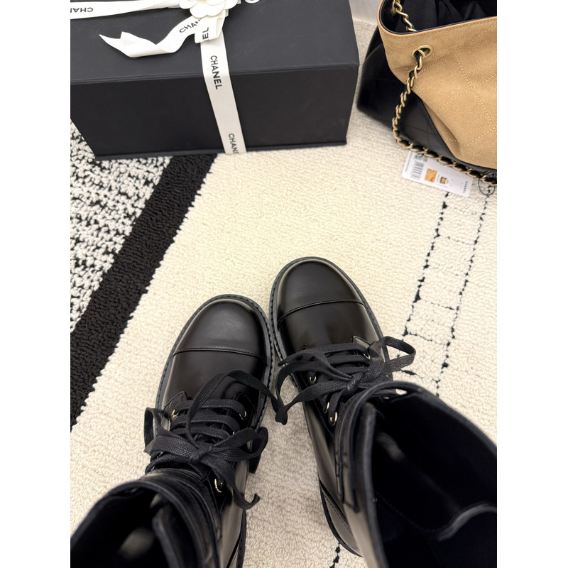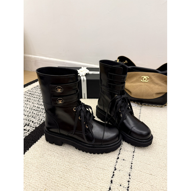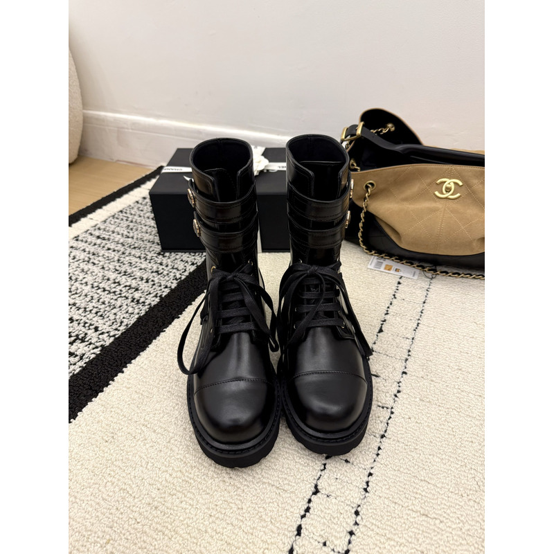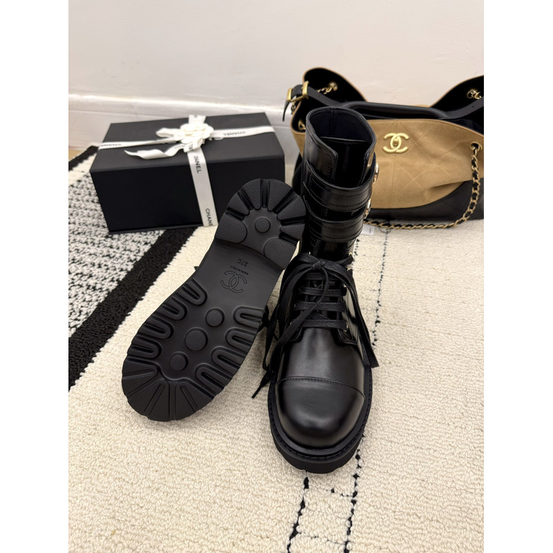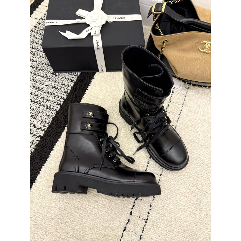 Chanel Interlocking CC Logo Combat Boots In Black Leather