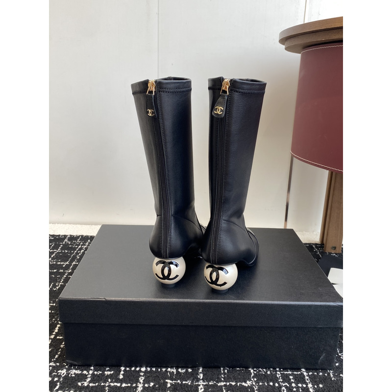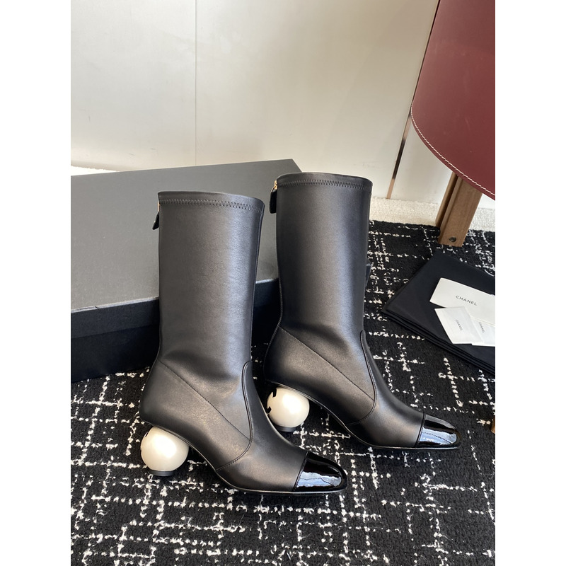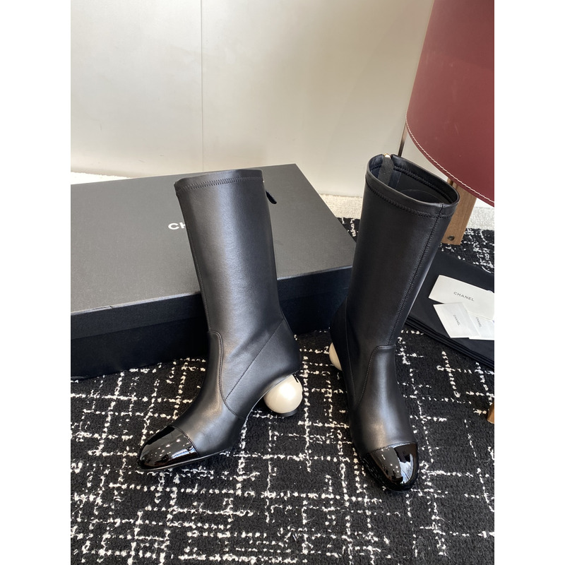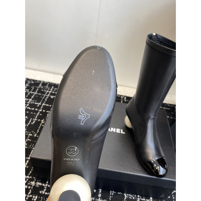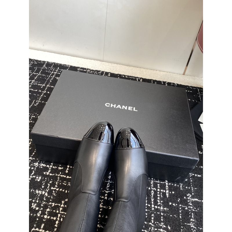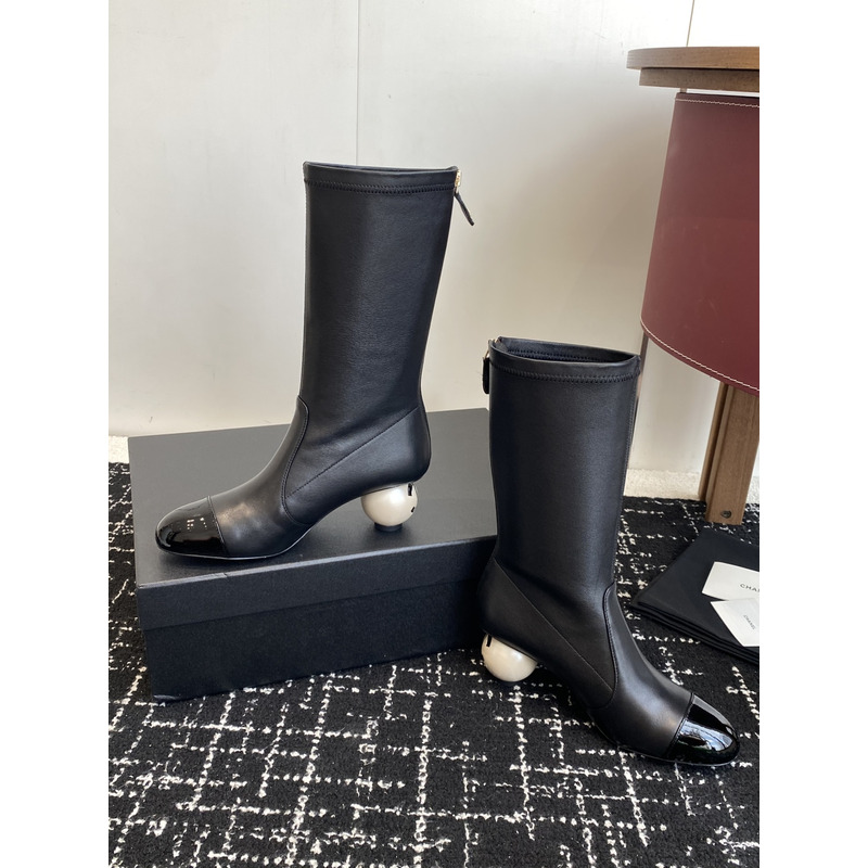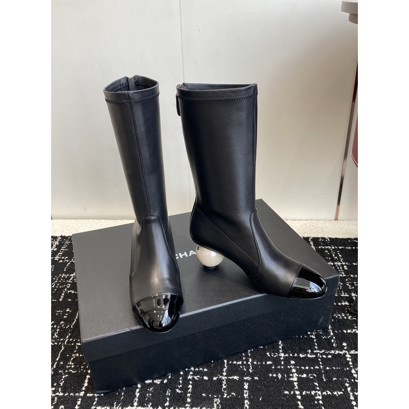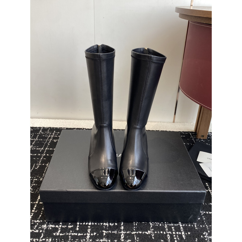 Chanel Mid-Calf Boot Stretch Lambskin Patent Calfskin Black