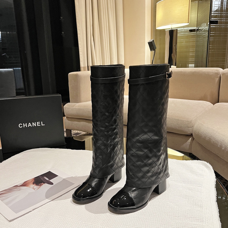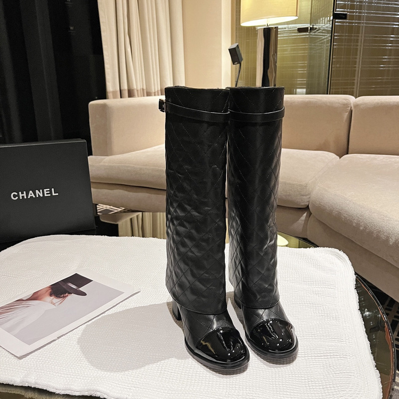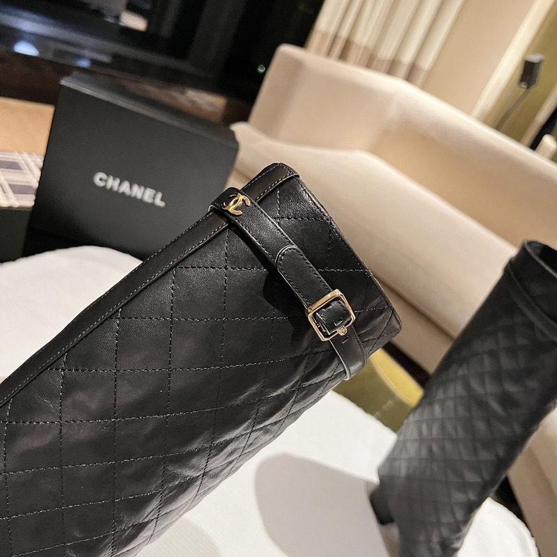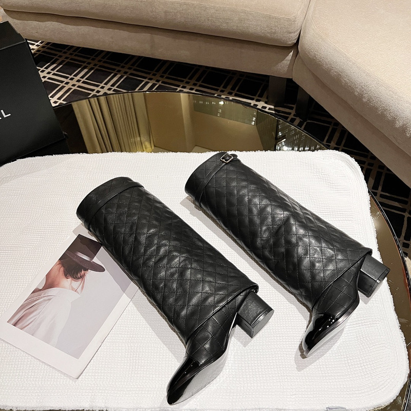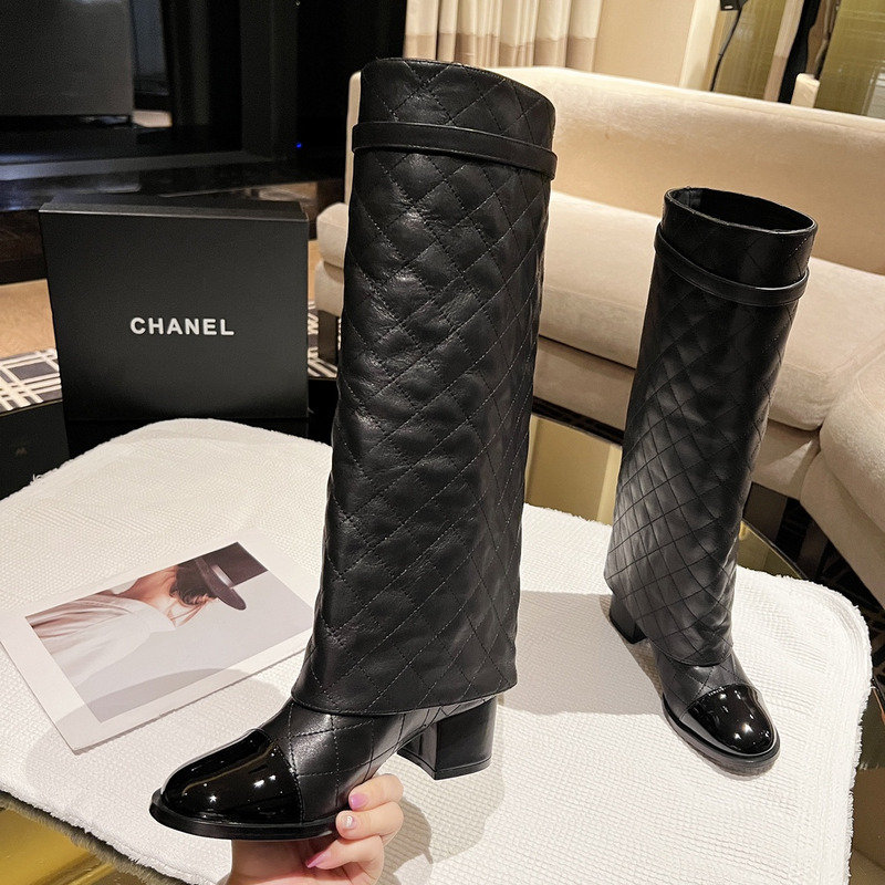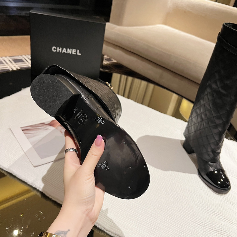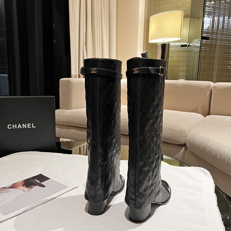 Chanel Quilted Block-Heel Trouser Boots In Black