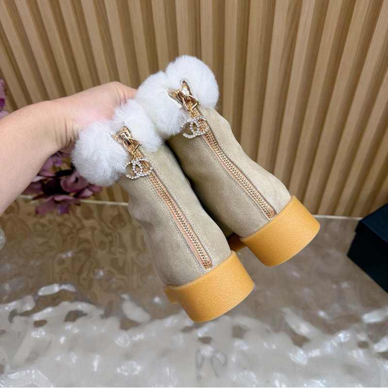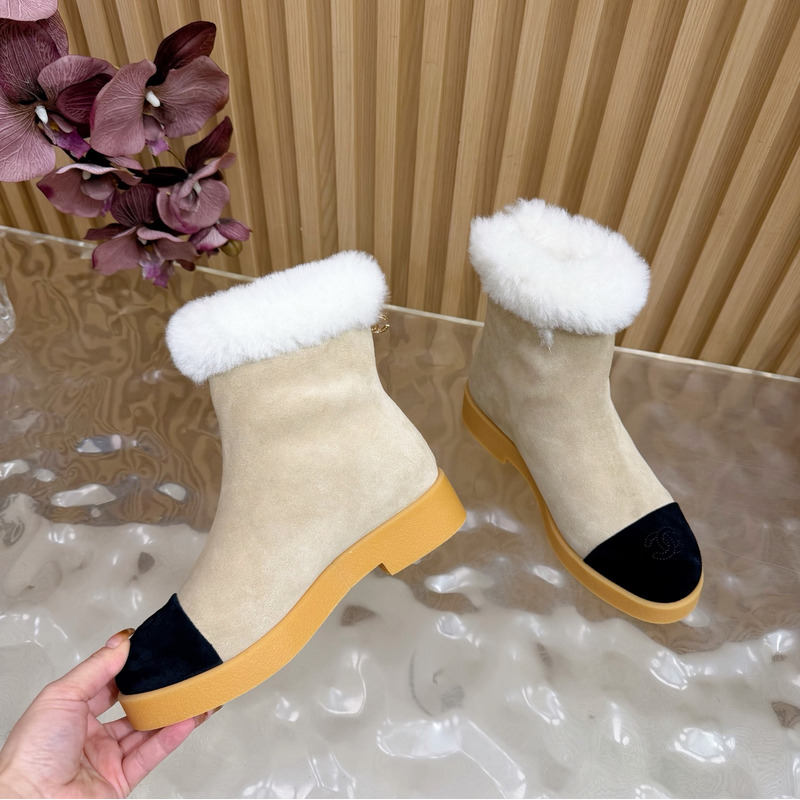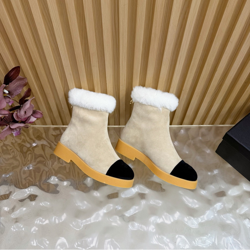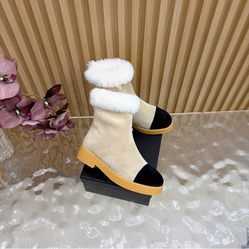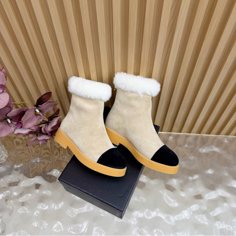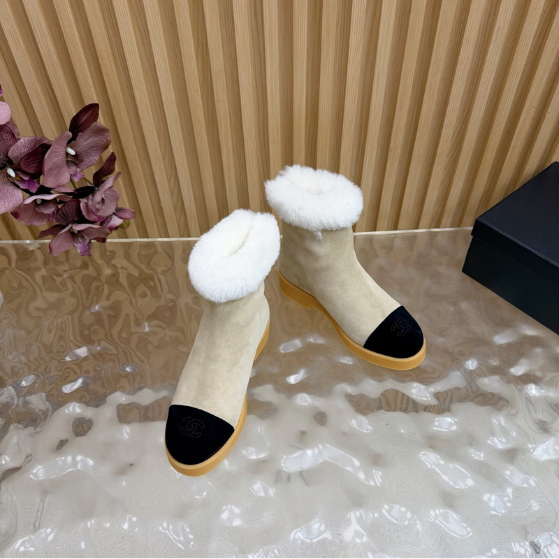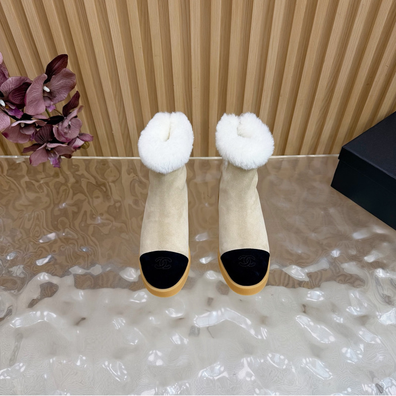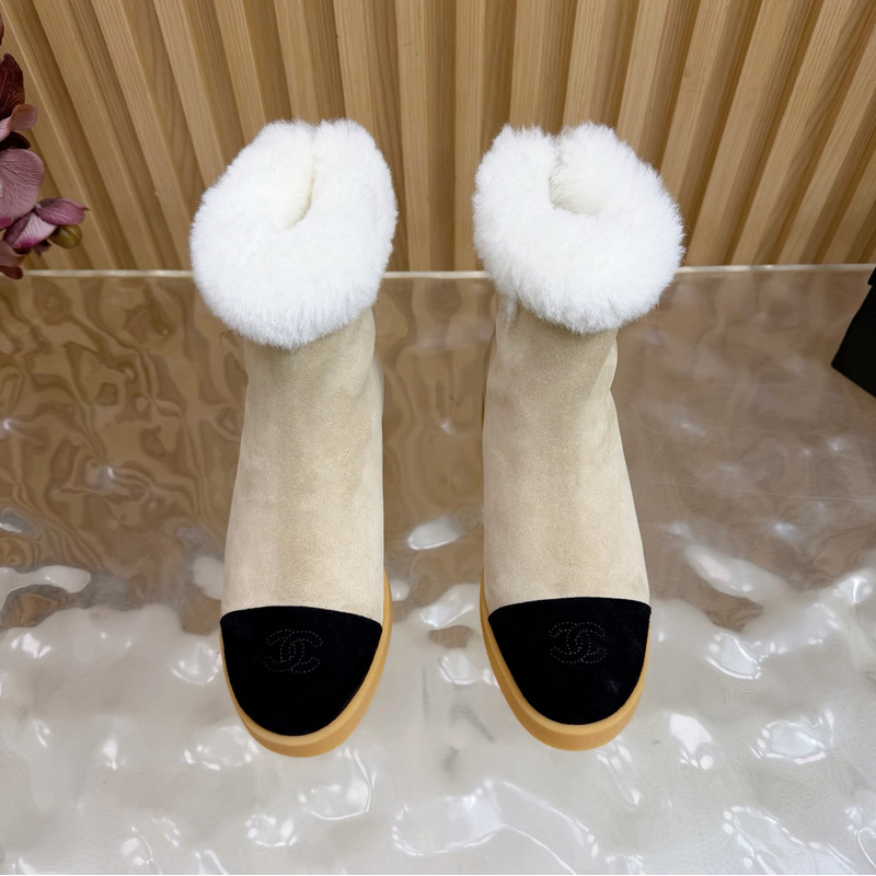 Chanel Short Boots - Shearling Sheepskin, Dark Beige & Black
