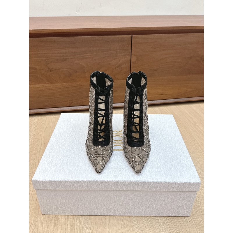 Dior Capture Heeled Ankle Boot Transparent Mesh With Silver