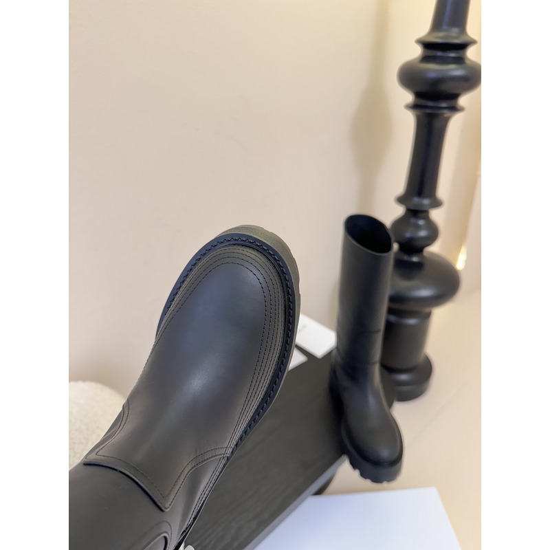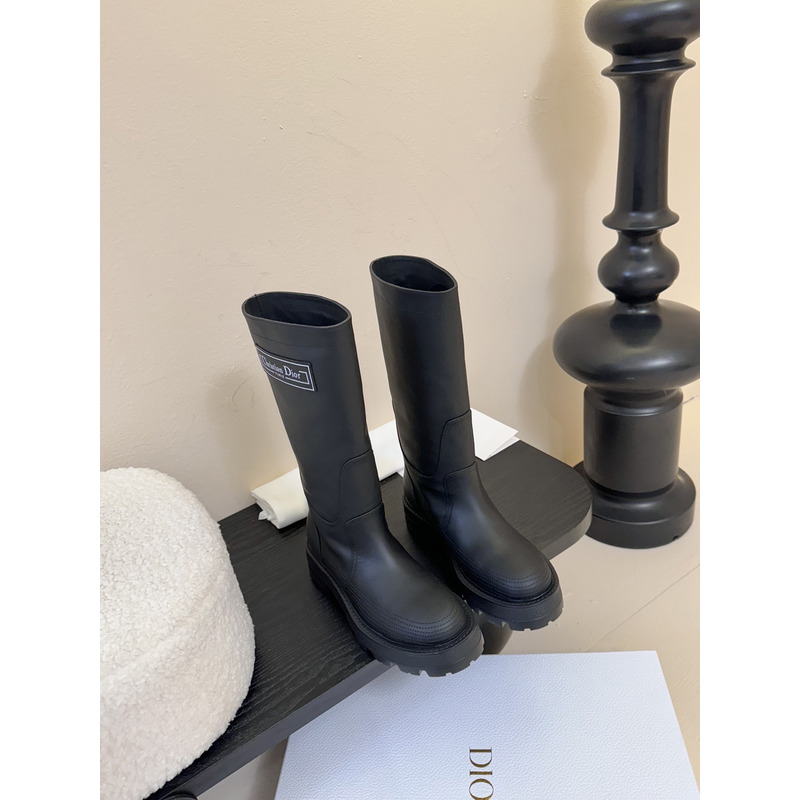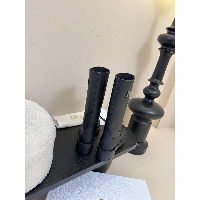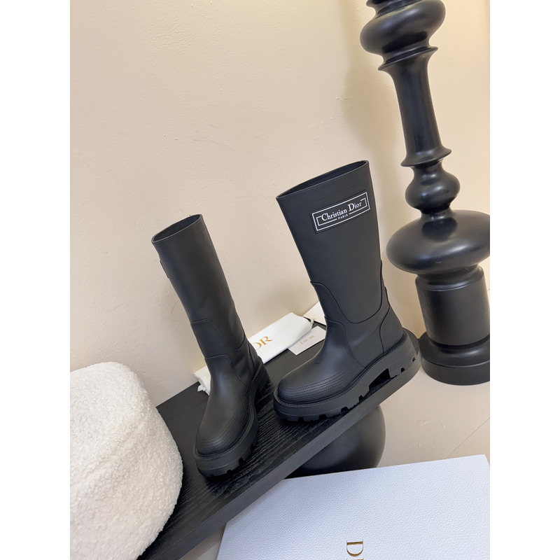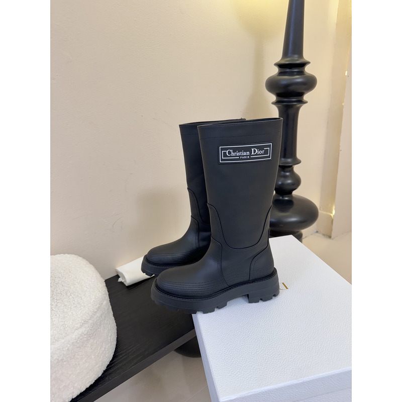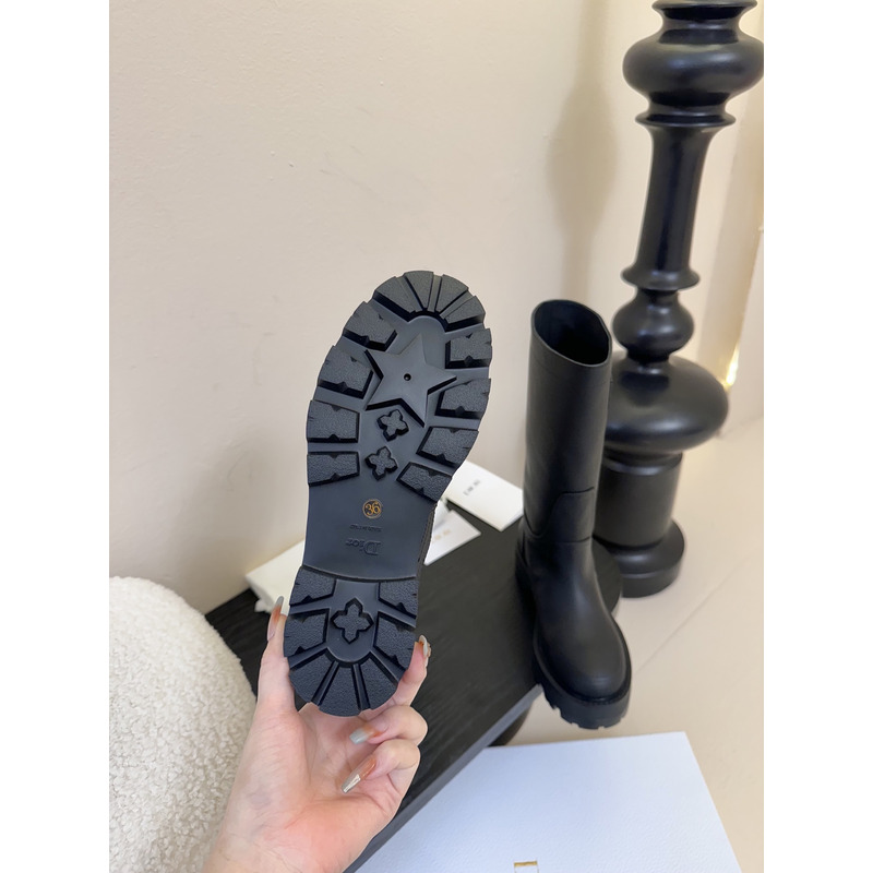Dior D-Scots Boots In Black Rubber-Effect Cowhide Leather