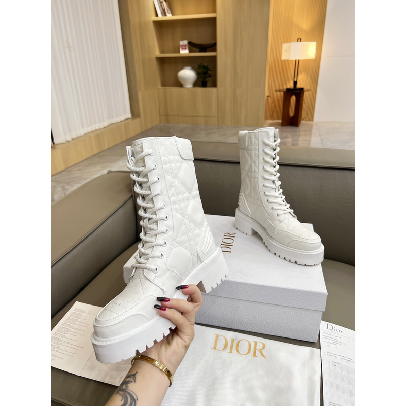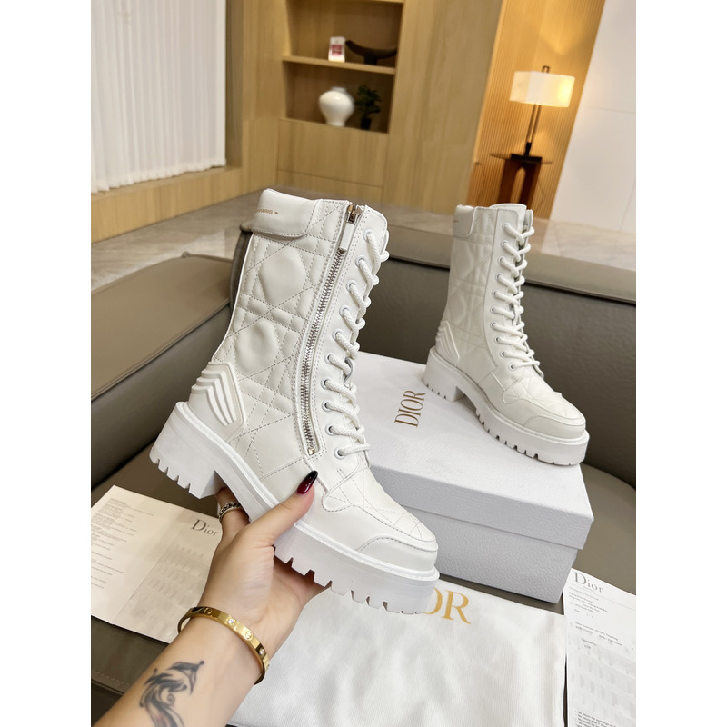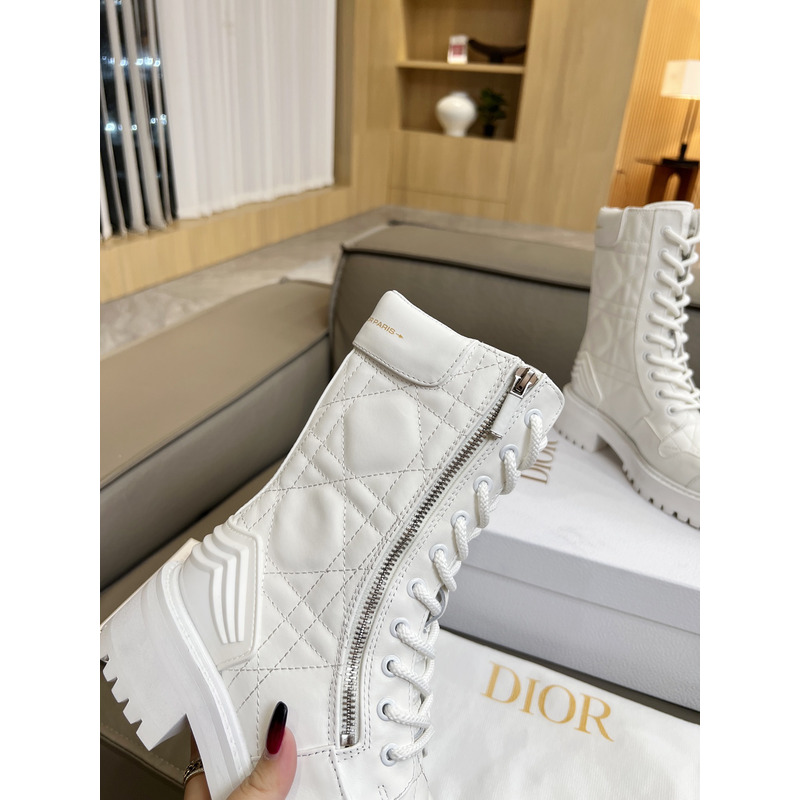 Dior D-Unit Ankle Boot White Quilted Cannage Calfskin