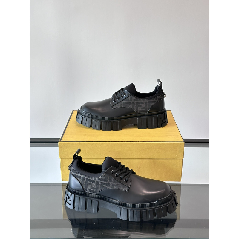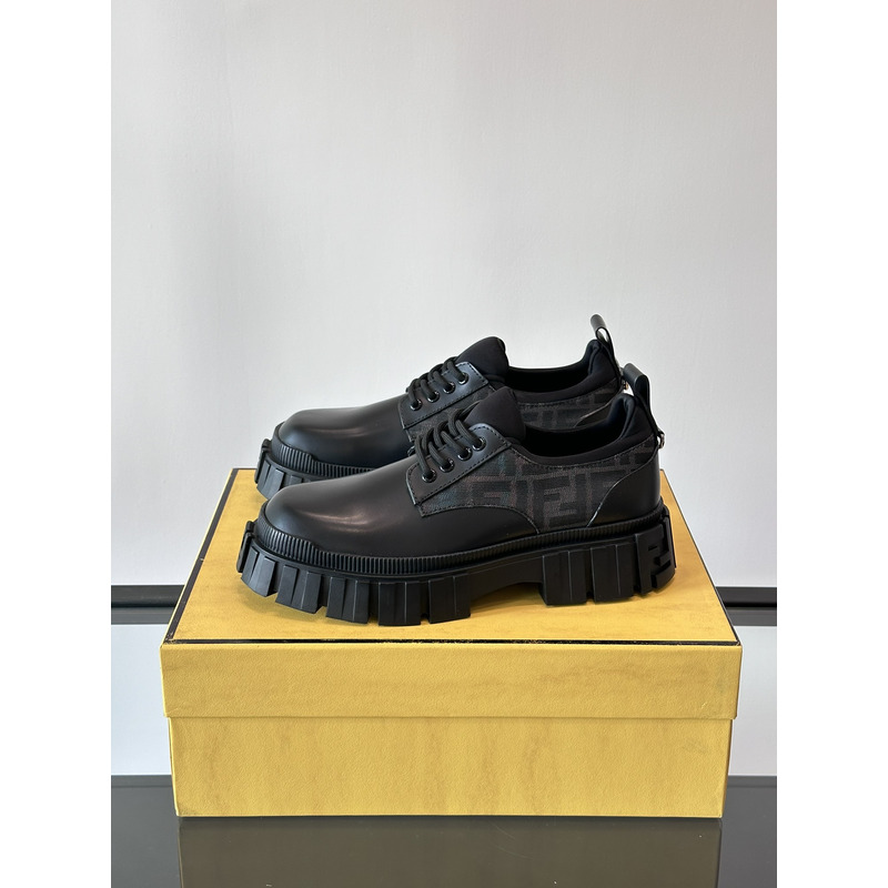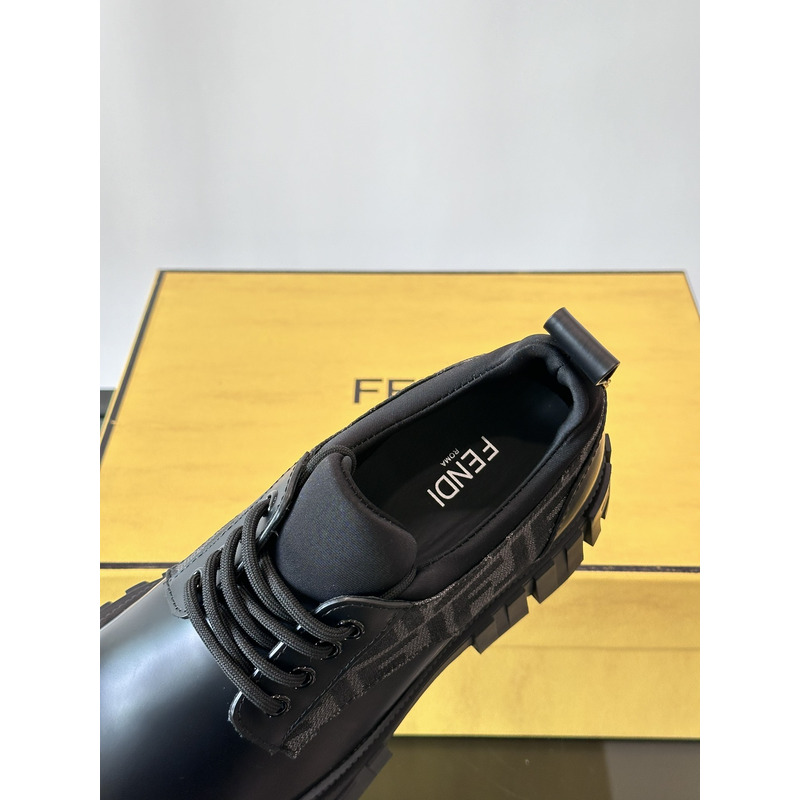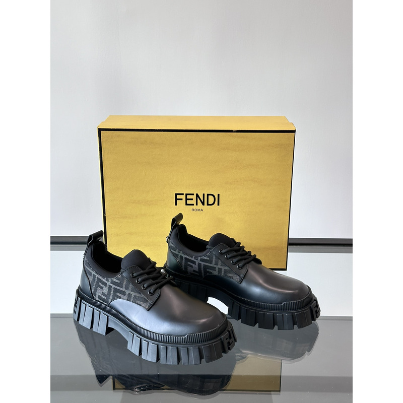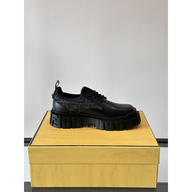 Fendi Force Derby Shoes in Black Leather and FF Fabric