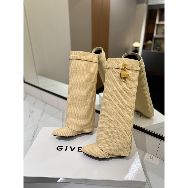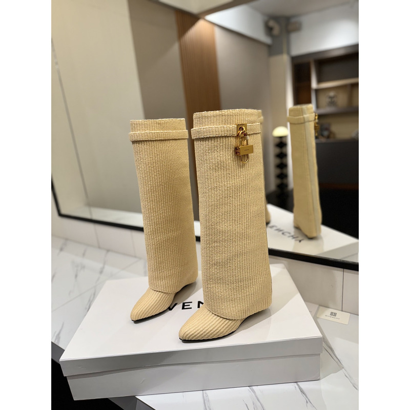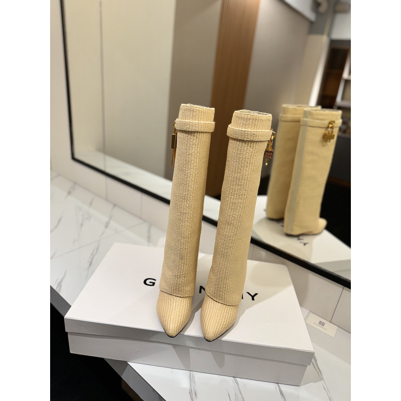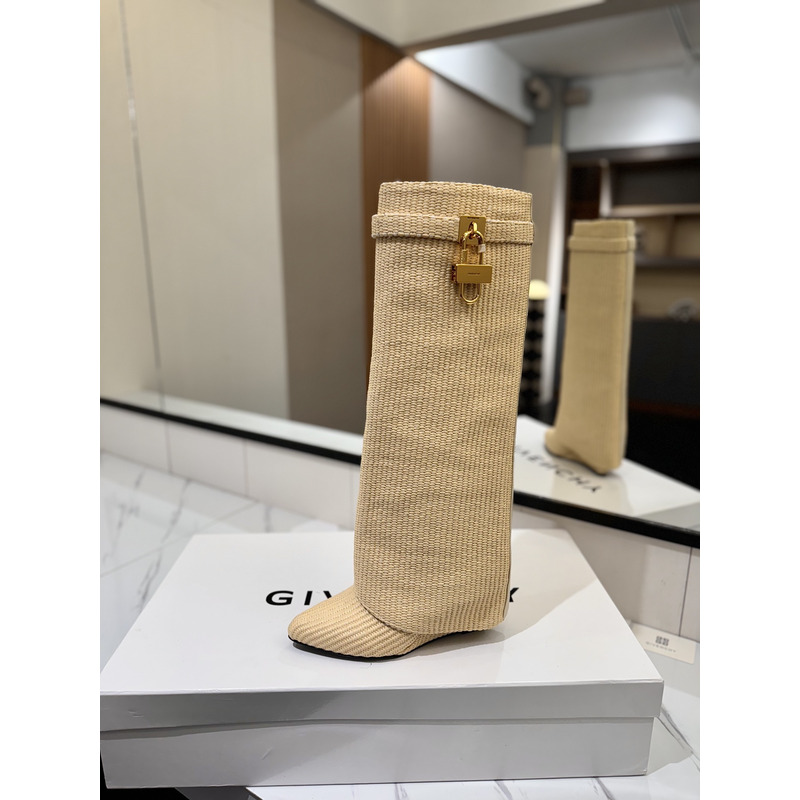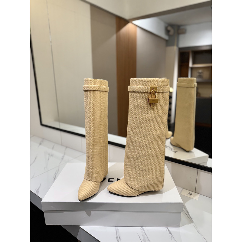 Givenchy Beige Knit Shark Lock Knee-Length Boots