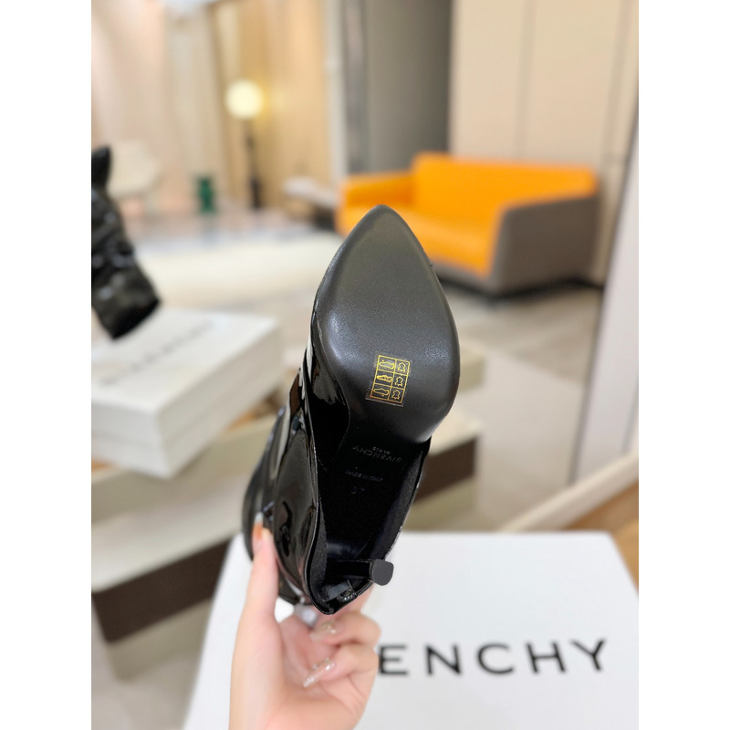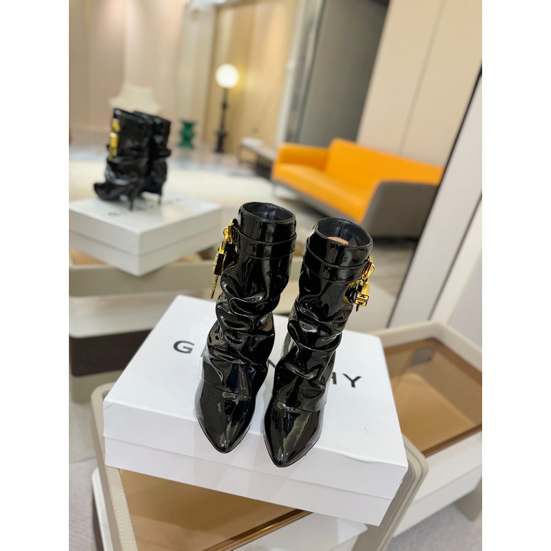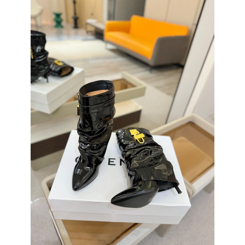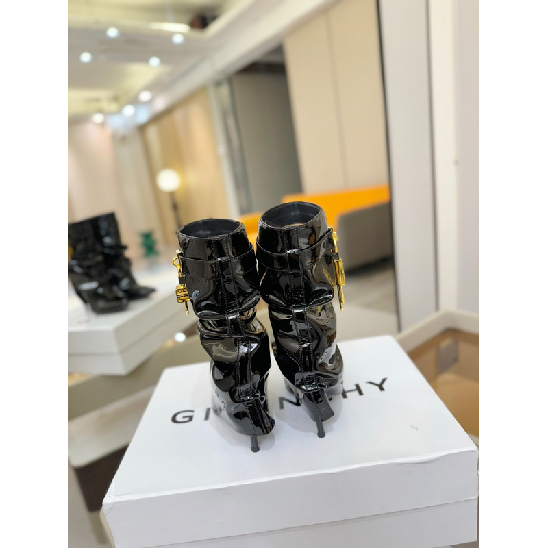 Givenchy Black Shark Lock Stiletto Ankle Boots In Patent Leather