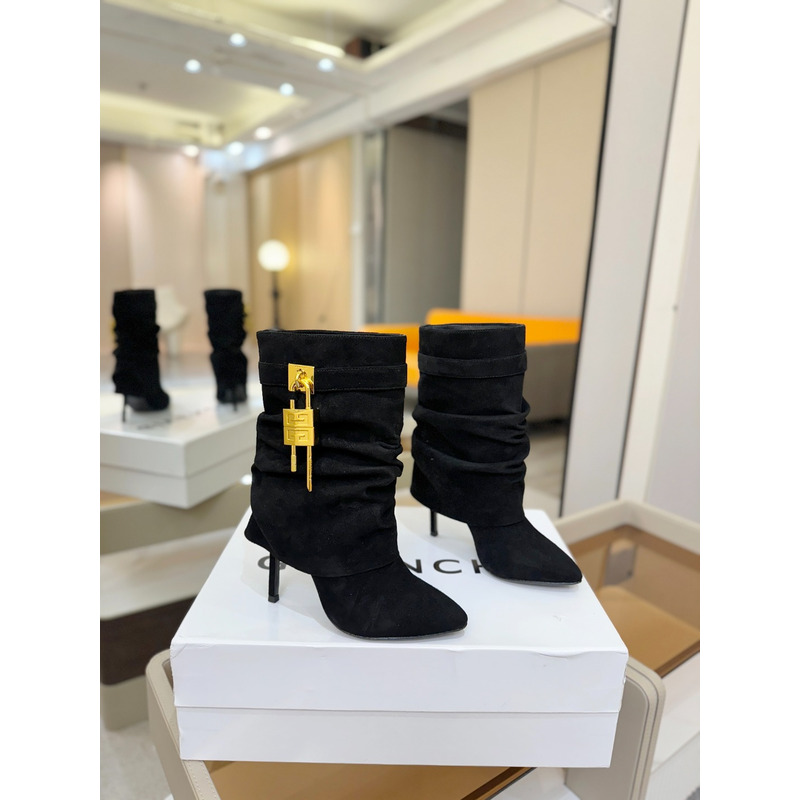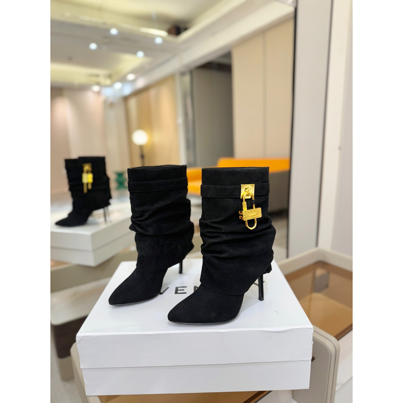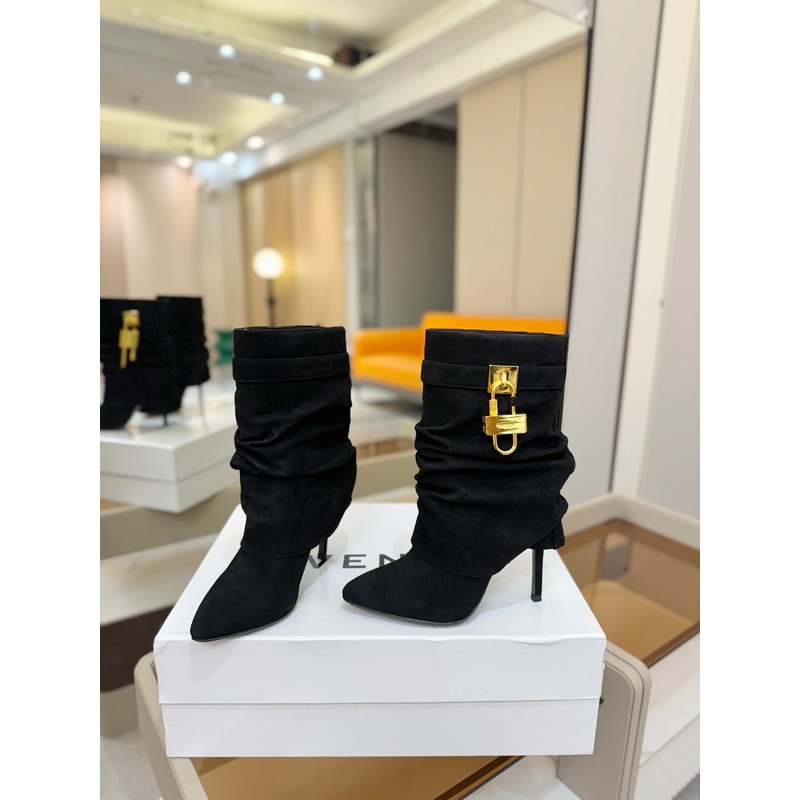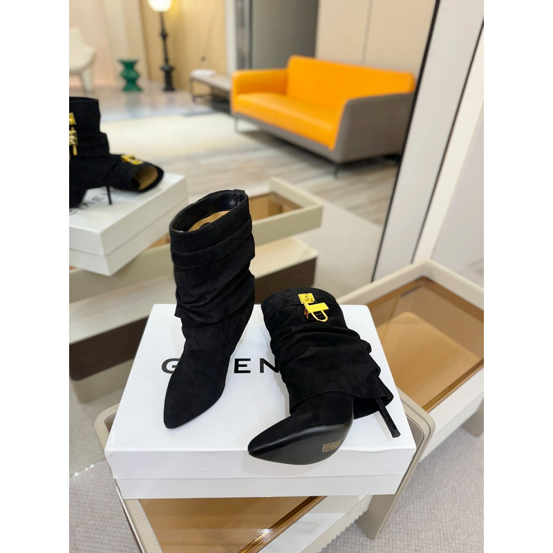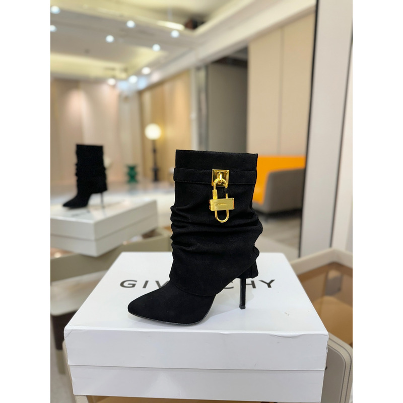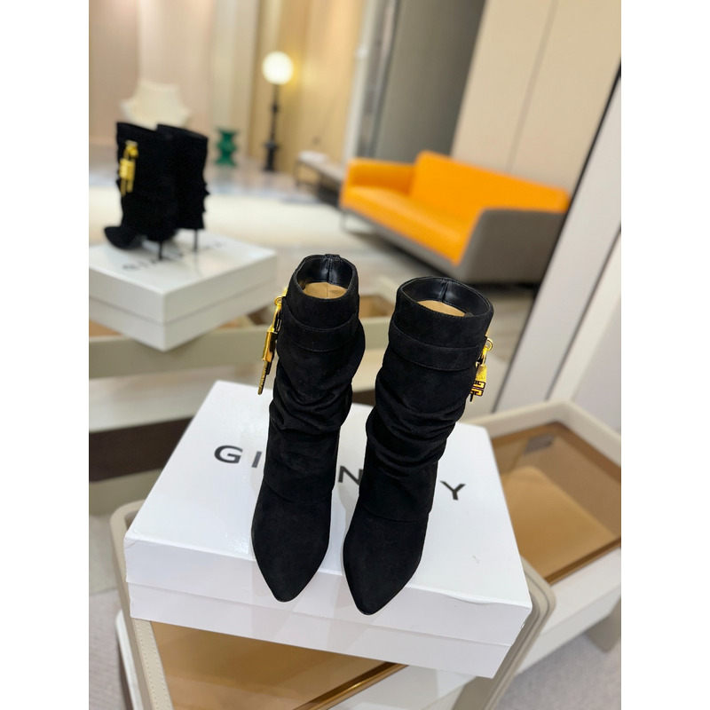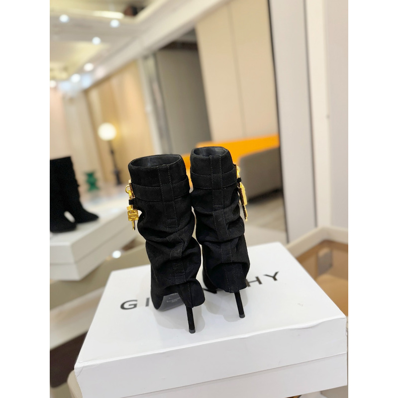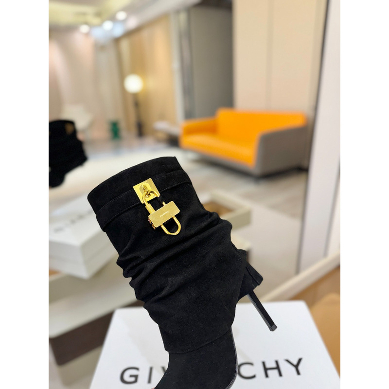 Givenchy Black Shark Lock Stiletto Ankle Boots In Suede