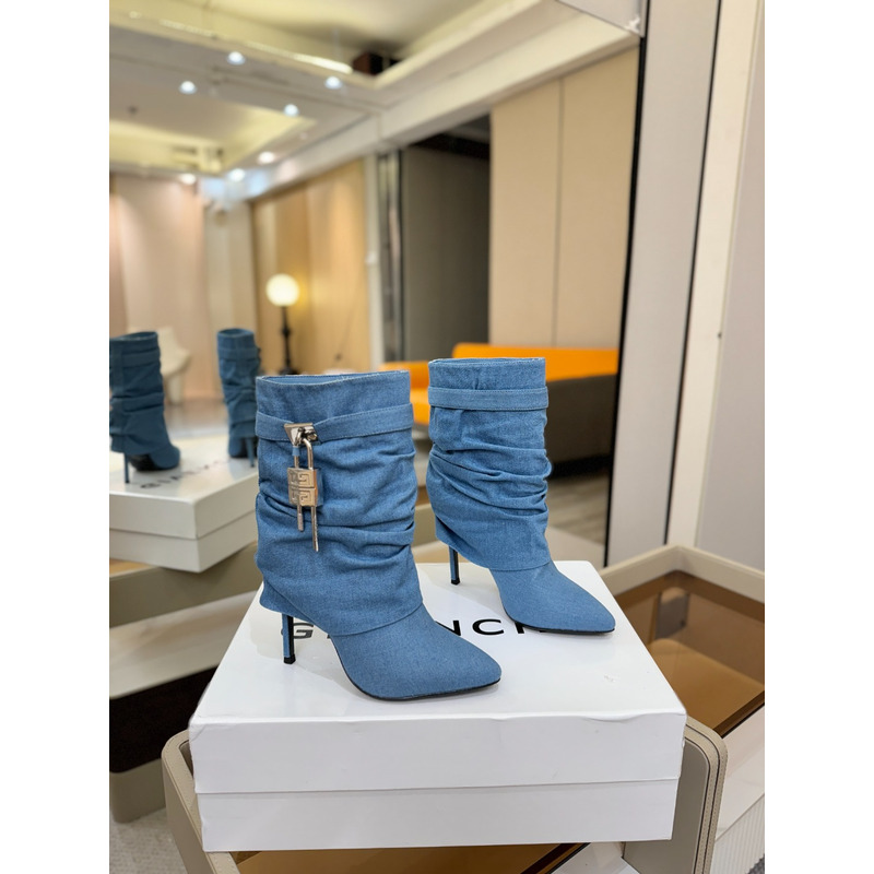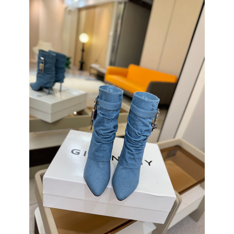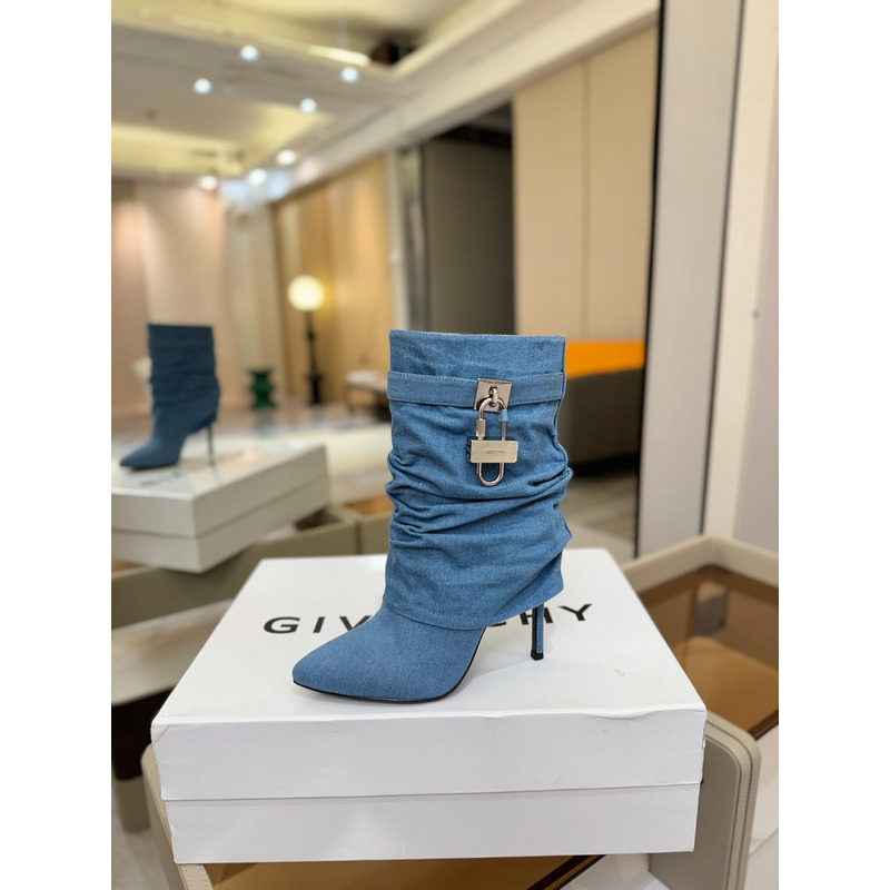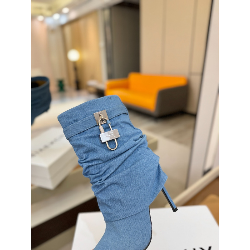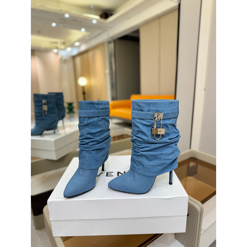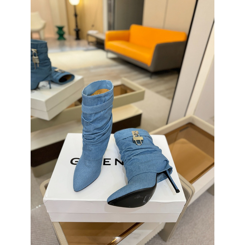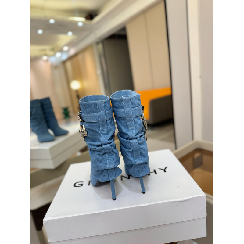 Givenchy Blue Shark Lock Stiletto Ankle Boots In Denim