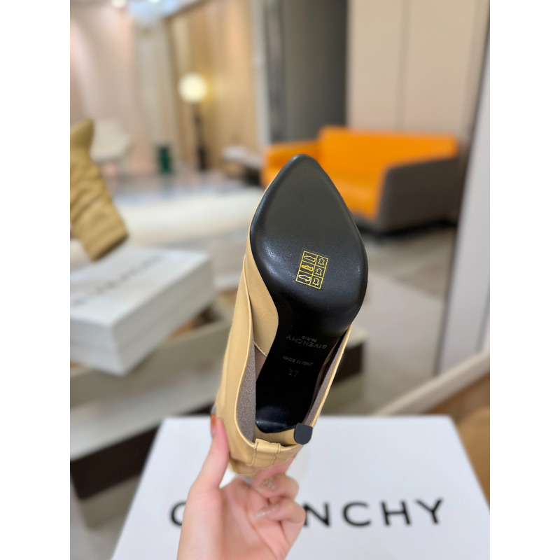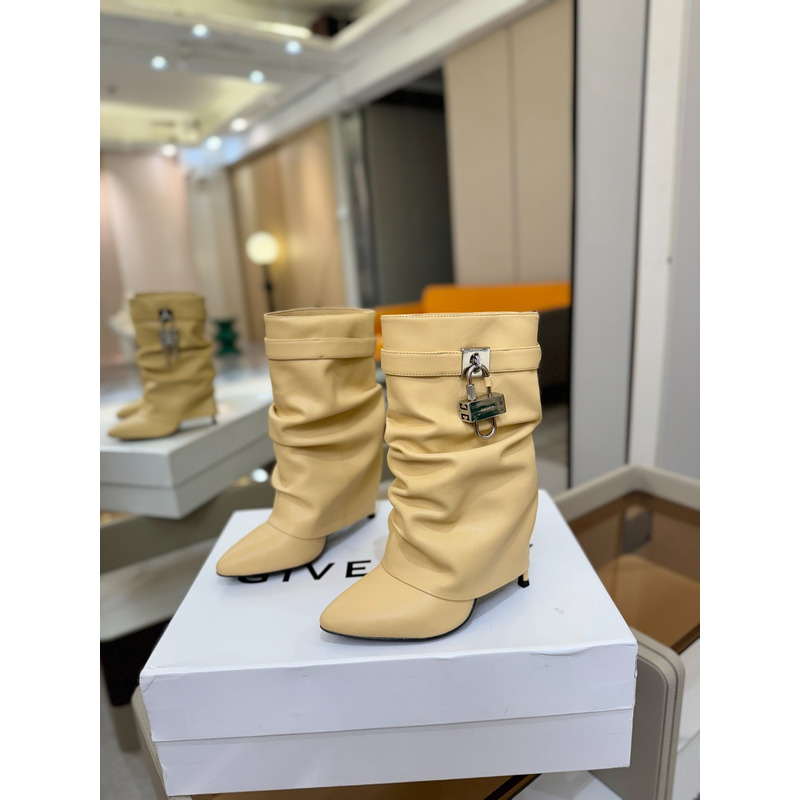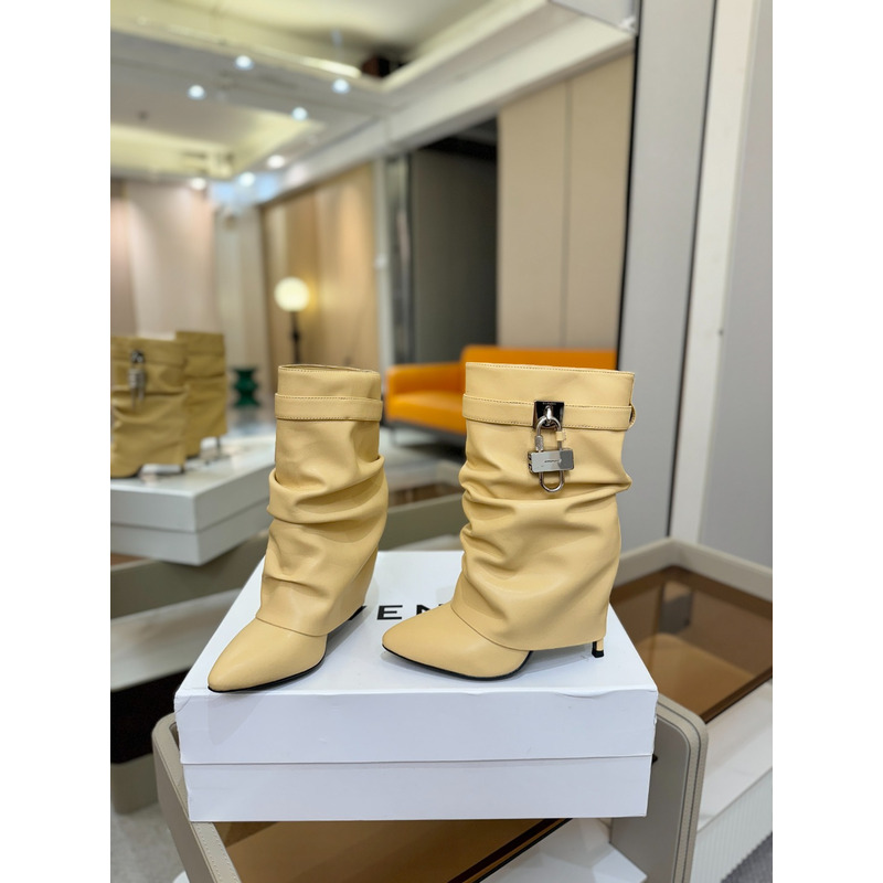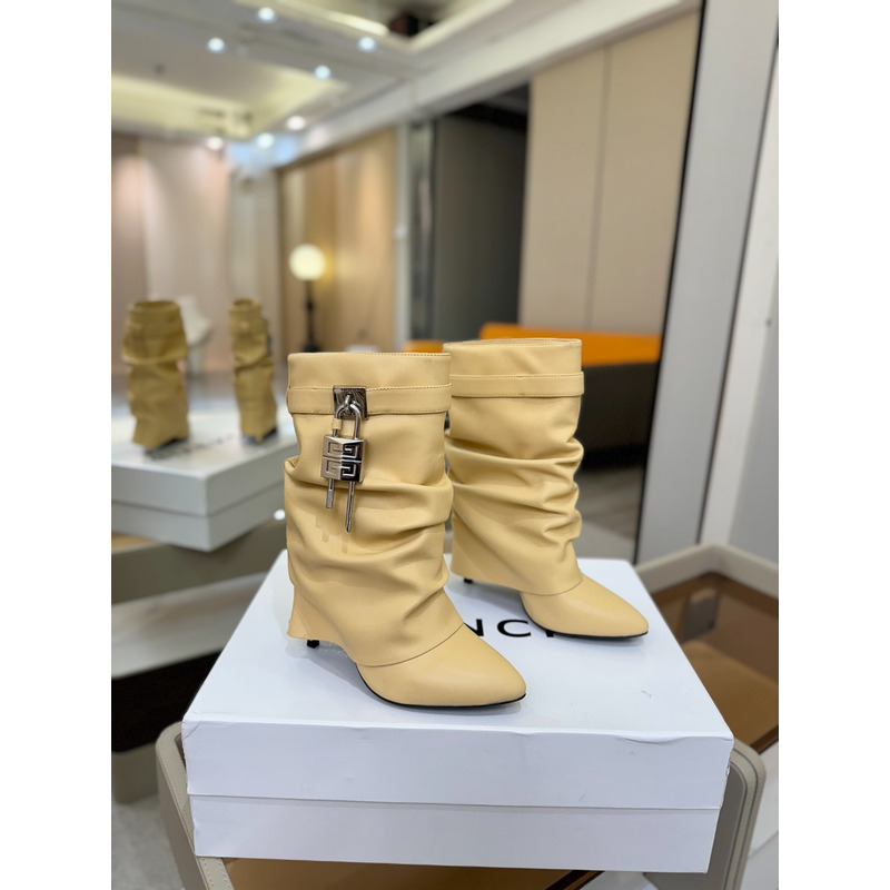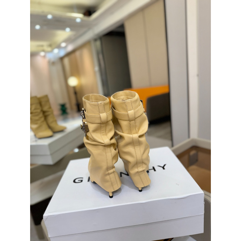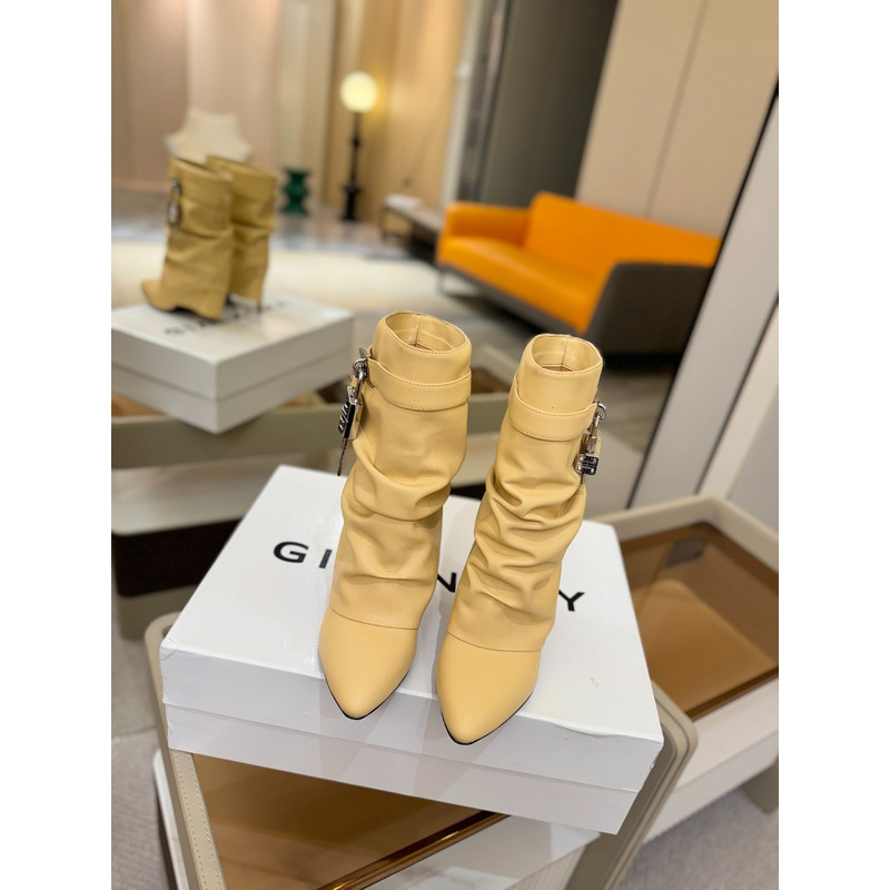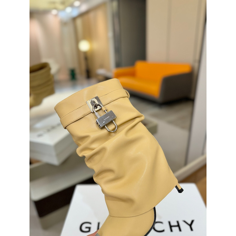 Givenchy Butter Yellow Shark Lock Stiletto Ankle Boots In Leather