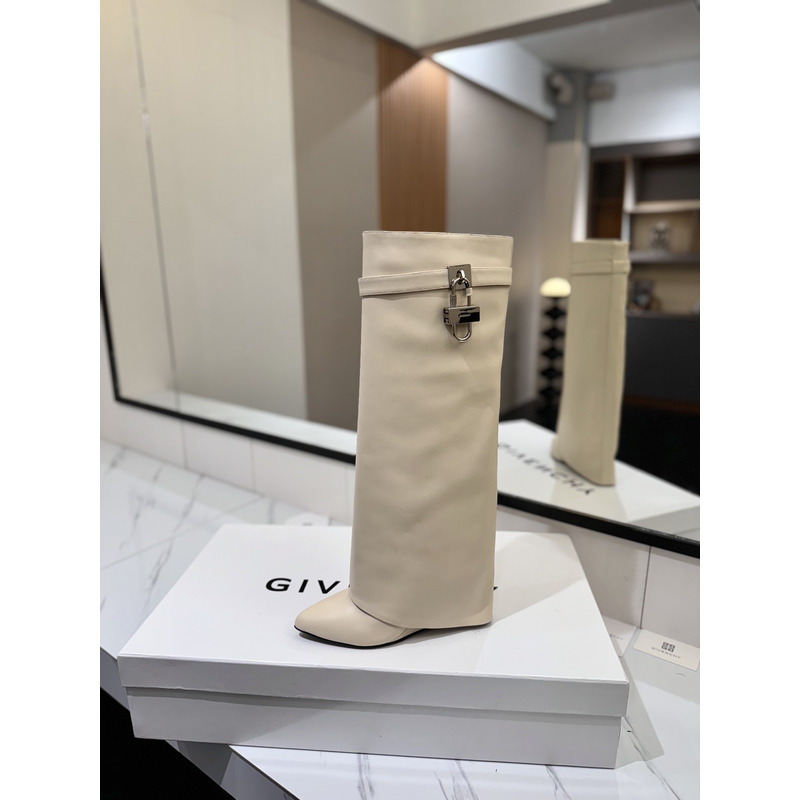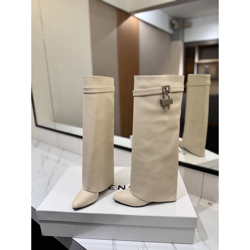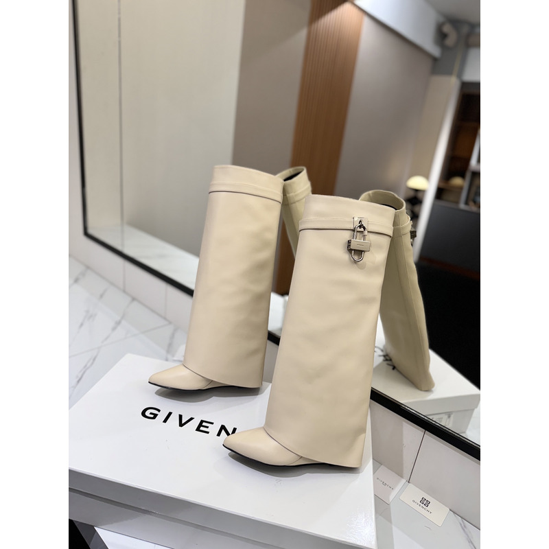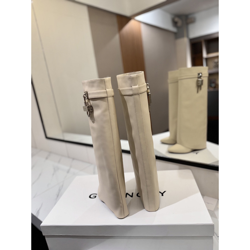 Givenchy Cream Leather Shark Lock Knee-Length Boots
