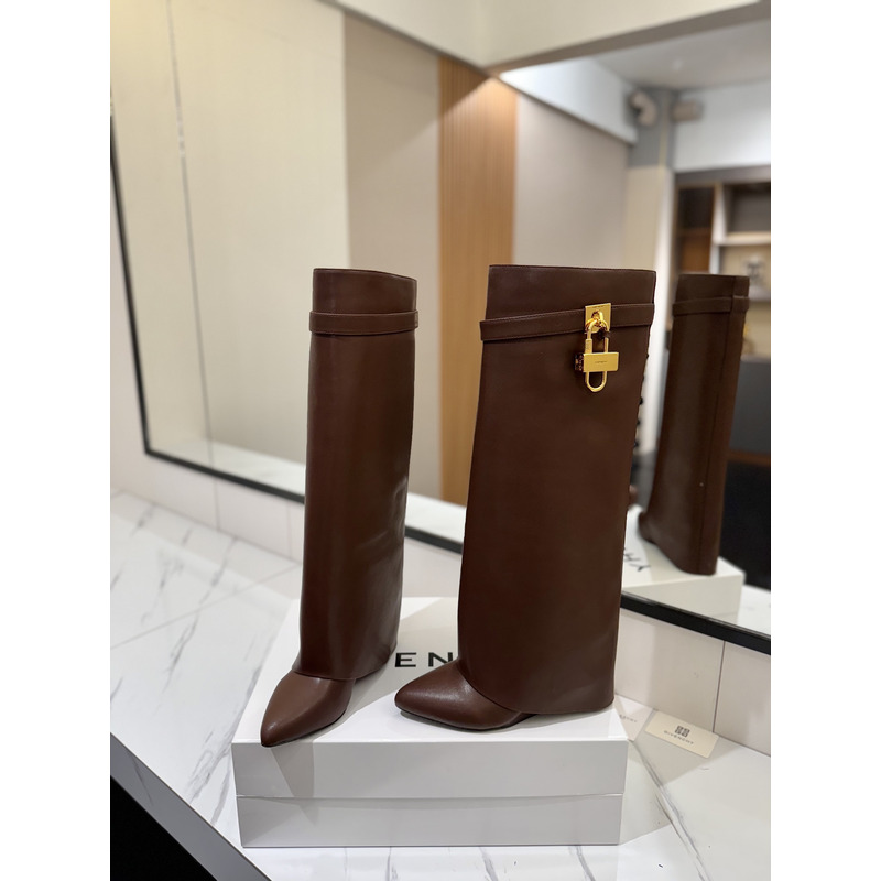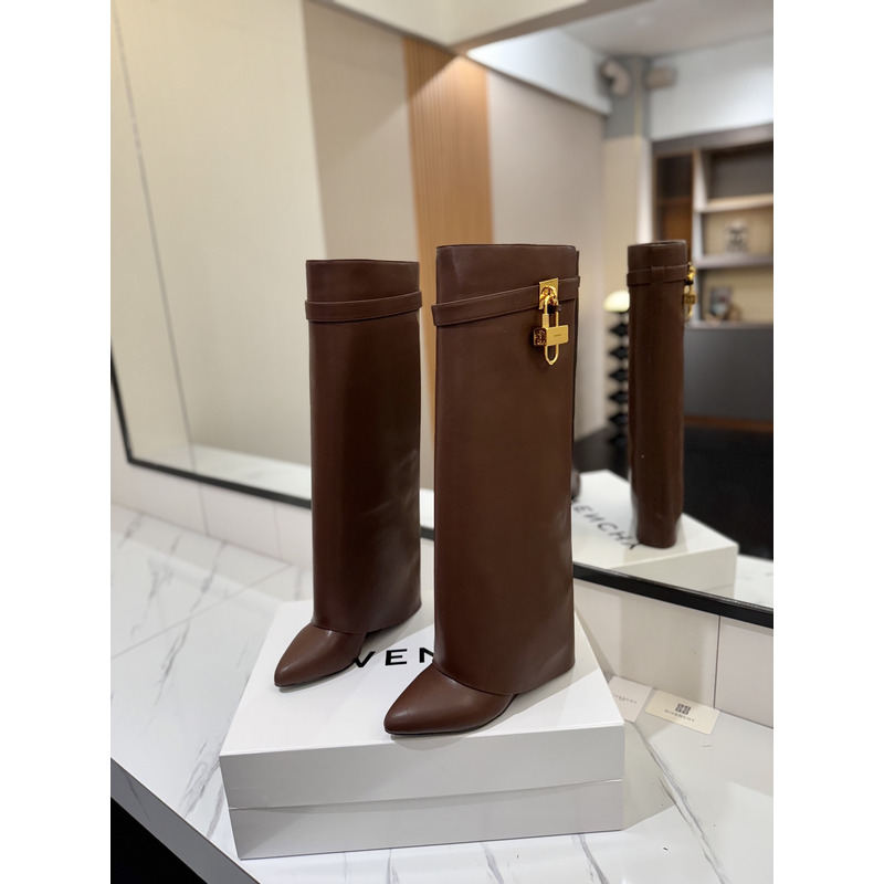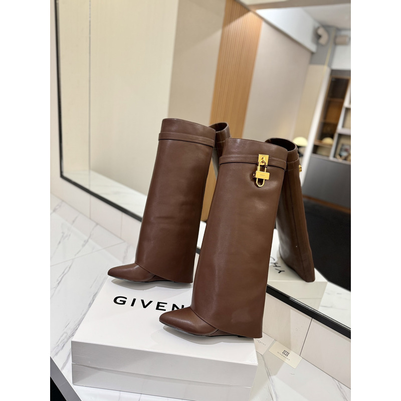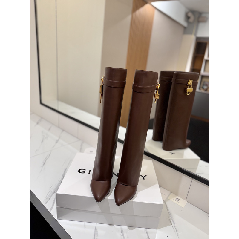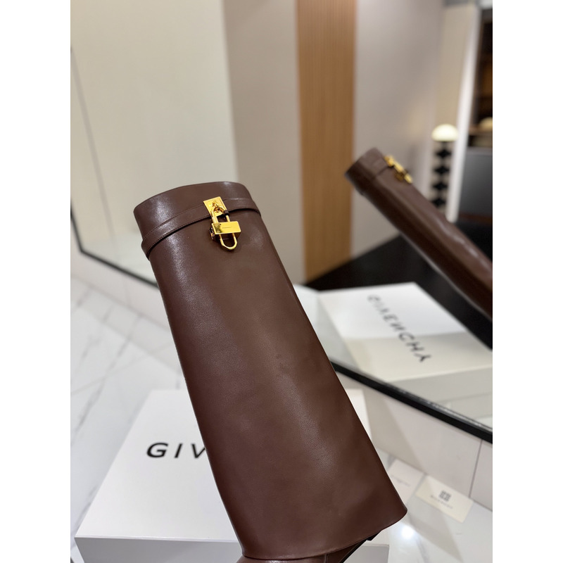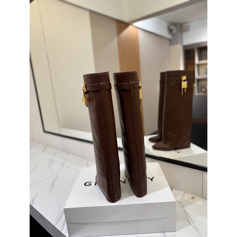 Givenchy Dark Brown Leather Shark Lock Knee Length Boots