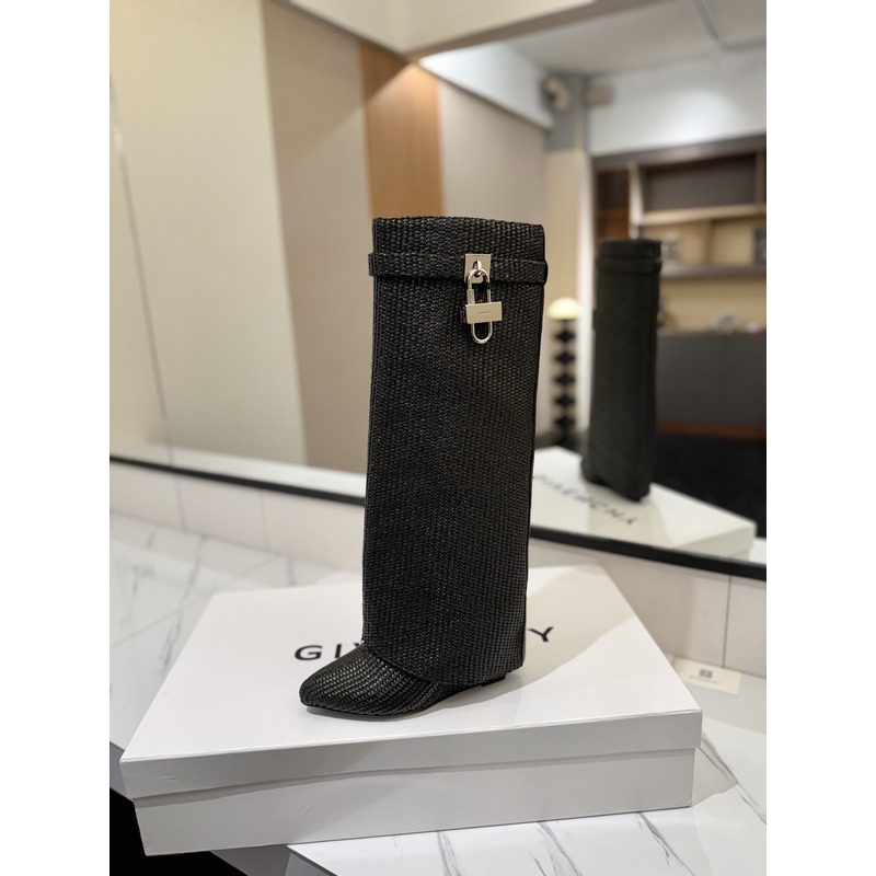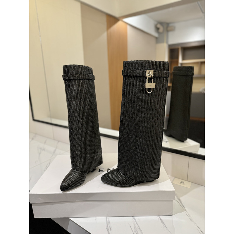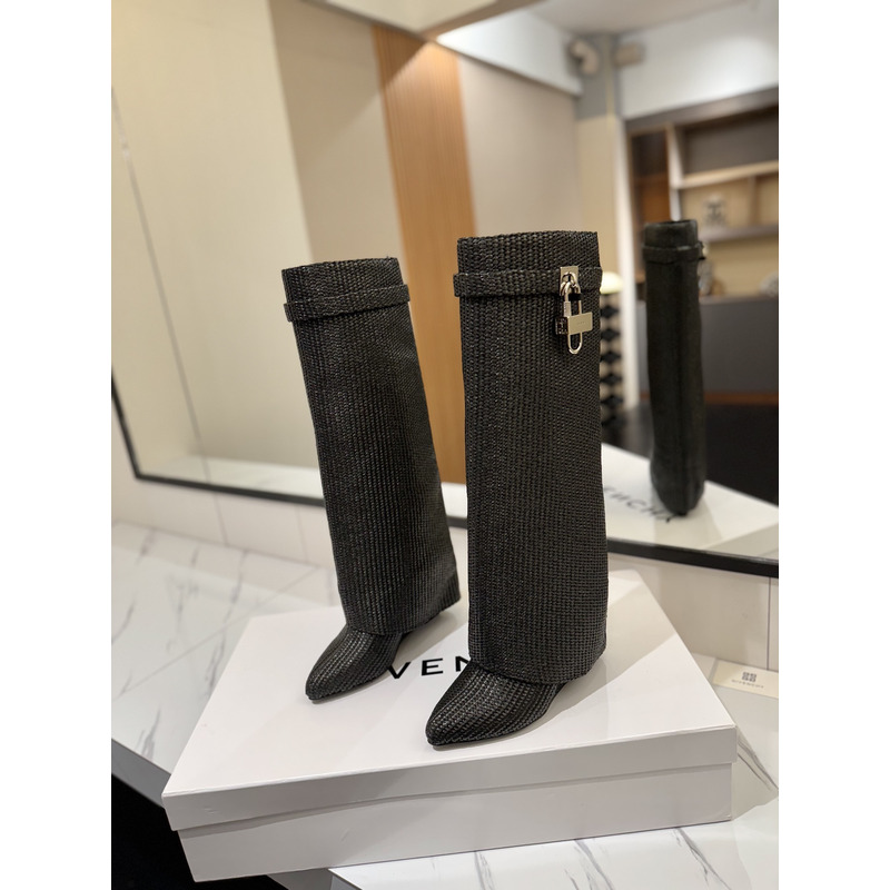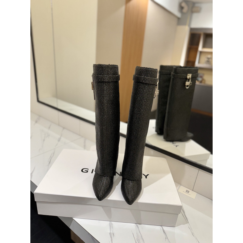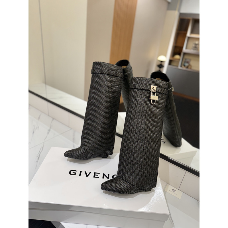 Givenchy Dark Grey Knit Shark Lock Knee-Length Boots