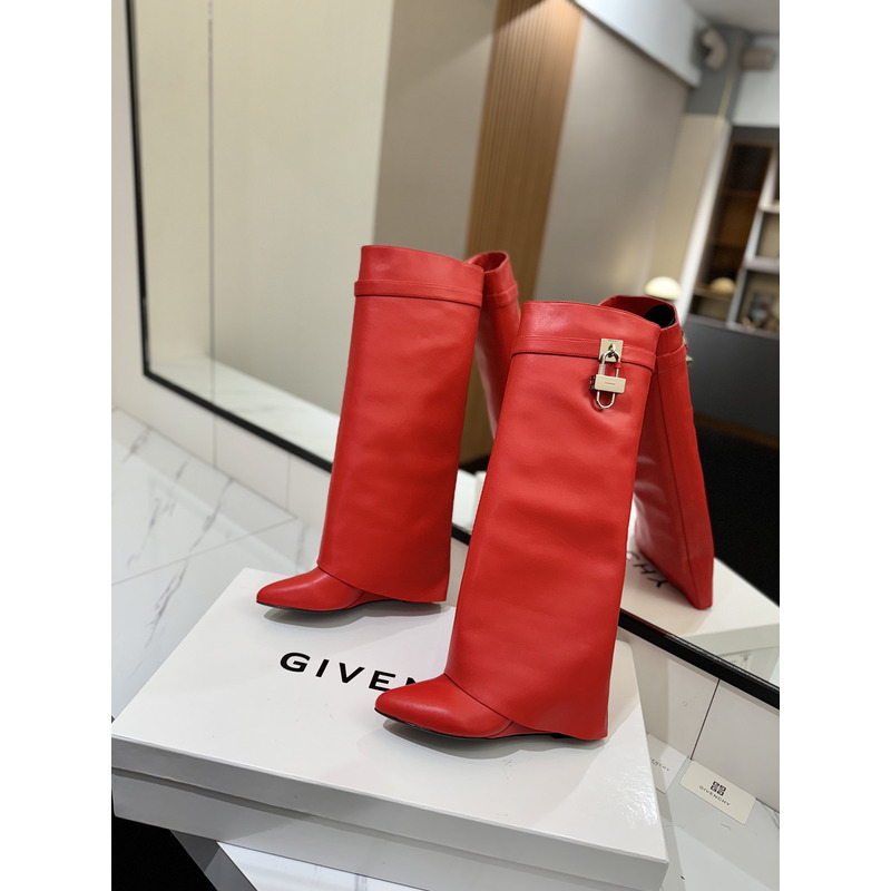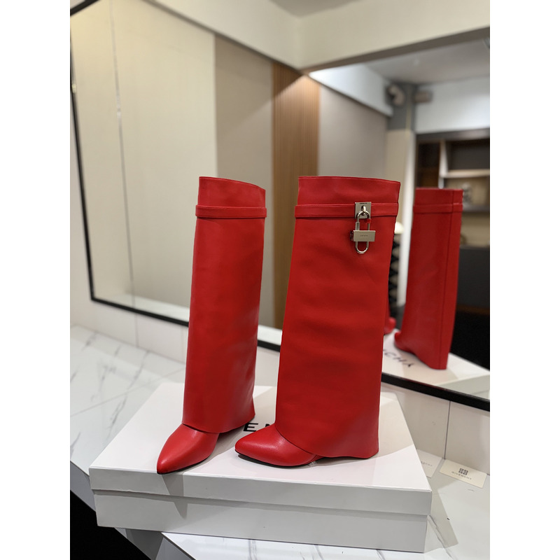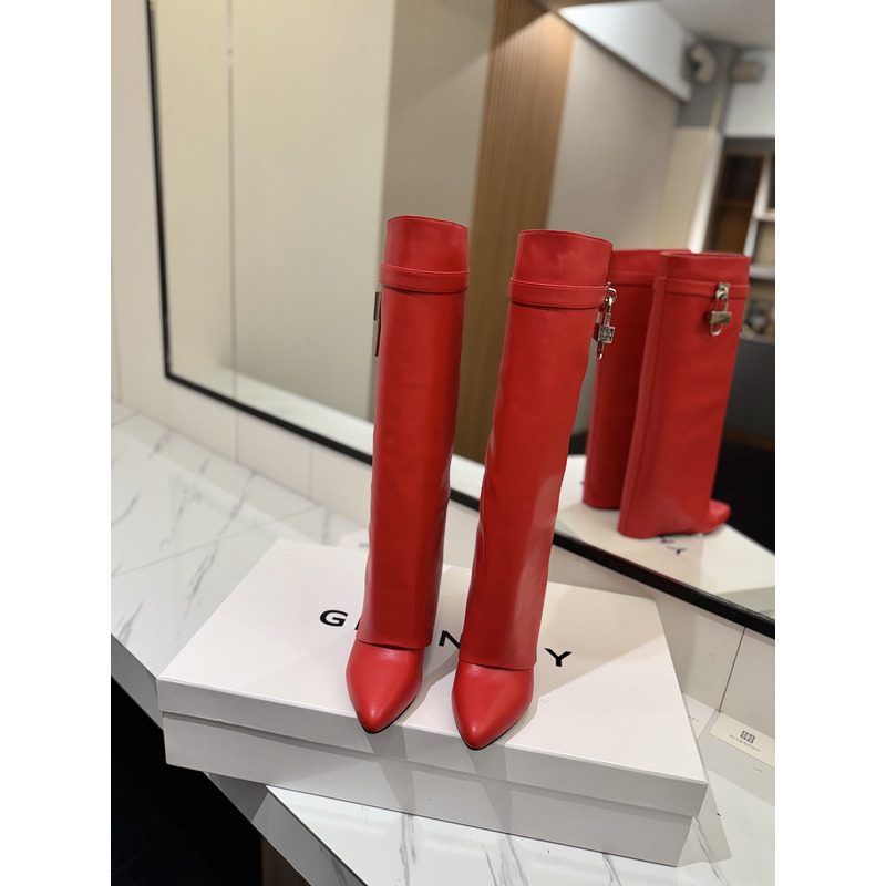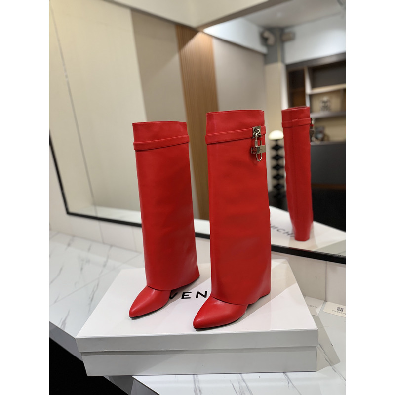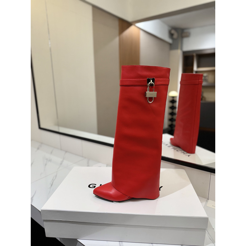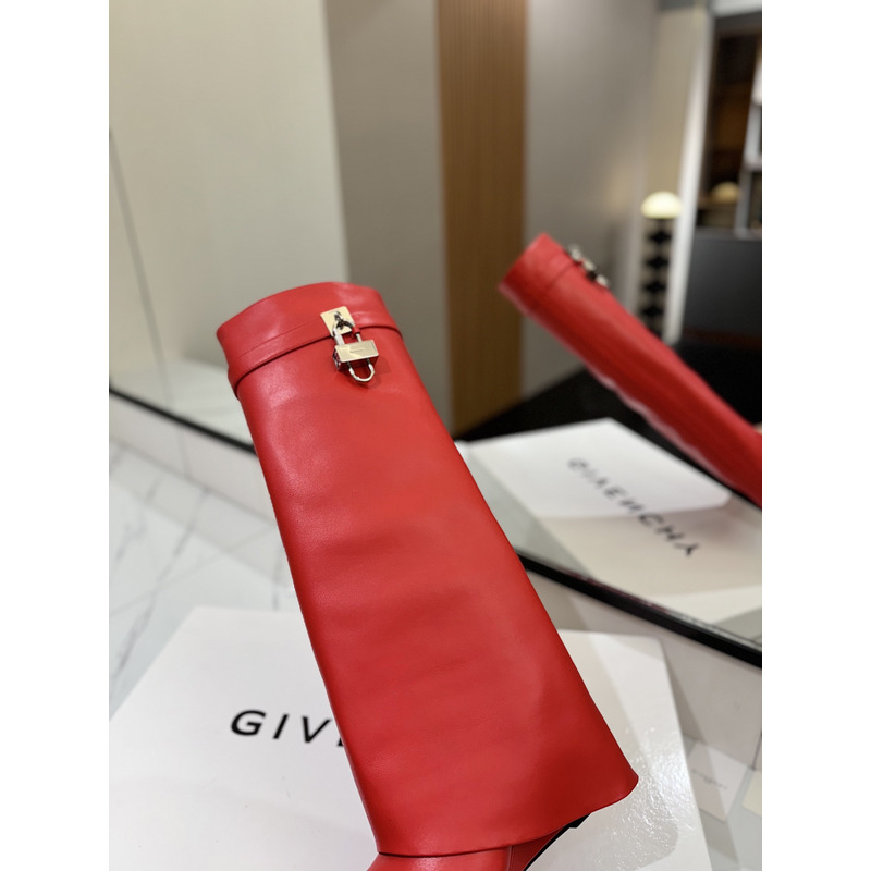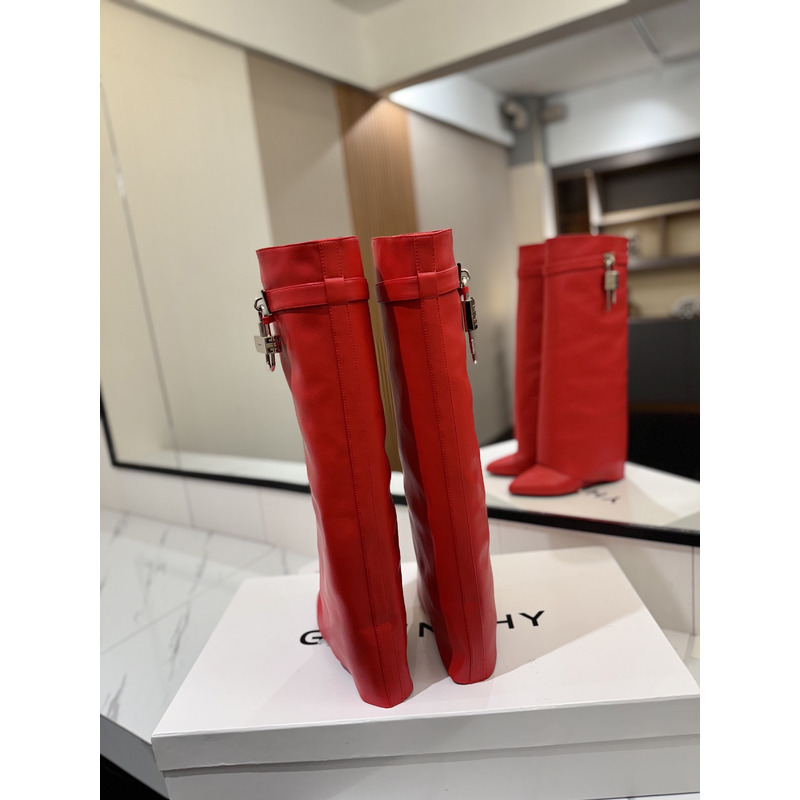 Givenchy Red Leather Shark Lock Knee-Length Boots