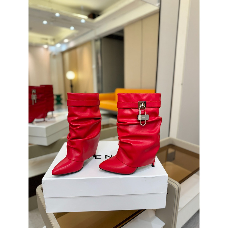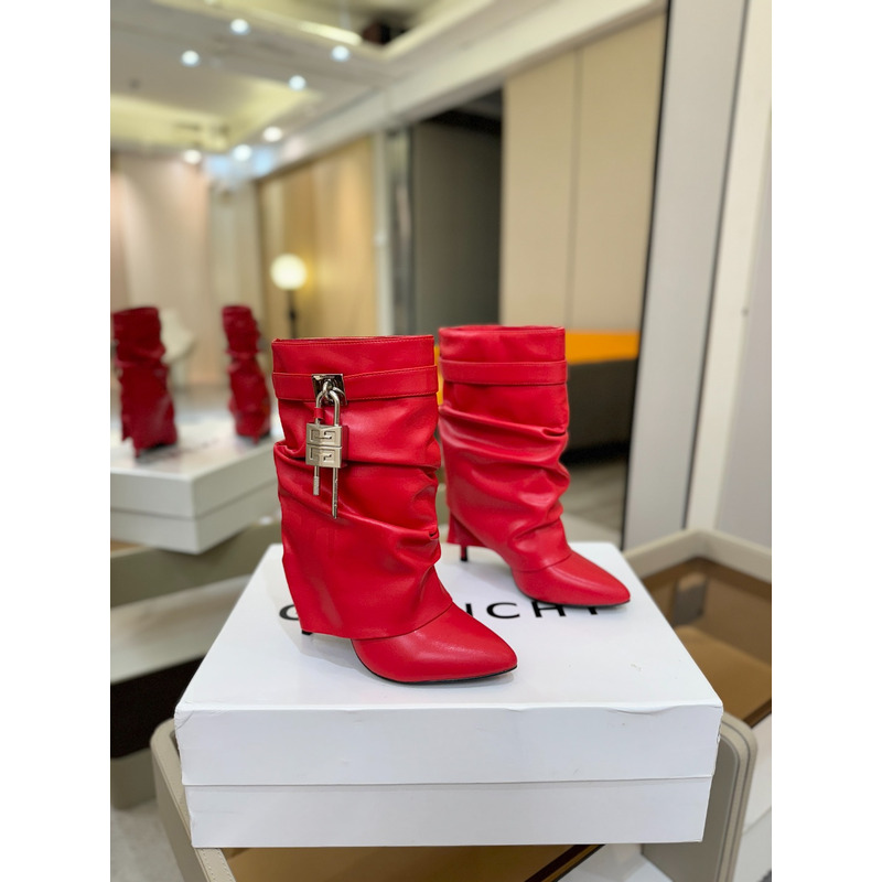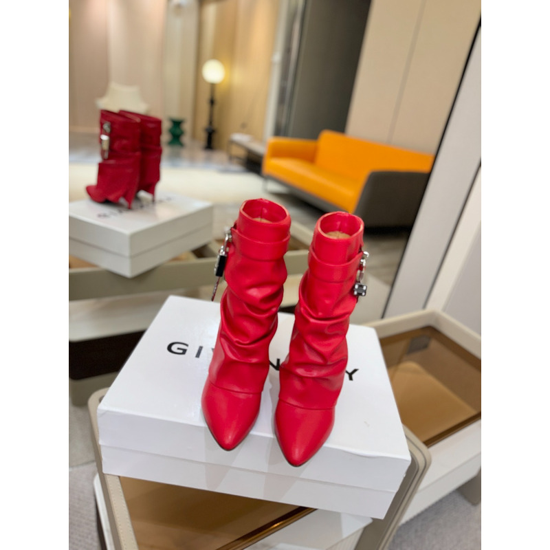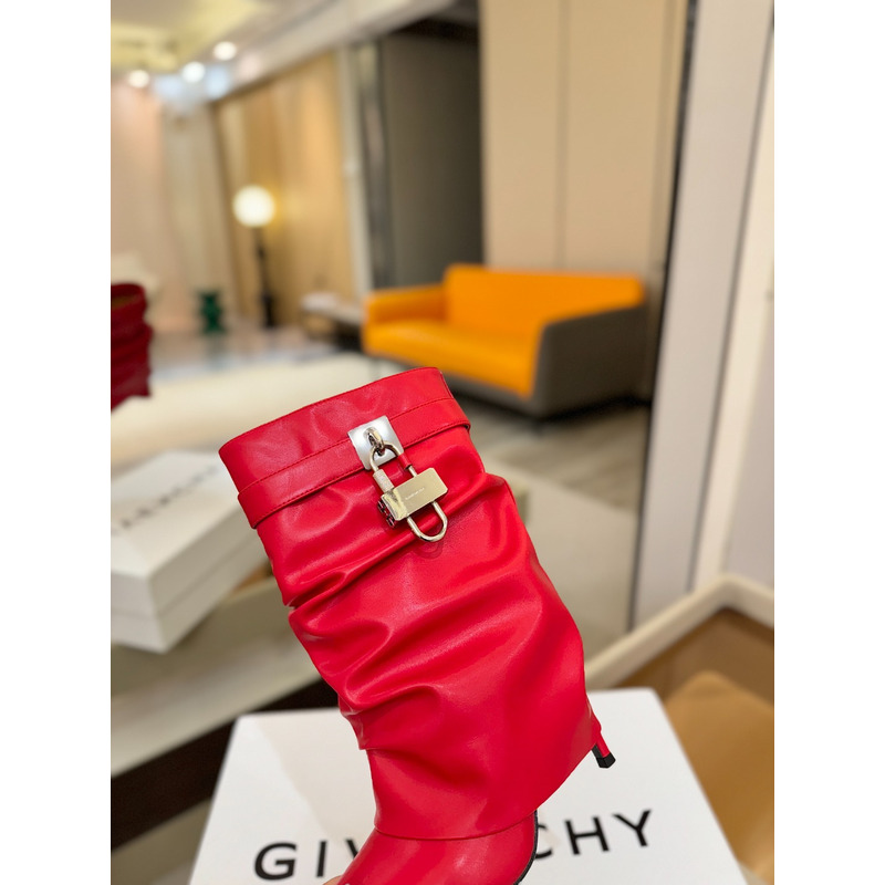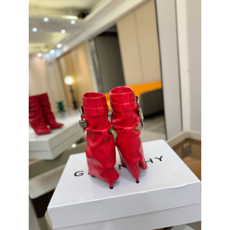 Givenchy Red Shark Lock Stiletto Ankle Boots In Leather