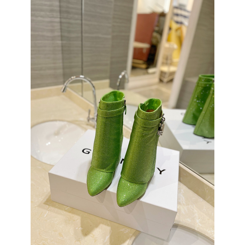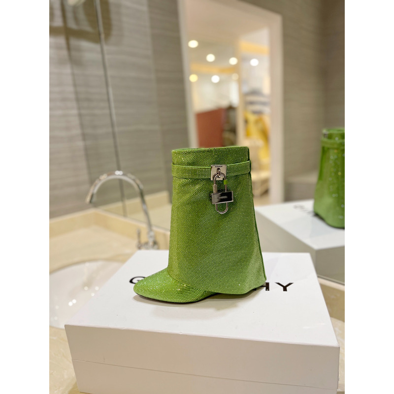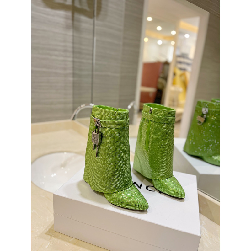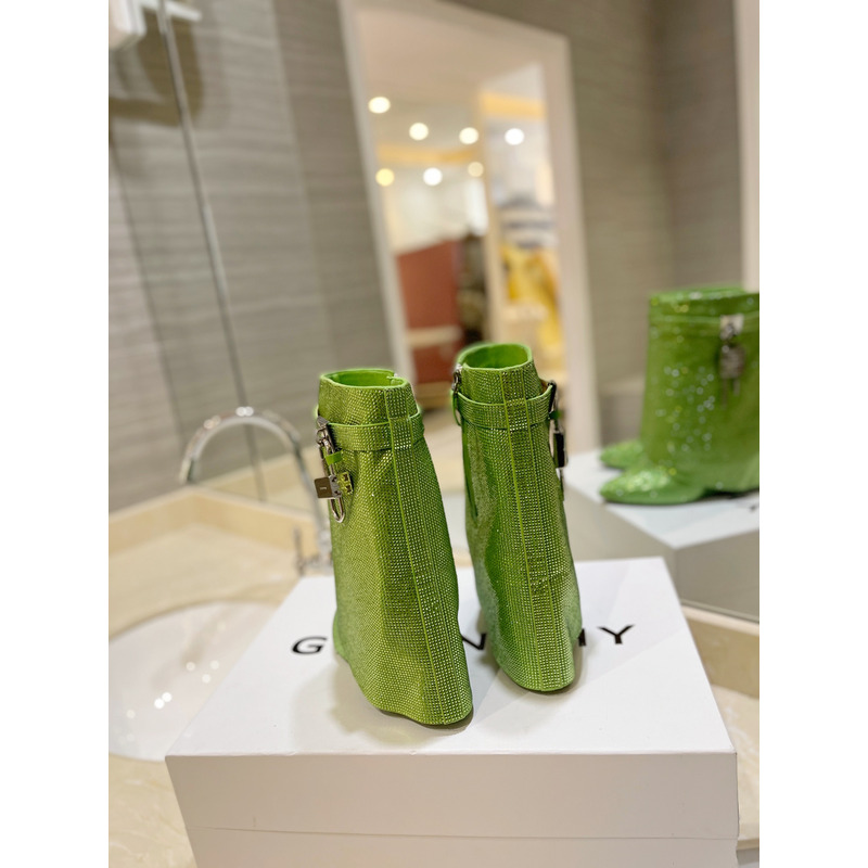 Givenchy Shark Lock Ankle Boots In Glitter Green