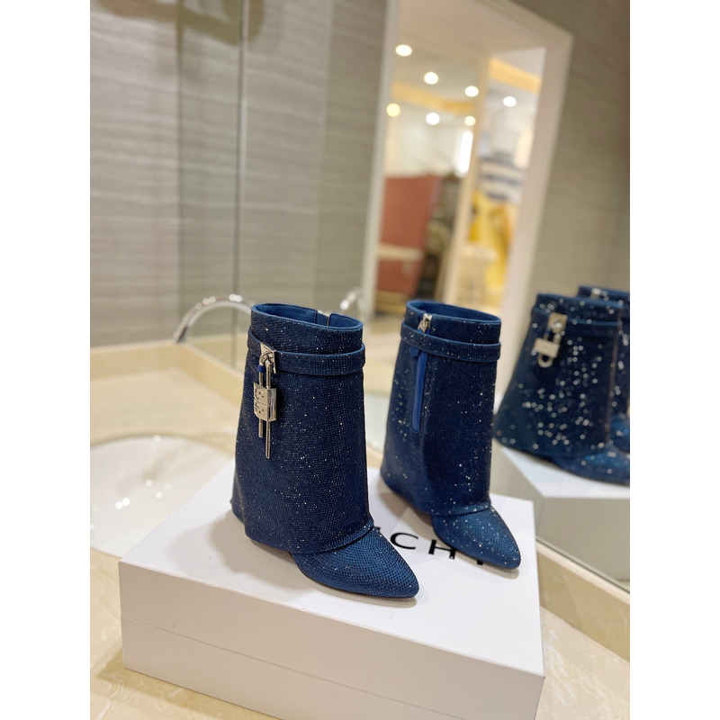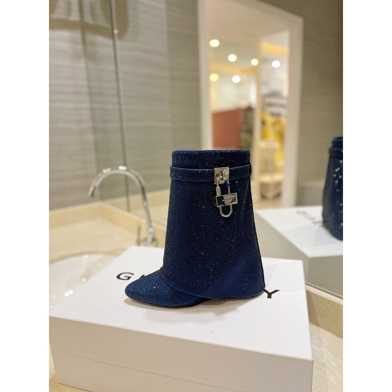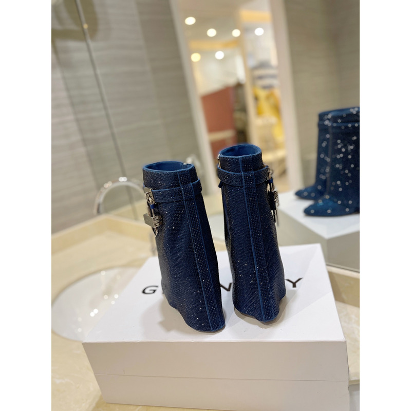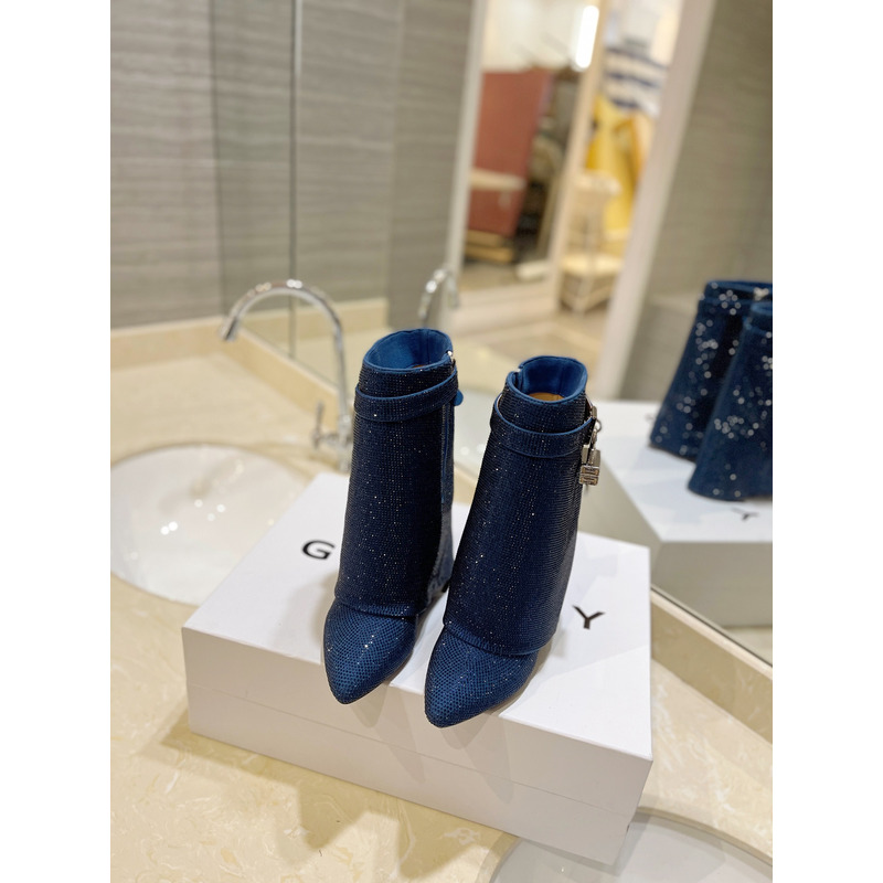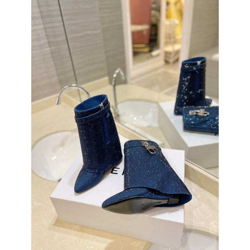 Givenchy Shark Lock Ankle Boots In Glitter Navy Blue