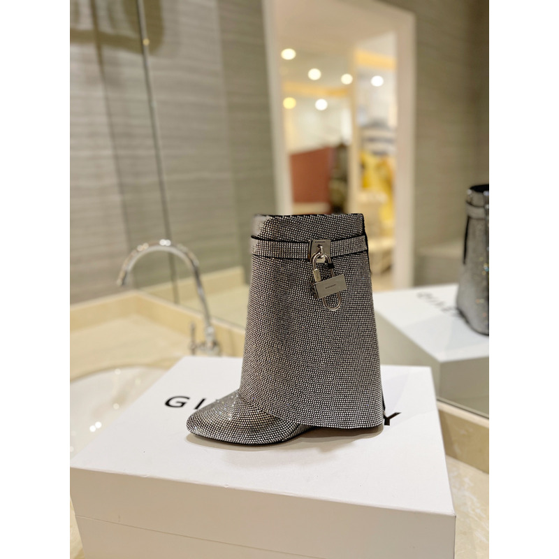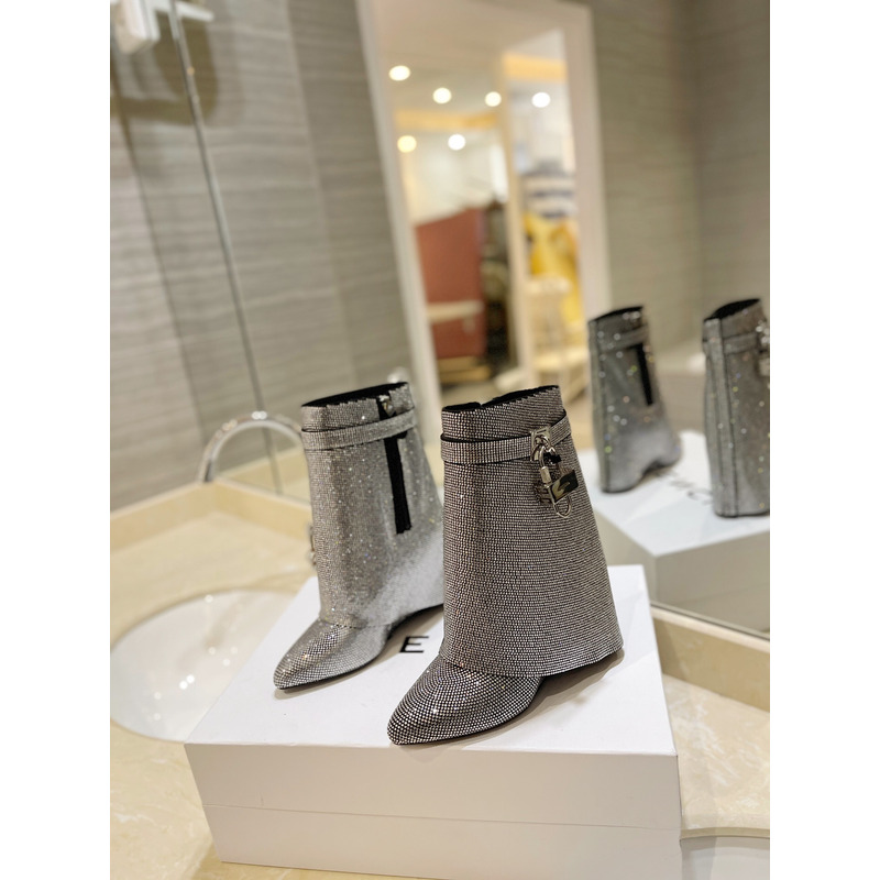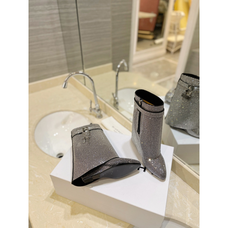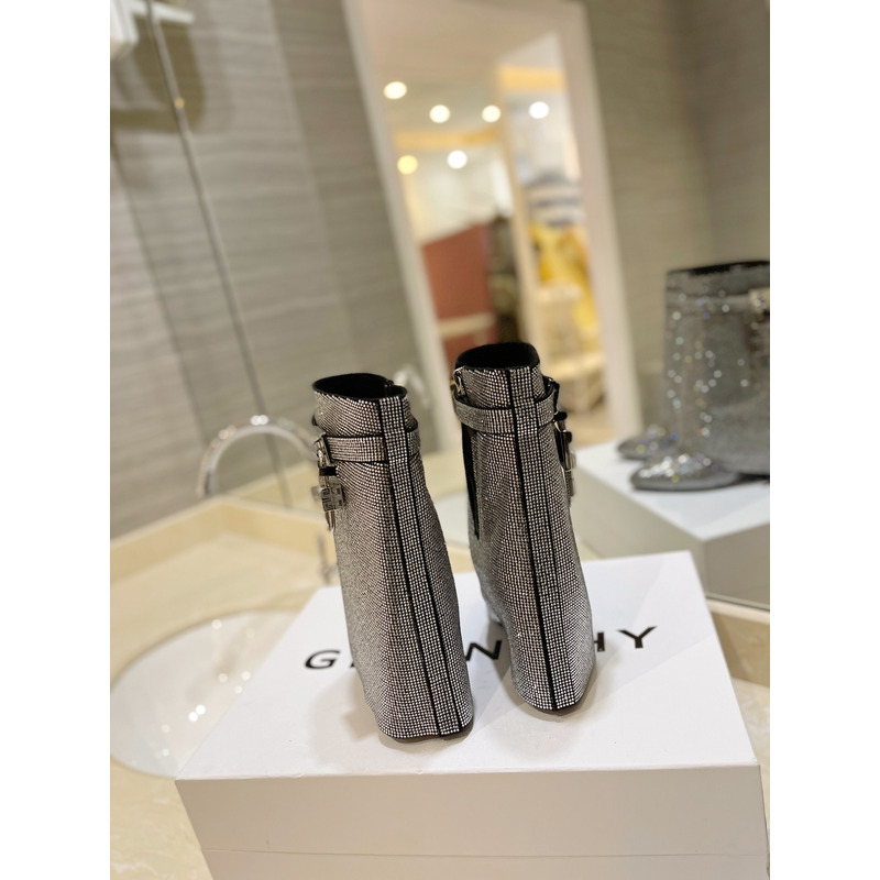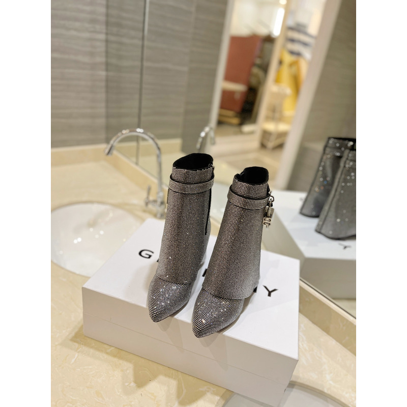 Givenchy Shark Lock Ankle Boots In Glitter Silver