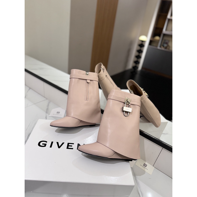 Givenchy Shark Lock Ankle Boots In Leather Pink