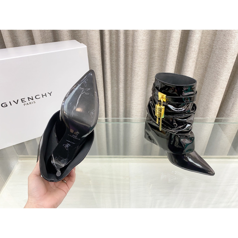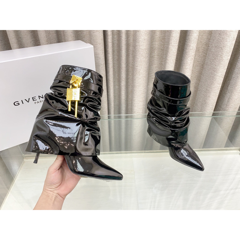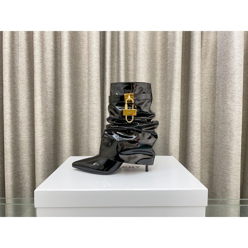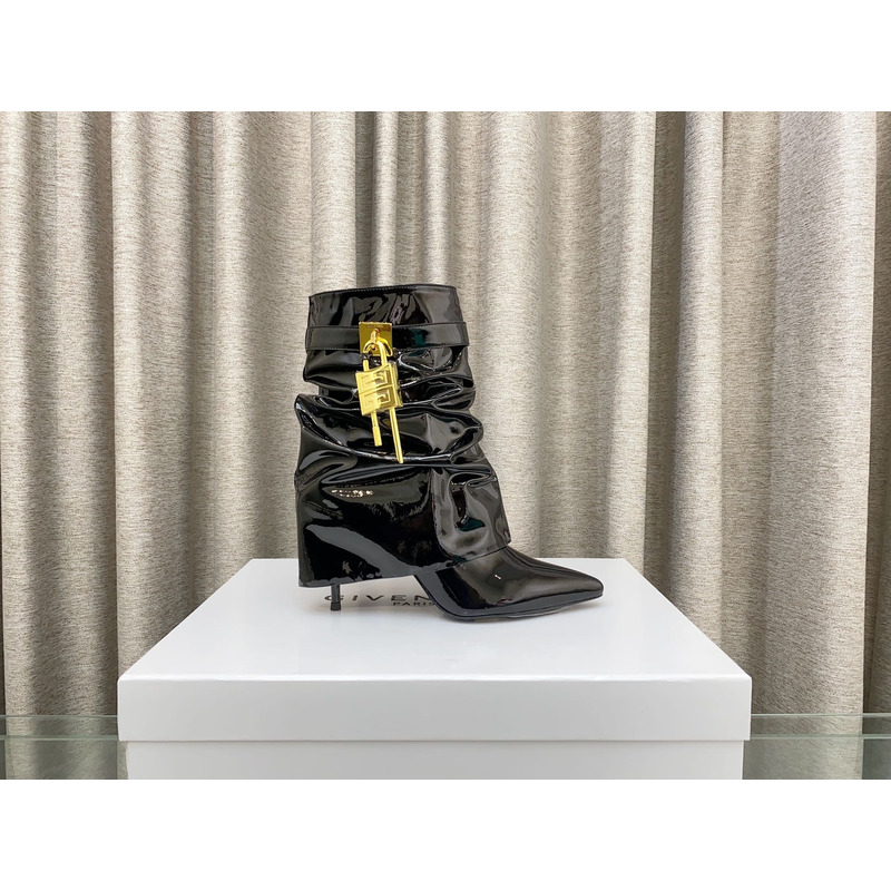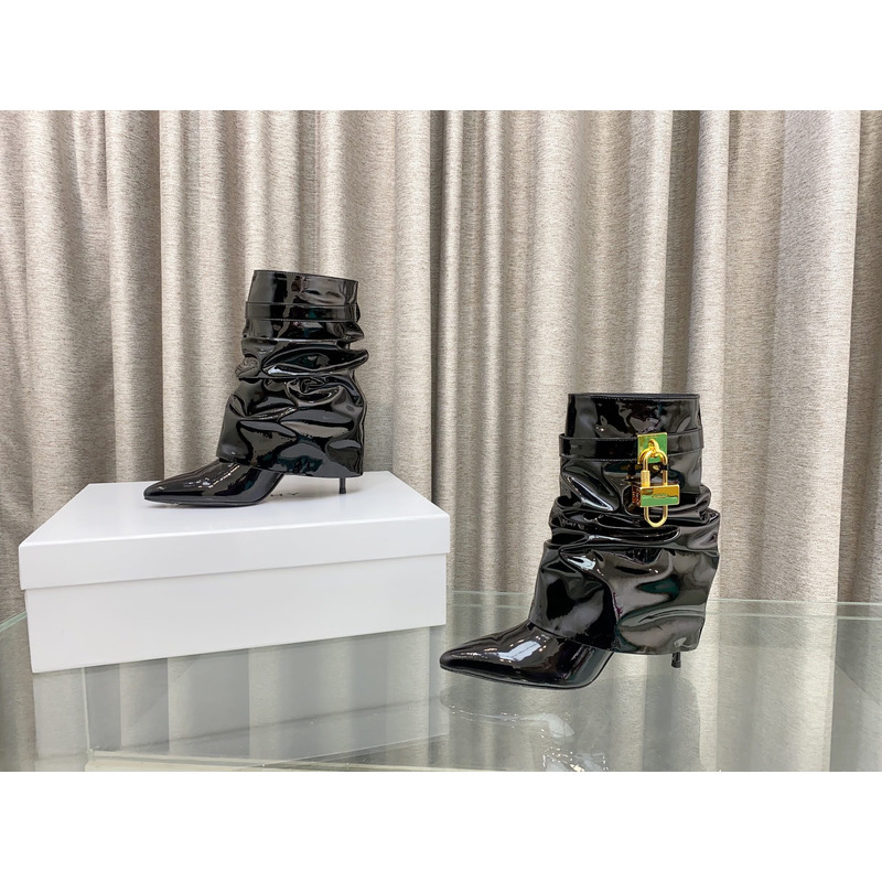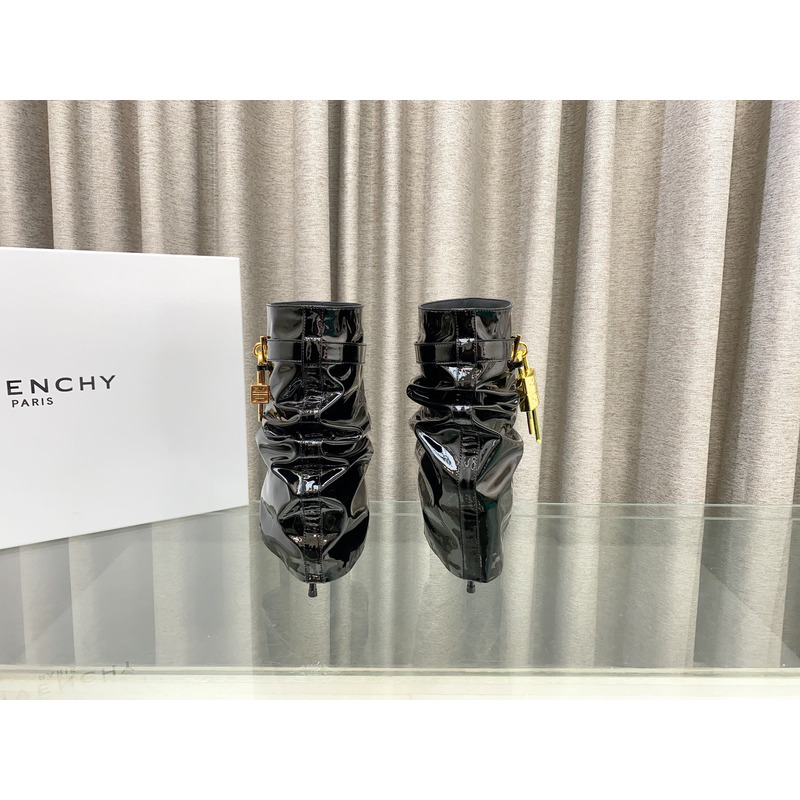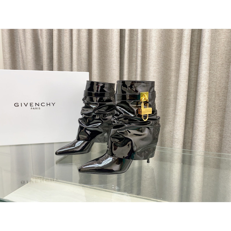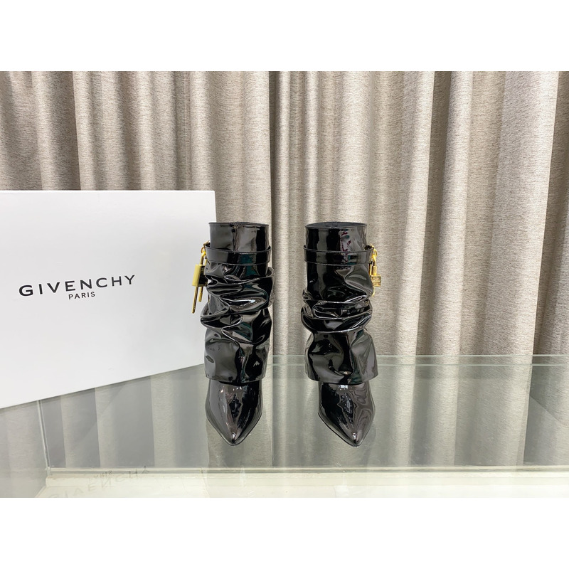 Givenchy Shark Lock Biker Ankle Boots In Patent Leather Black