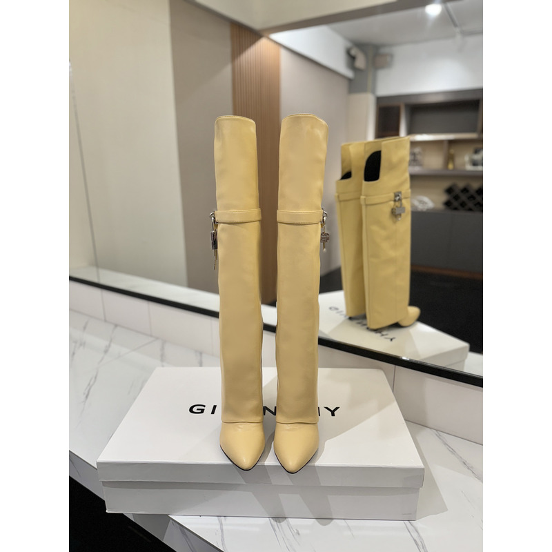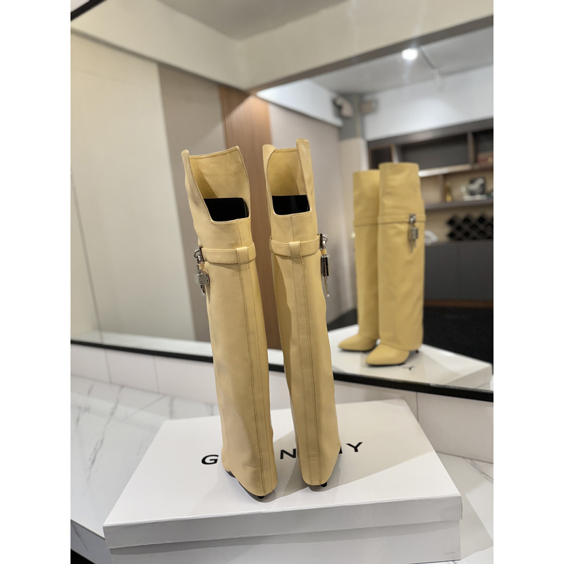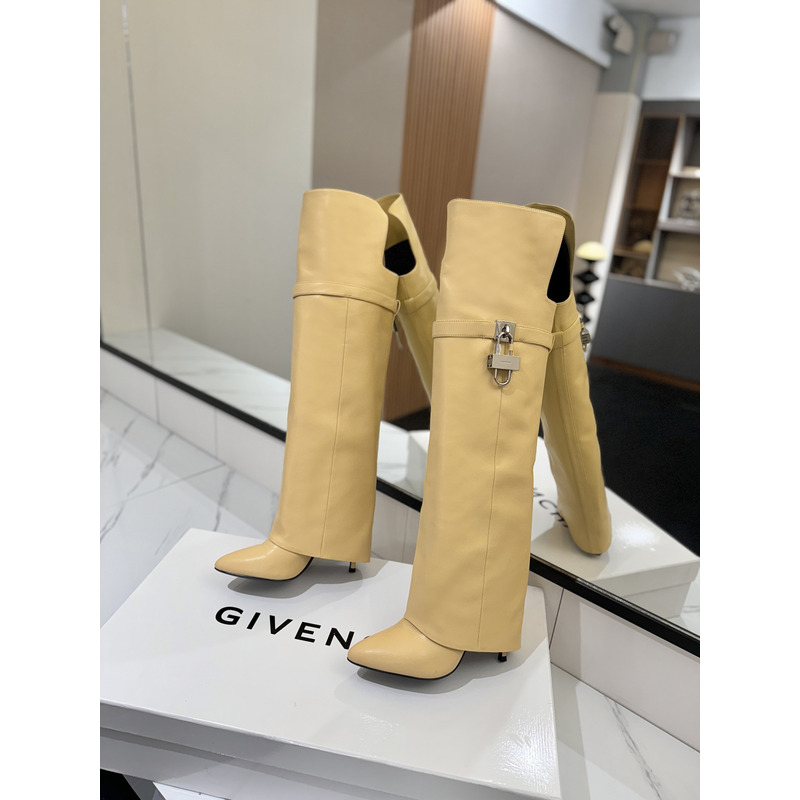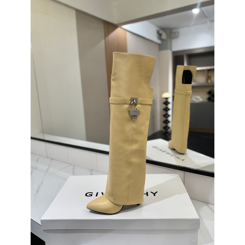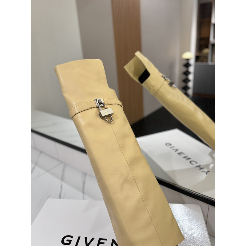 Givenchy Shark Lock Boots In Leather In Beige